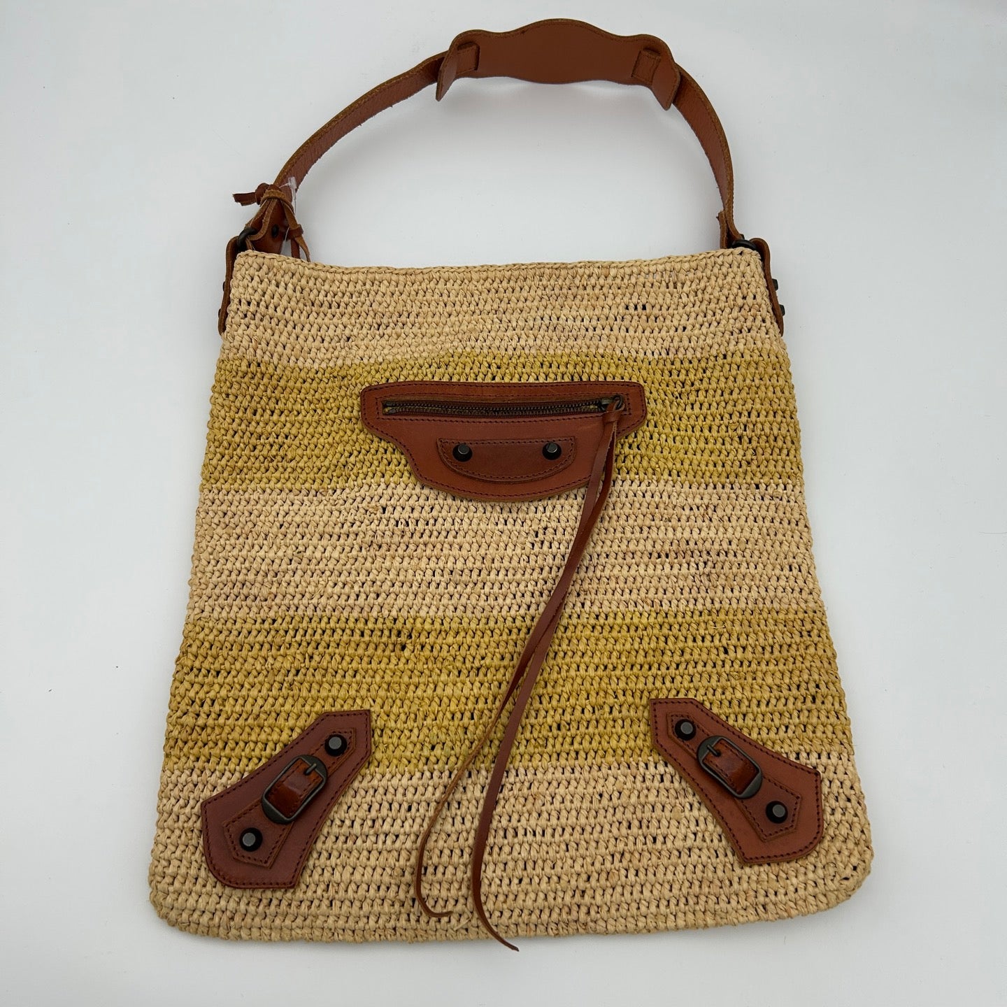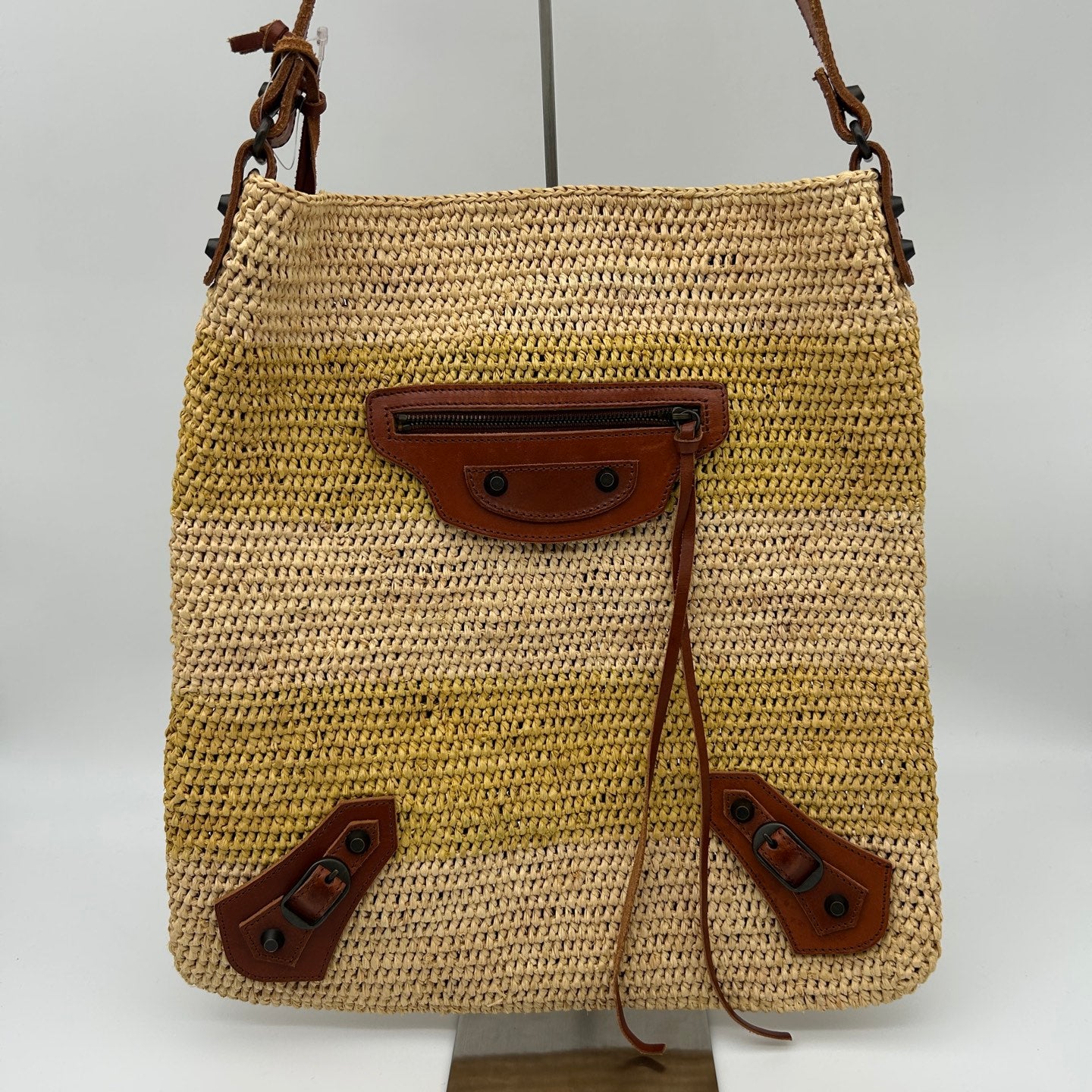 Balenciaga Motocycle Straw Leather Tote Bag [Used]