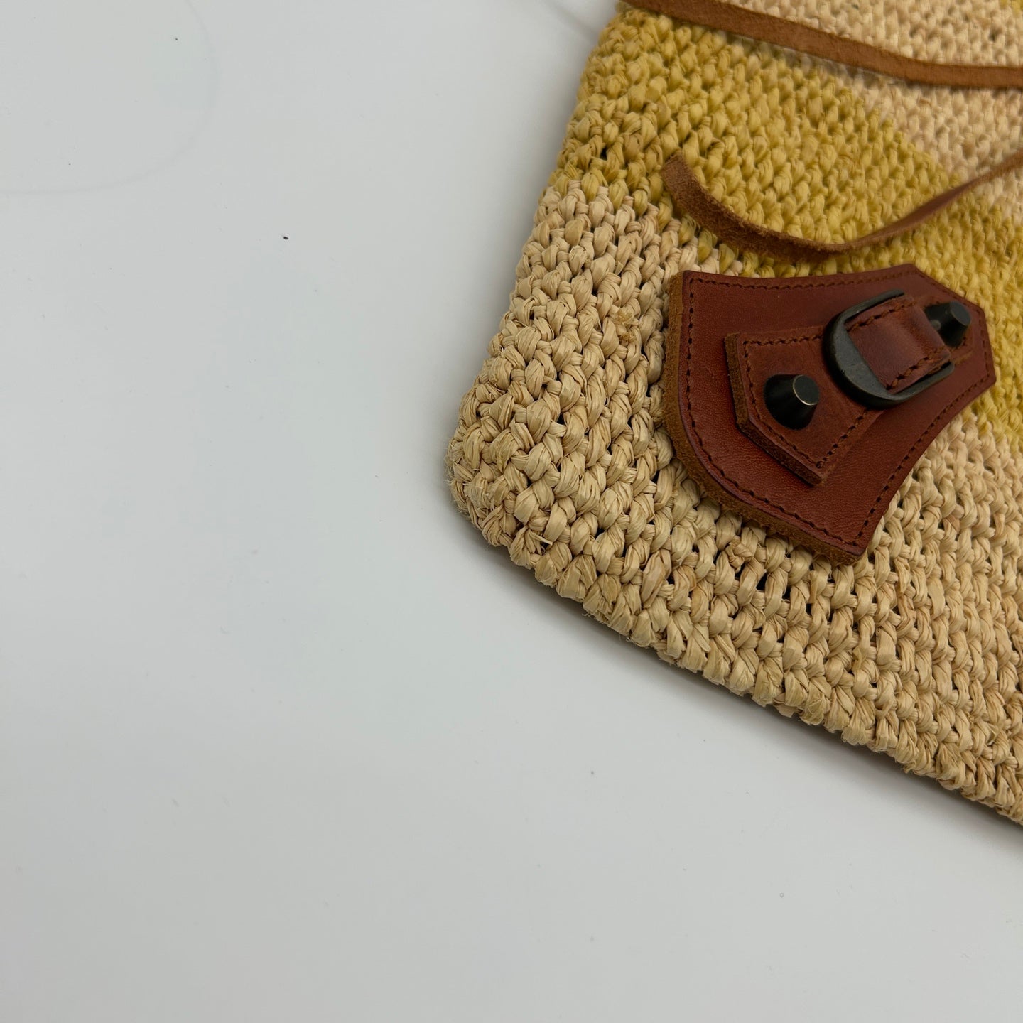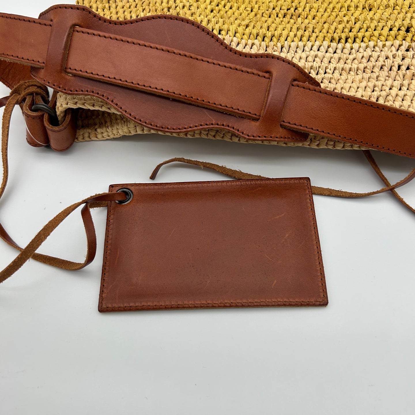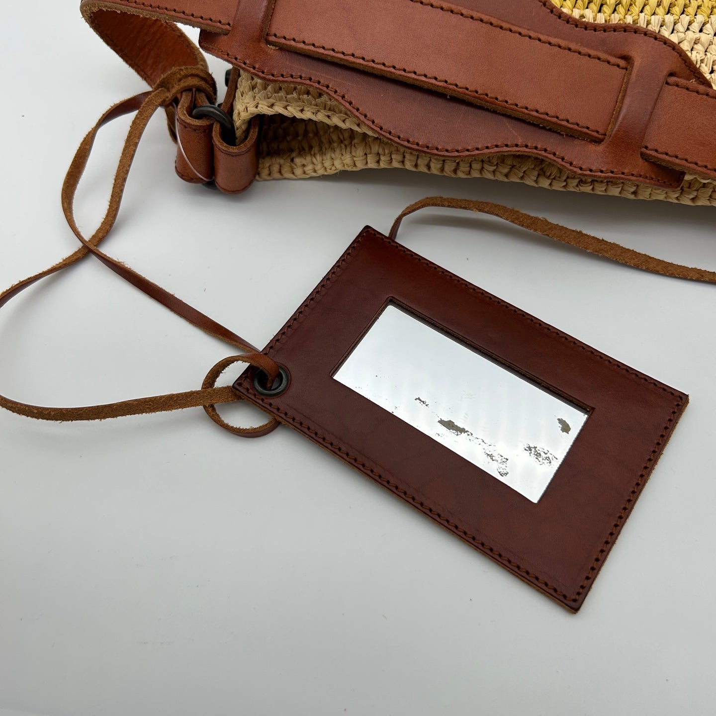 This bag is in very good pre-owned condition overall. Due to use, there are visible imperfections on the mirror, which are consistent with normal handling. Aside from this, the bag itself remains in great condition, with the straw and leather well preserved. The structure is intact, and the bag maintains a clean and presentable appearance.