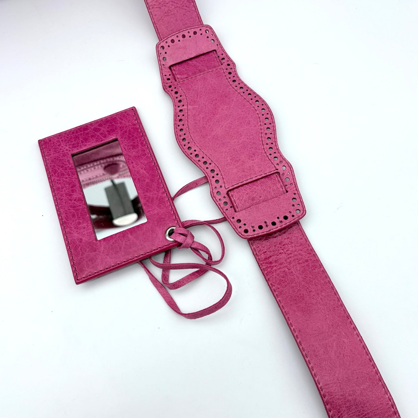 This Balenciaga City motorcycle bag features a distinctive pink lace exterior layered over leather, creating a bold yet feminine interpretation of the brand’s iconic City silhouette. The contrast between the edgy motorcycle design and delicate lace detailing gives the bag a unique visual impact while retaining its classic structure.