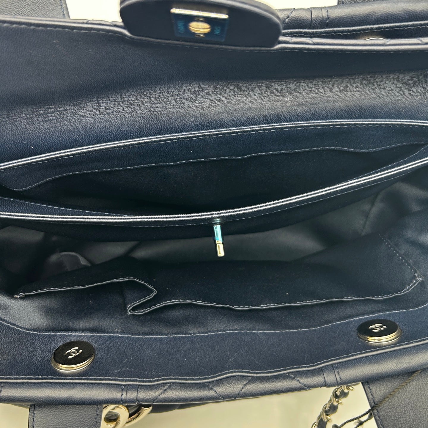 Chanel 2017 Cruise Cuba Collection Navy Blue Quilted Chain Travel Tote [Used]