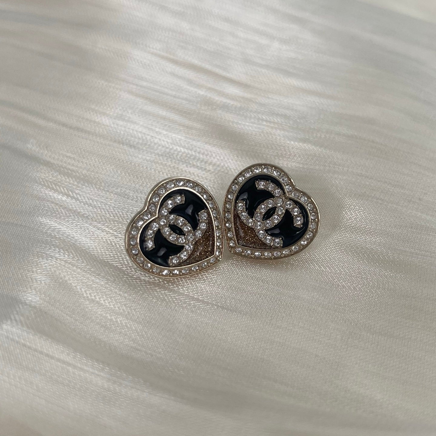 Chanel 23B Black & Gold Crystal Heart Stud Earrings [Used]