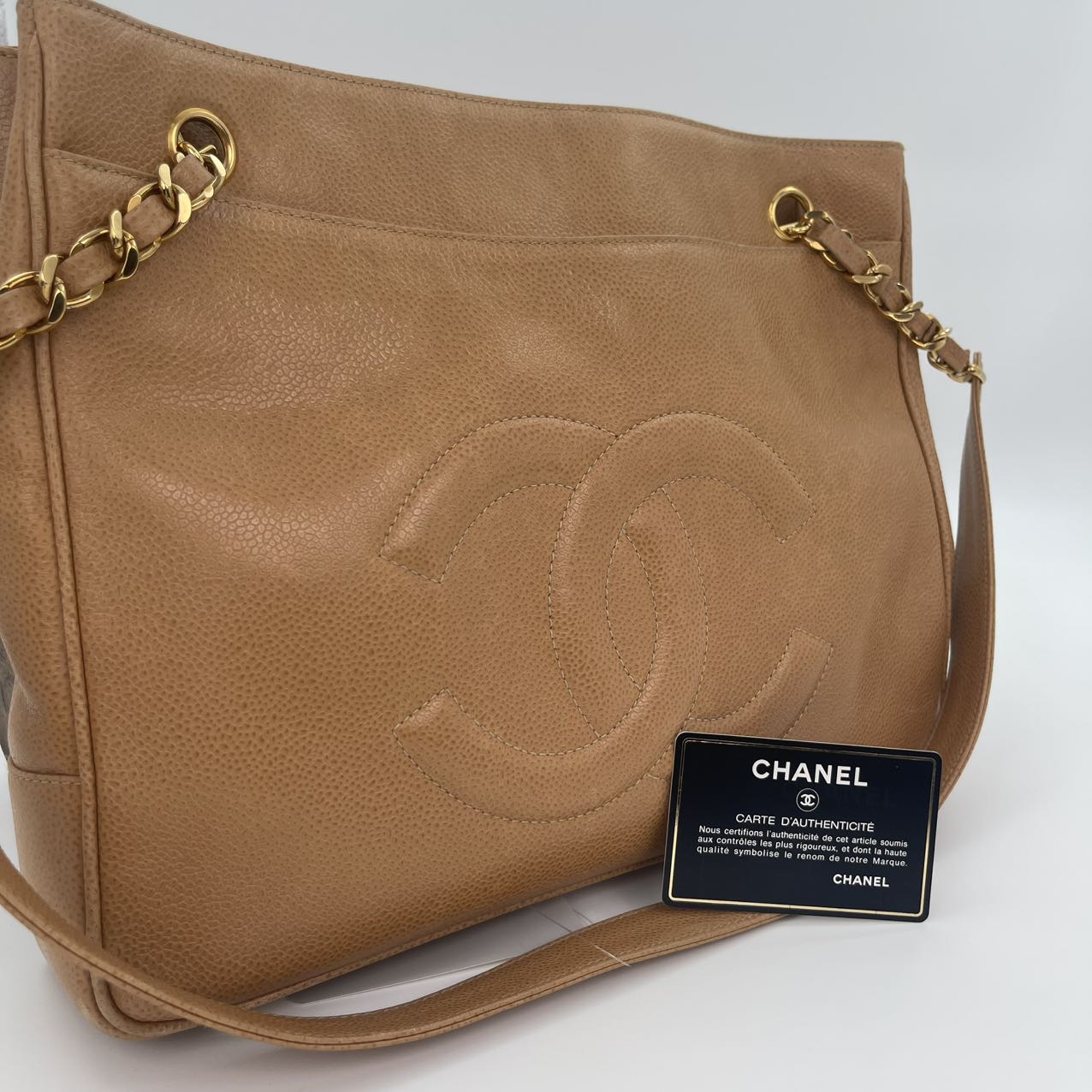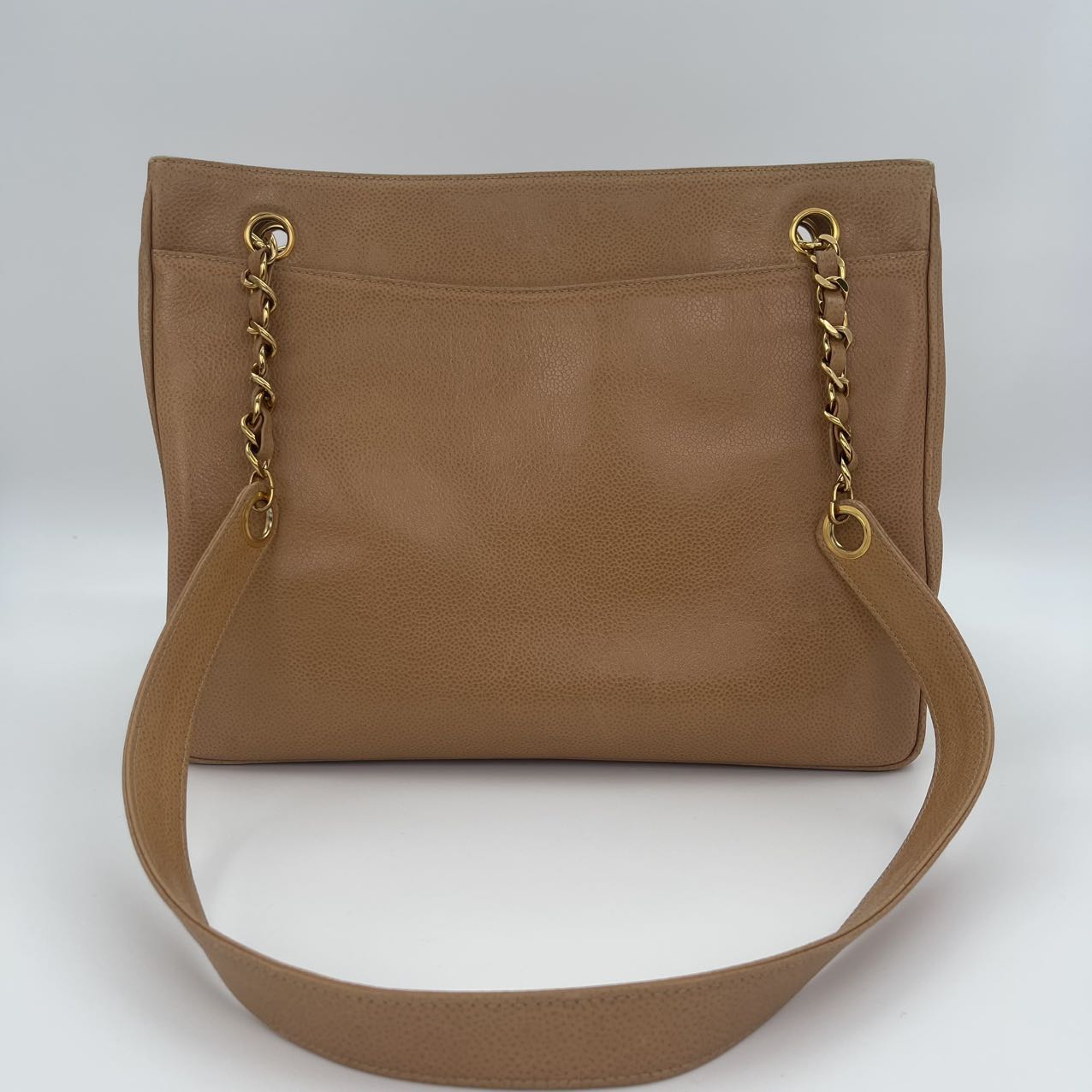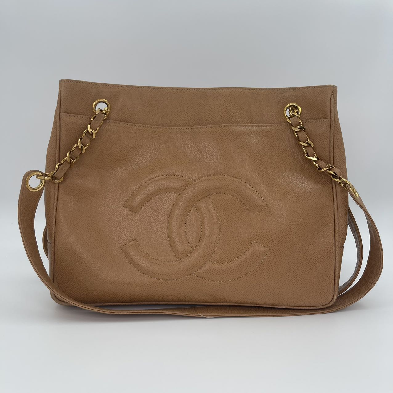 A classic and practical Chanel tote bag in beige caviar leather, combining refined aesthetics with day-to-day functionality.