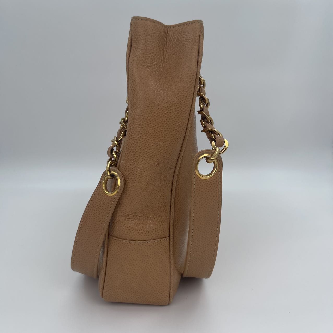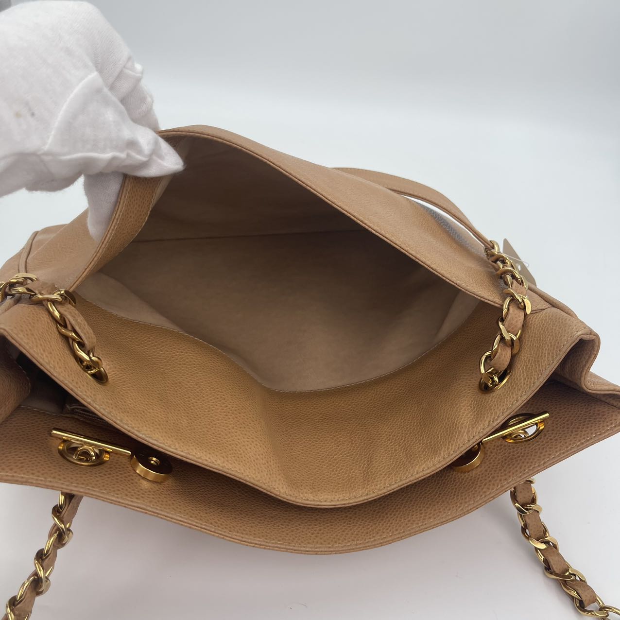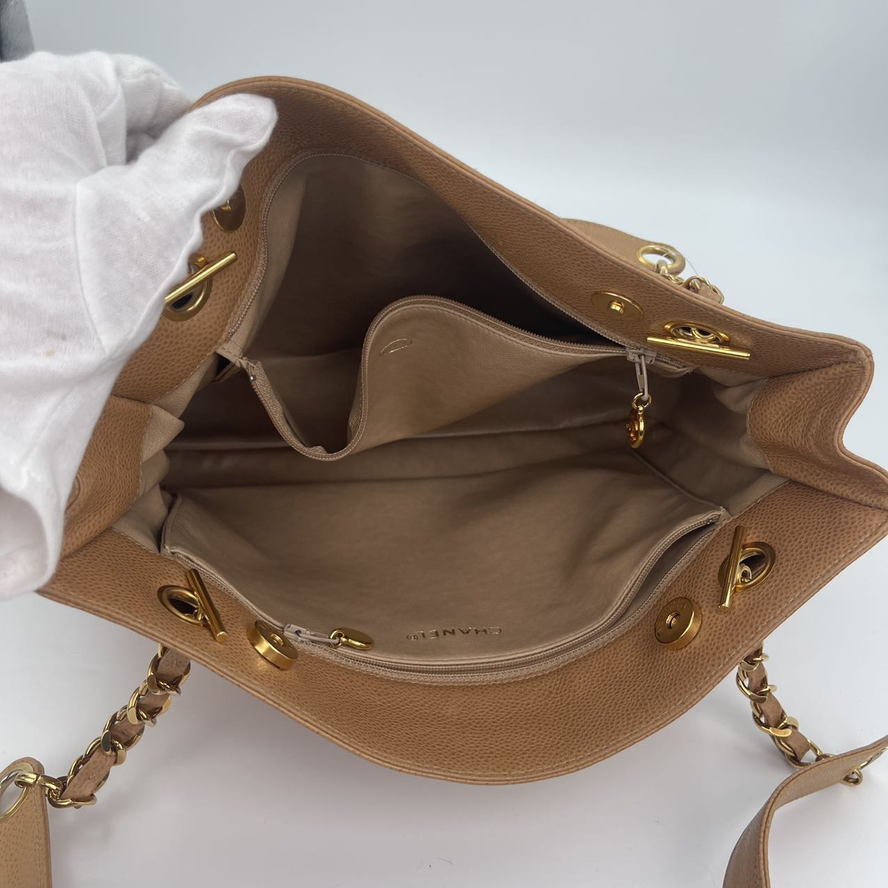 A classic and practical Chanel tote bag in beige caviar leather, combining refined aesthetics with day-to-day functionality.