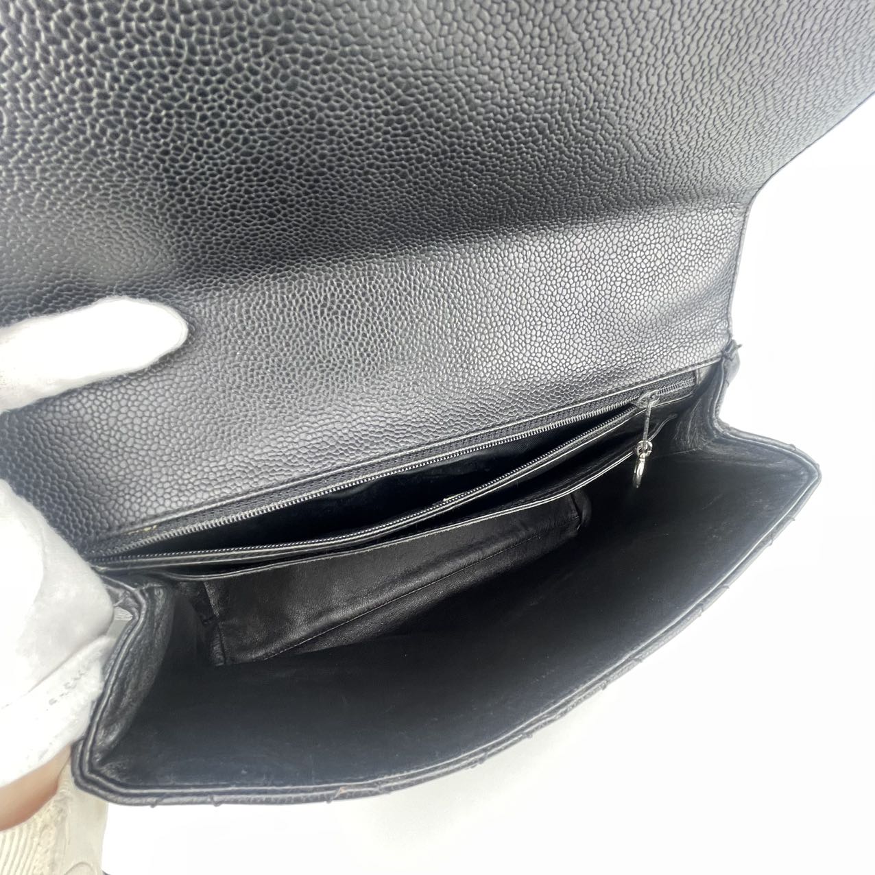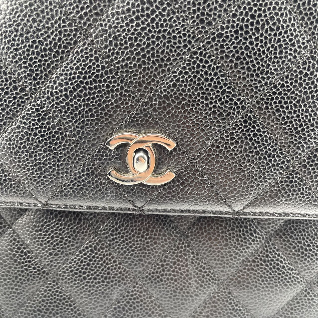 Condition: Excellent condition with minimal signs of wear. The grained calfskin leather (litchi leather) is supple and durable, showing no visible scratches or marks. The corners are in great condition with no noticeable wear. The silver hardware is in pristine condition, with no tarnishing or scratches. The bag opens and closes smoothly, and the interior is clean with minimal signs of previous use.