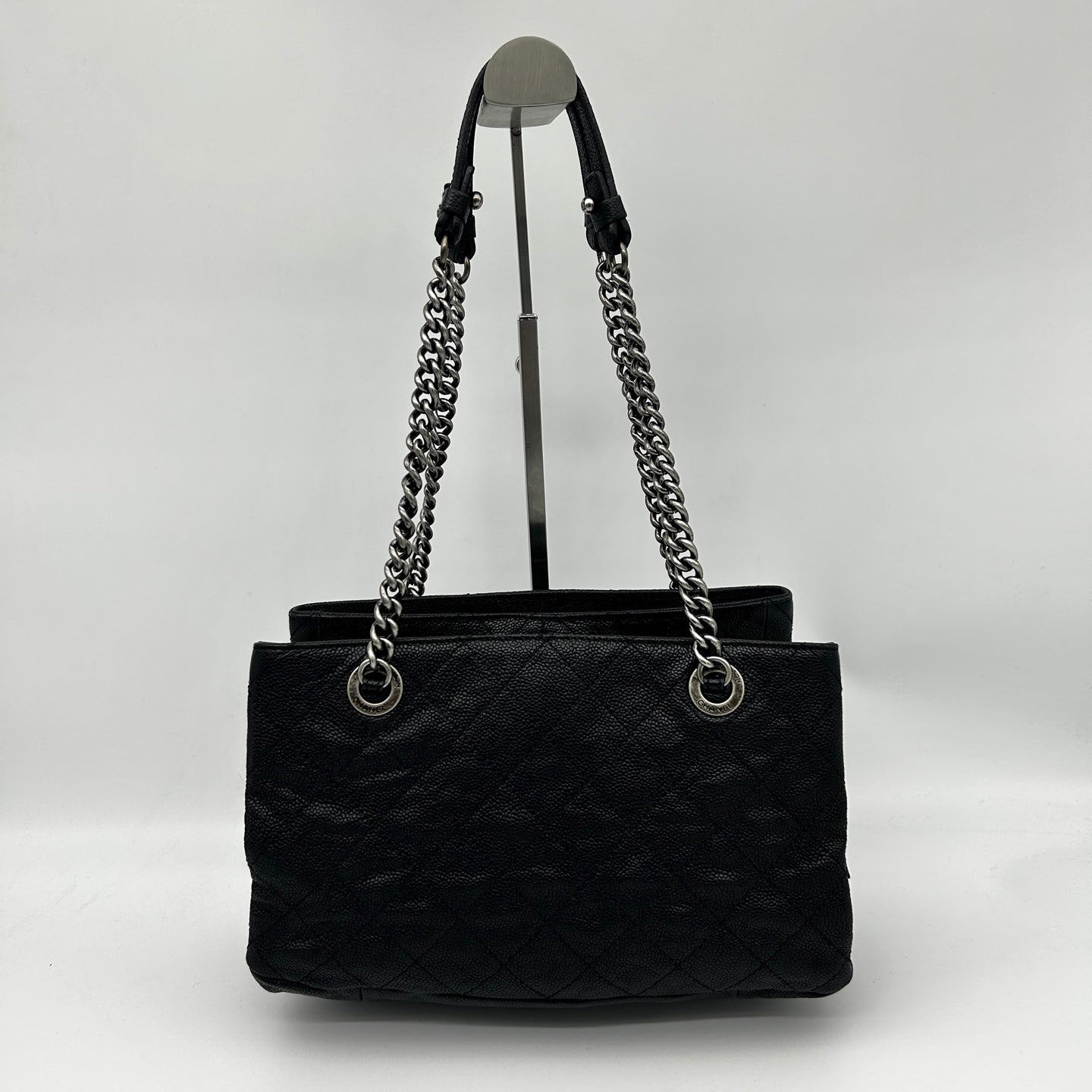 Chanel Black Calfskin Aged Silver Double Chain Shoulder Tote Bag [Used]