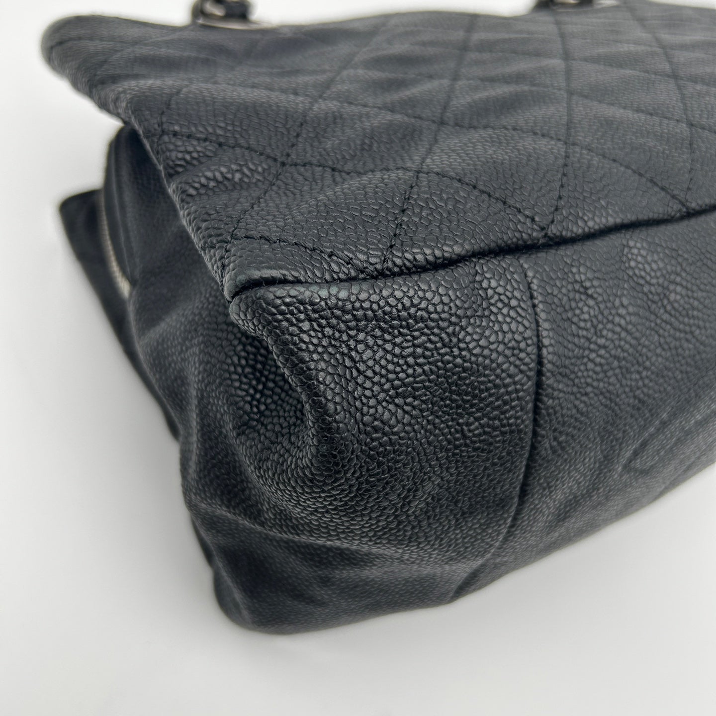 This CHANEL double-chain shoulder tote bag is in excellent pre-owned condition.
