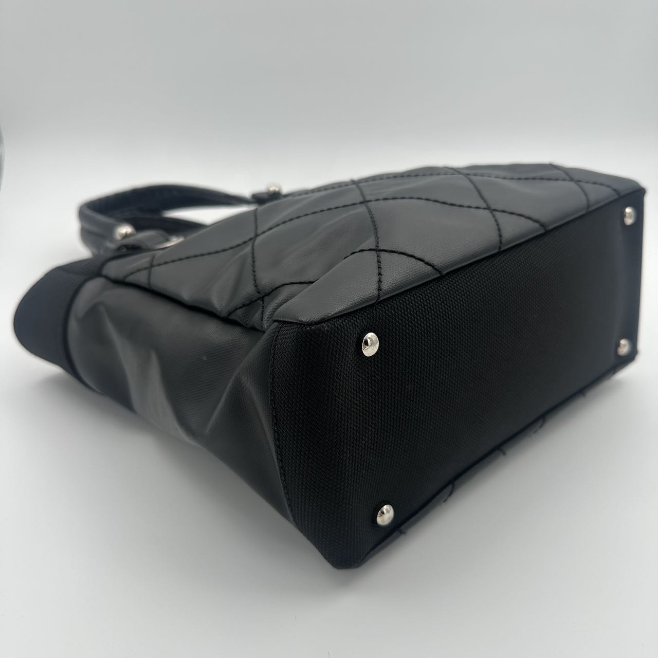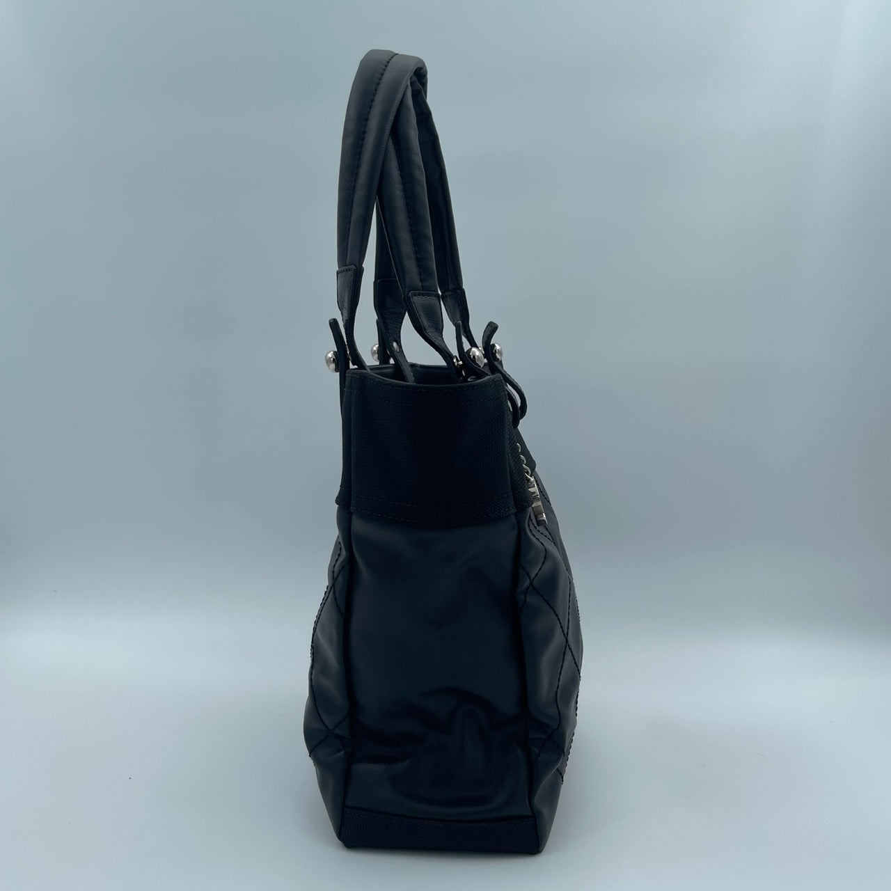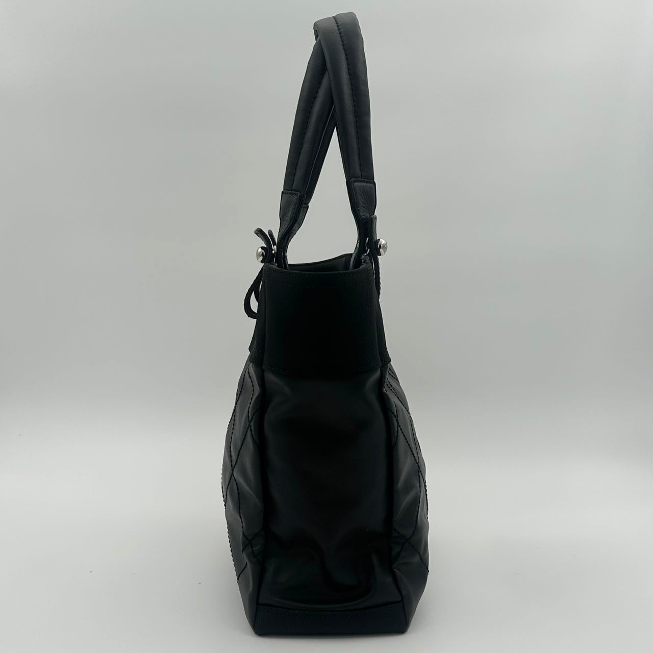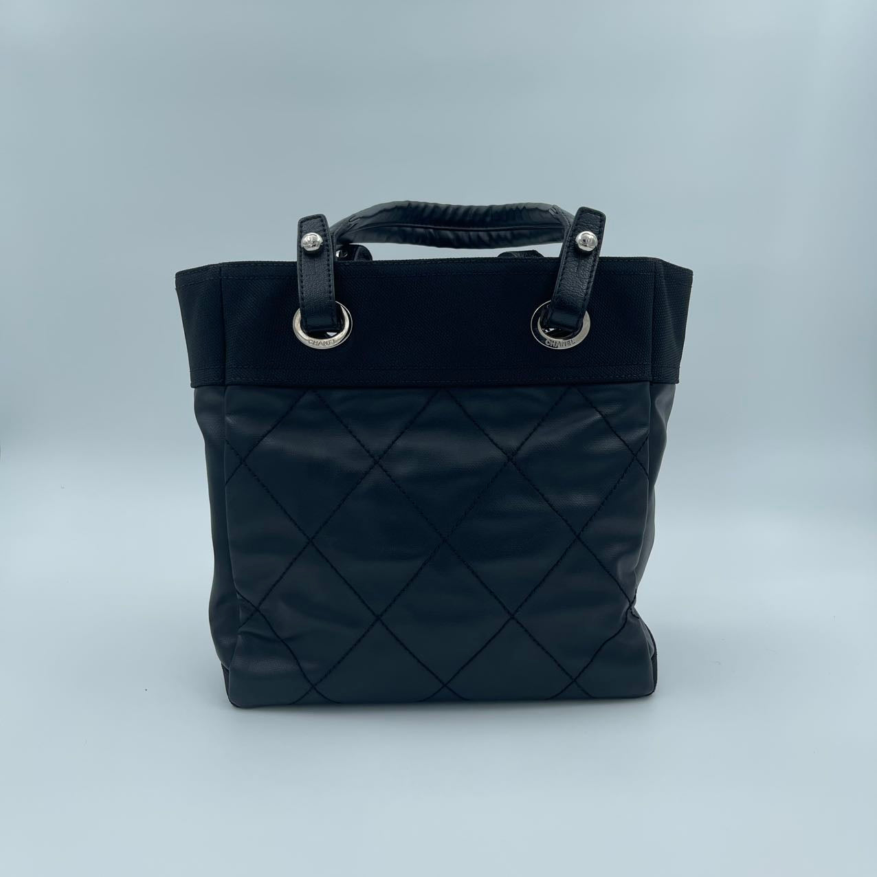 Chanel Black Canvas & Calfskin Small Tote Bag with Silver-Tone Double C Logo [Used]