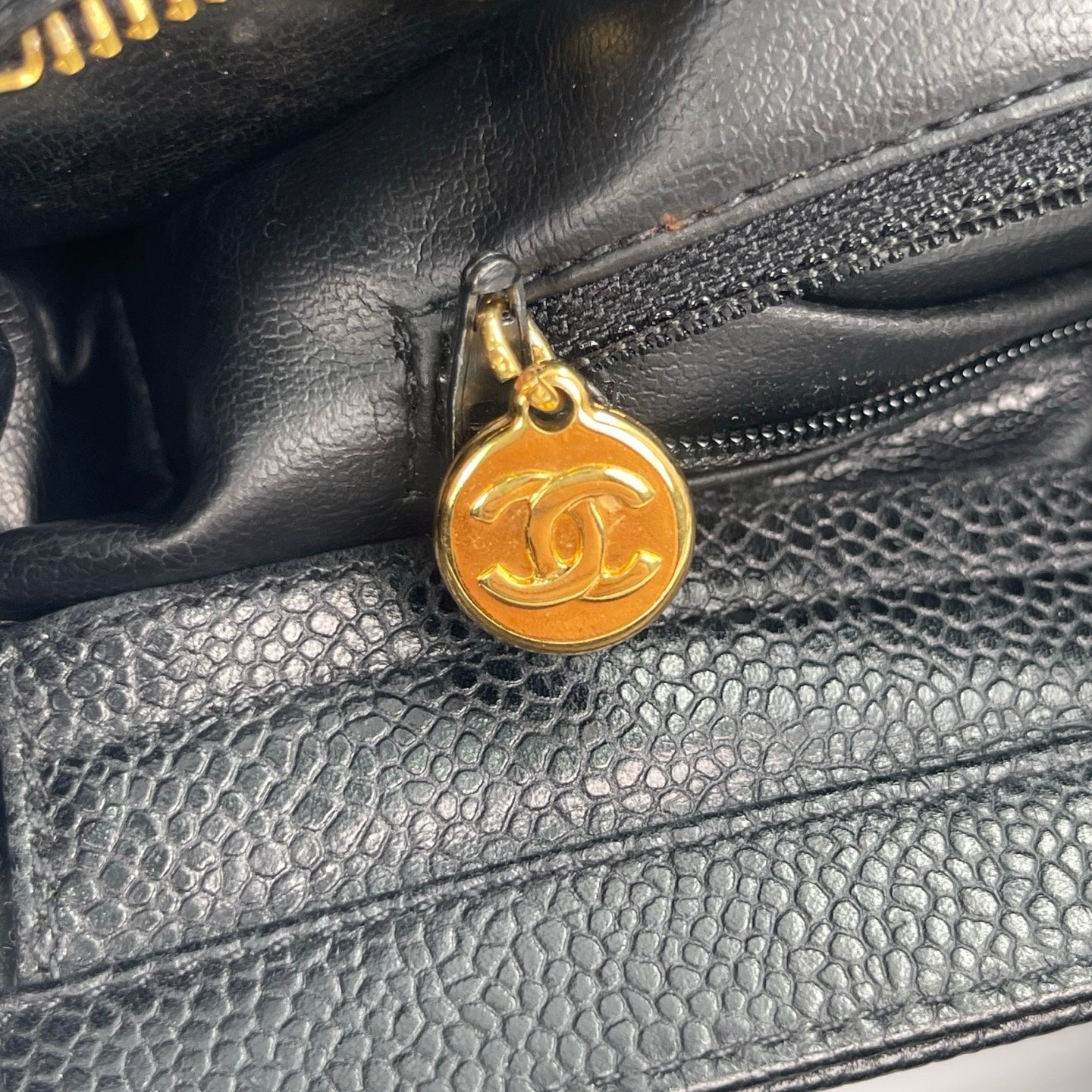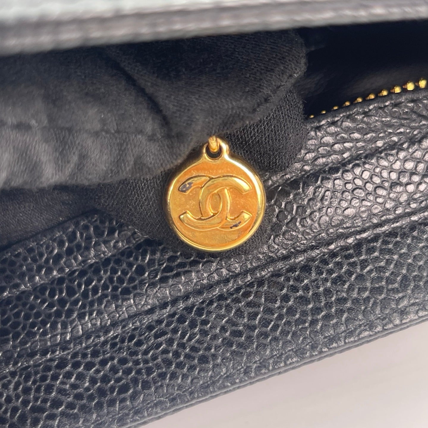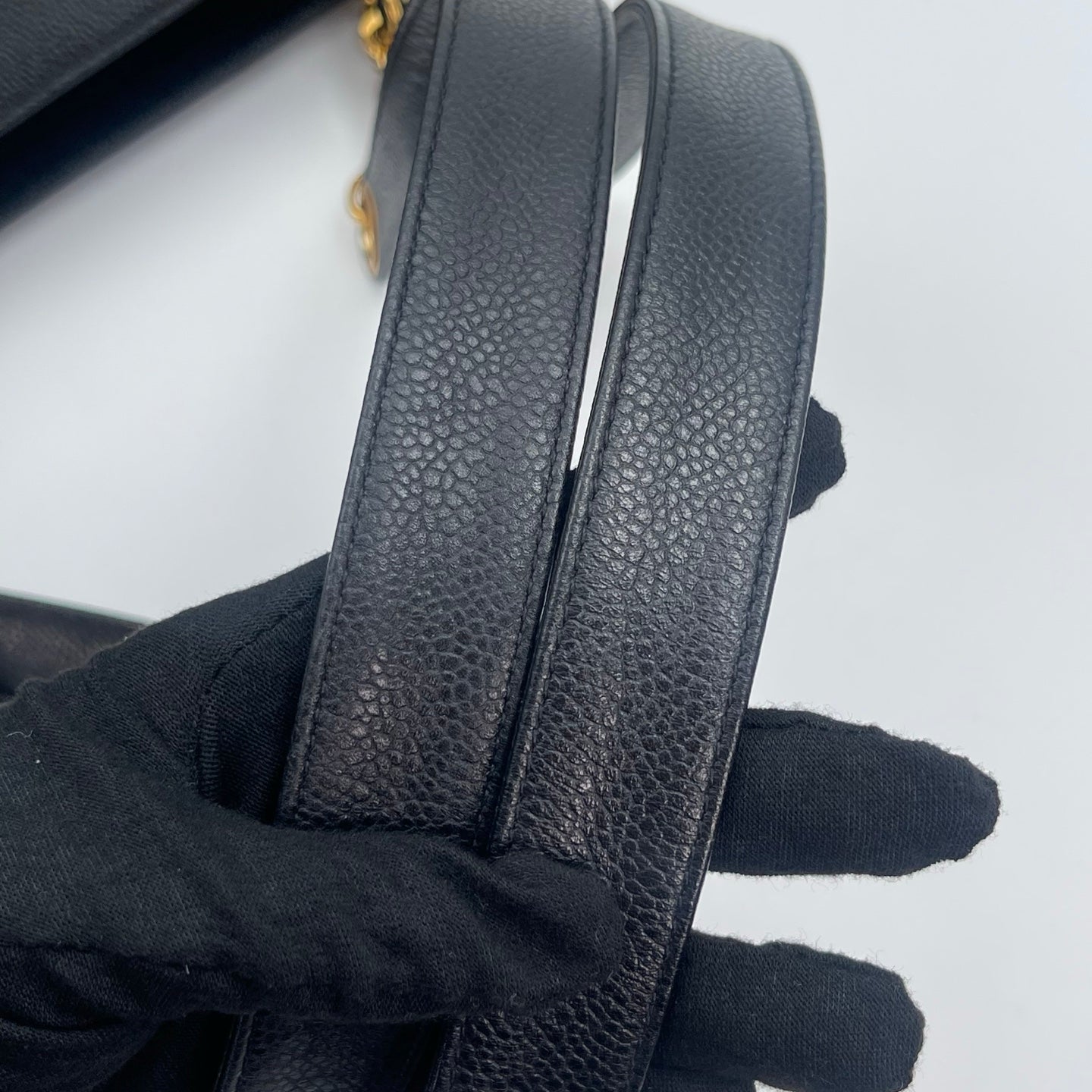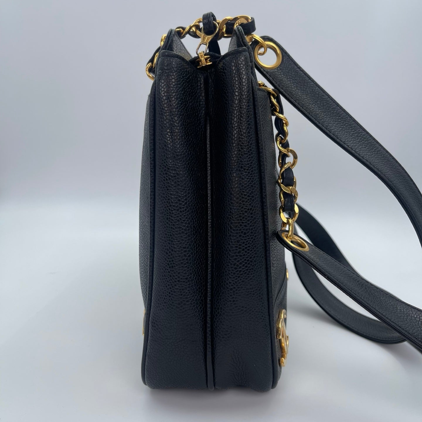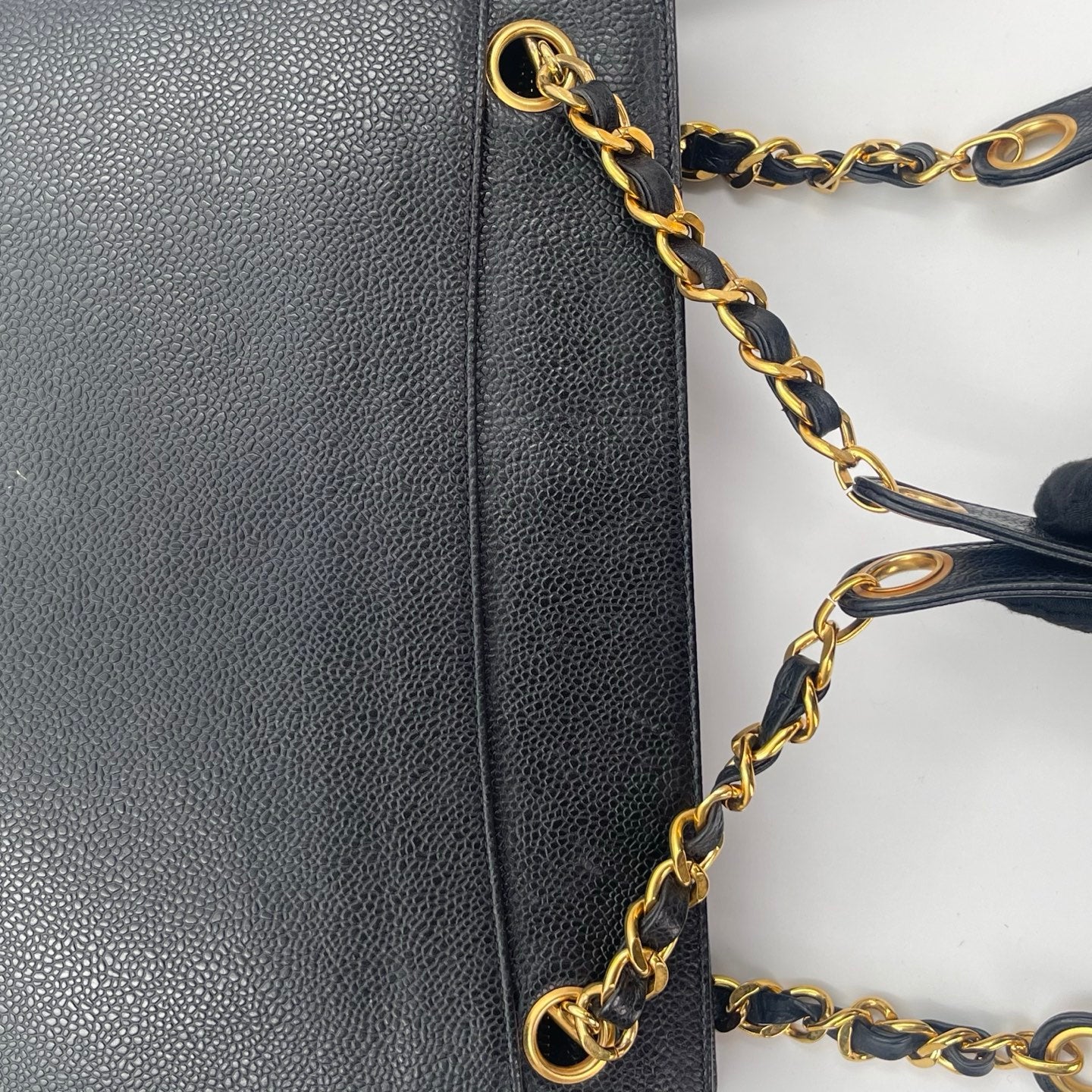 This bag is in very good pre-owned condition with minimal signs of wear. The caviar leather remains firm, textured, and well-preserved. Hardware retains a beautiful vintage gold tone with light, natural aging consistent with use. Corners show only slight wear, and the overall structure is clean and well-maintained. A rare and collectible Chanel tote in excellent condition.