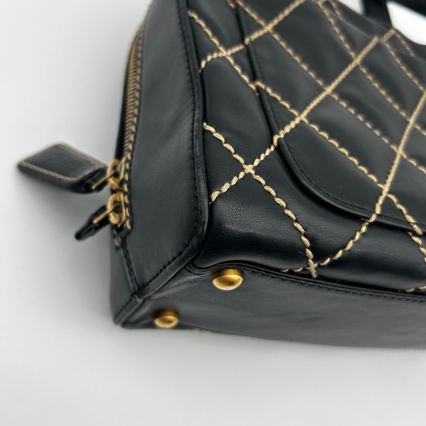 This CHANEL bowling-style top handle bag is in excellent pre-owned condition.