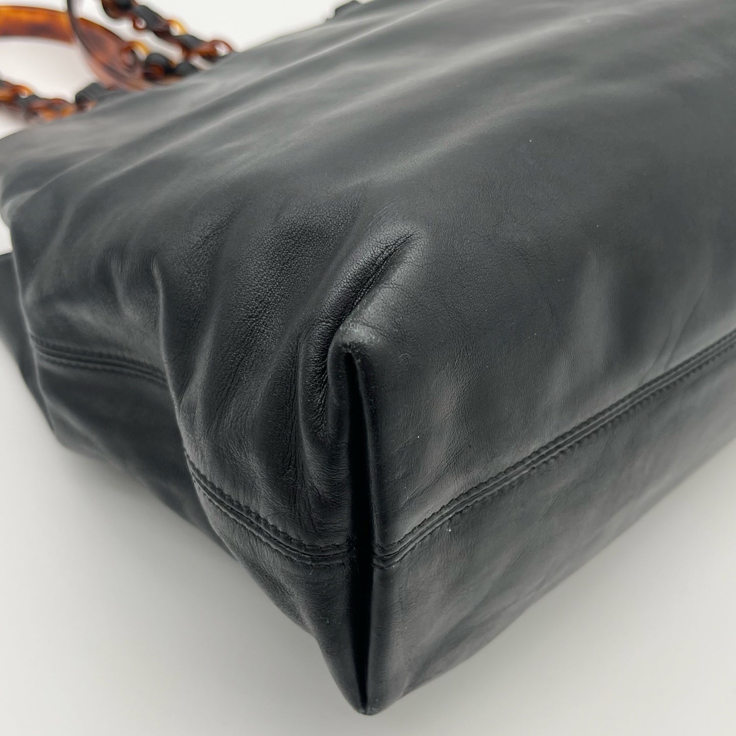 Chanel Black Lambskin Outline Logo Tortoiseshell Handle Tote Bag [Used]