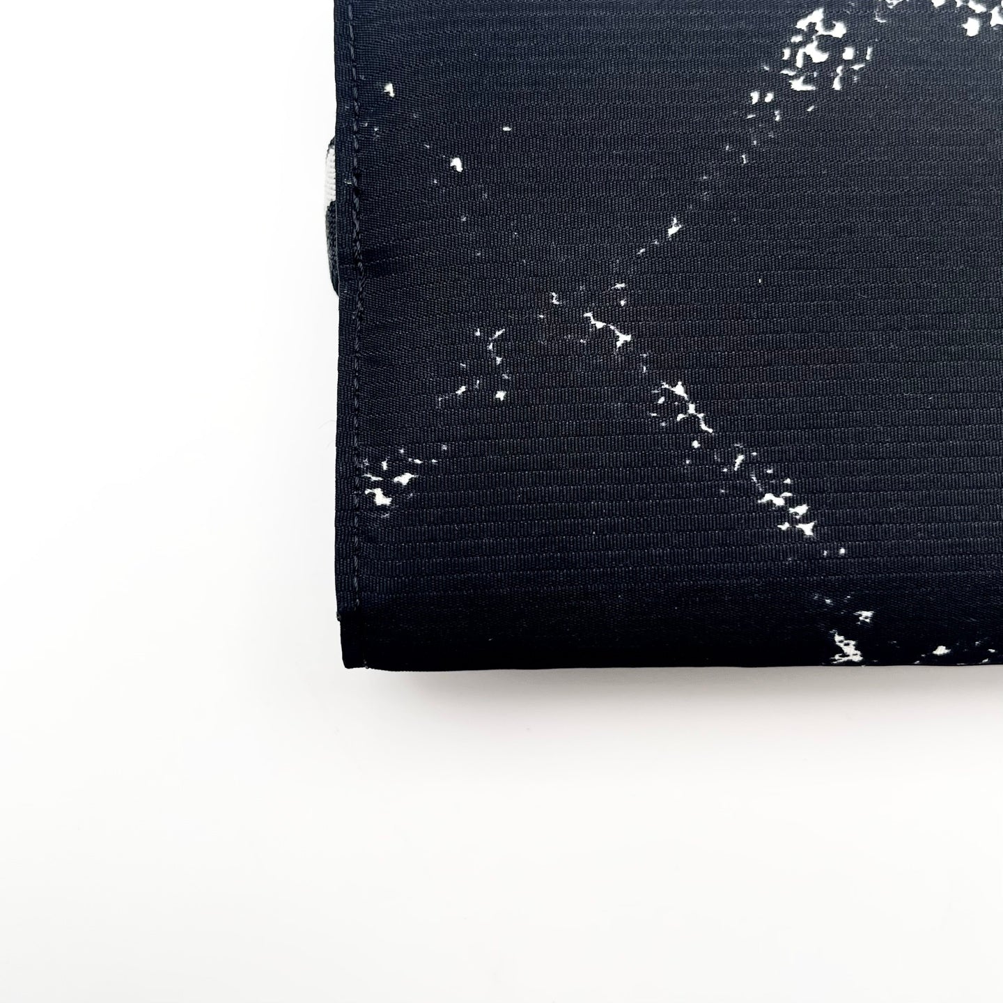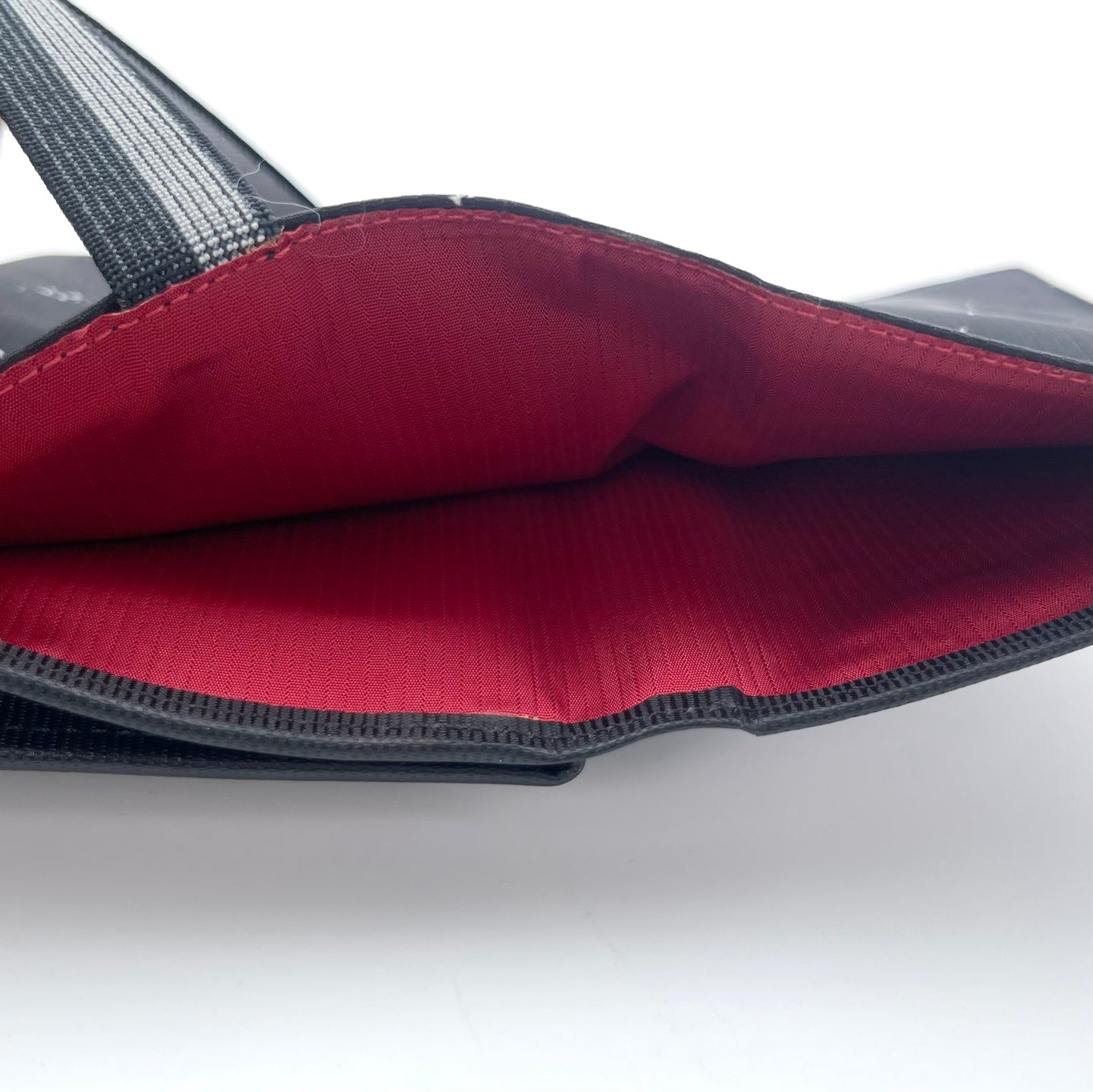 This wallet is in good pre-owned condition. The nylon material remains clean and intact, with light signs of use consistent with normal wear. The elastic band maintains good tension, and the interior compartments are well preserved. Overall, the wallet is well maintained and presents nicely.