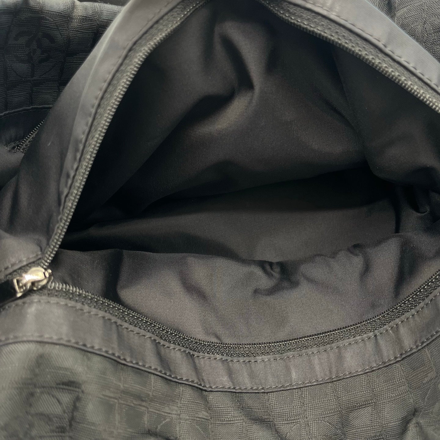 This CHANEL black quilted nylon 2-way tote bag is in excellent pre-owned condition.