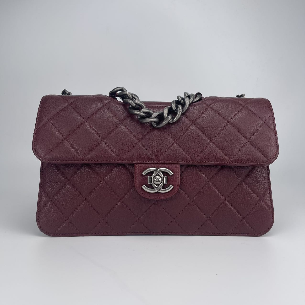 CHANEL Bombay Large Flap Bag in Burgundy Calfskin Leather [Used]