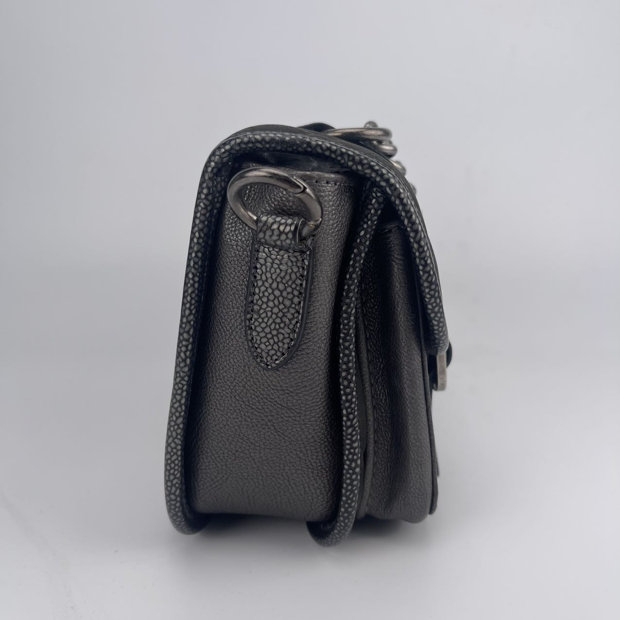 Hardware: Silver-tone hardware, offering a sleek and modern contrast to the classic black calfskin, giving the bag a polished and versatile look.