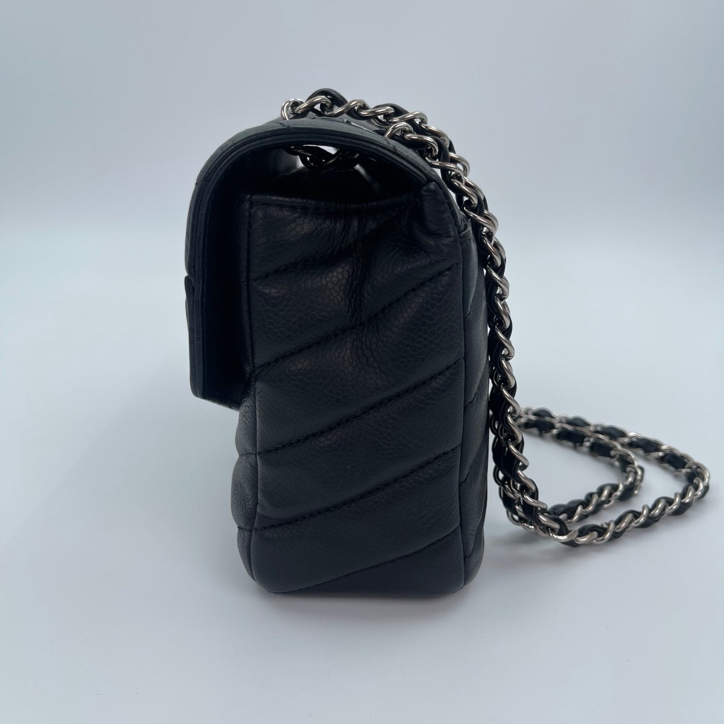 Chanel Caviar Leather Chevron Flap Chain Bag Black/Silver [Used]