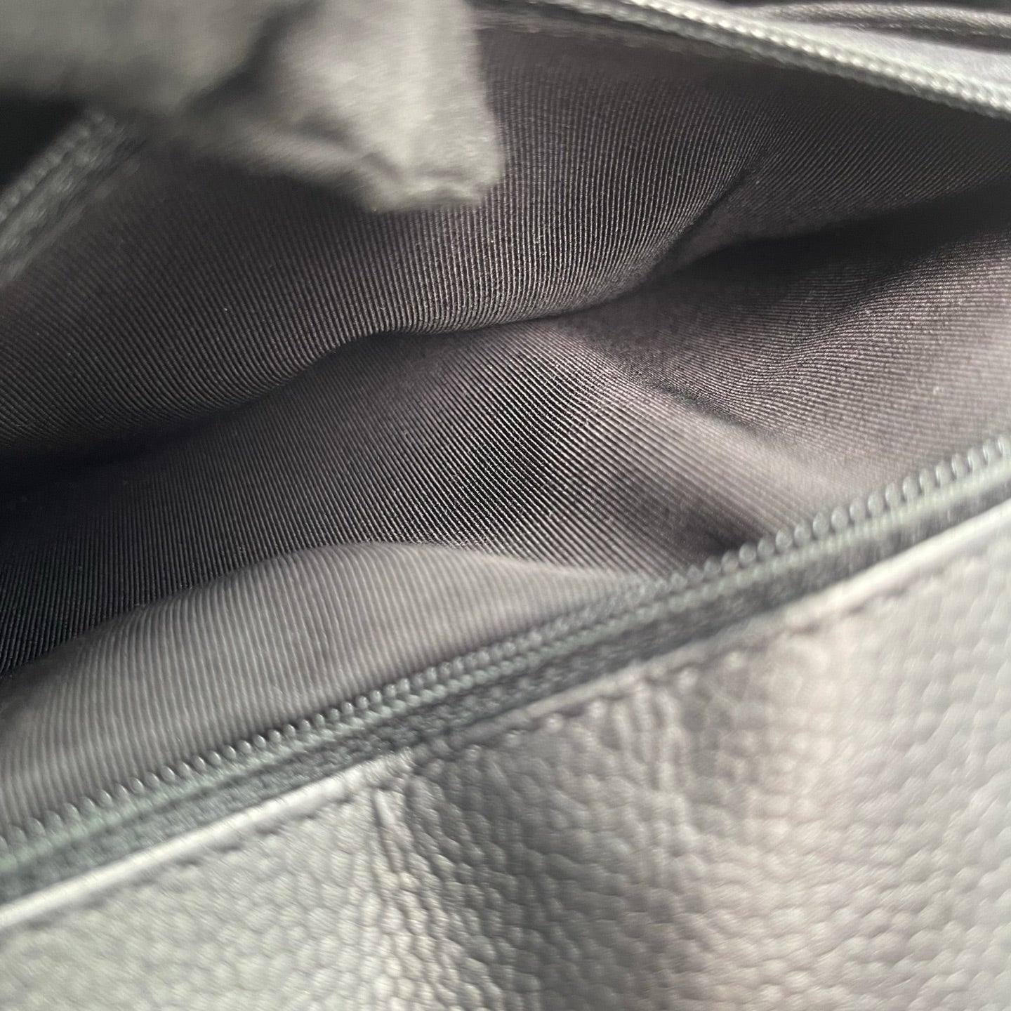 This bag is in very good pre-owned condition with normal signs of use. The exterior leather remains in excellent overall condition, with minimal wear to the corners. There is a visible crease on the back flap area, consistent with regular use. The hardware is shiny and functions properly. The interior shows light signs of use but remains clean and well-kept. Overall, the bag retains a beautiful structure and finish.