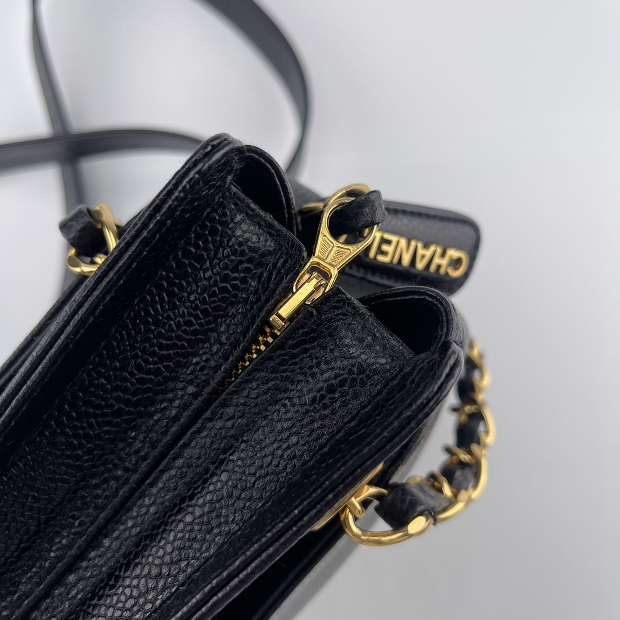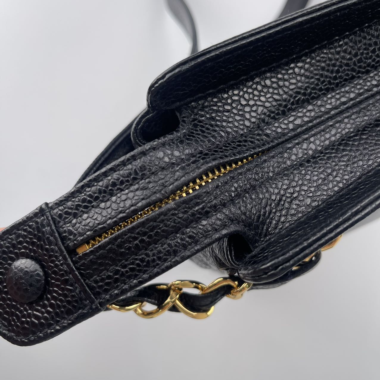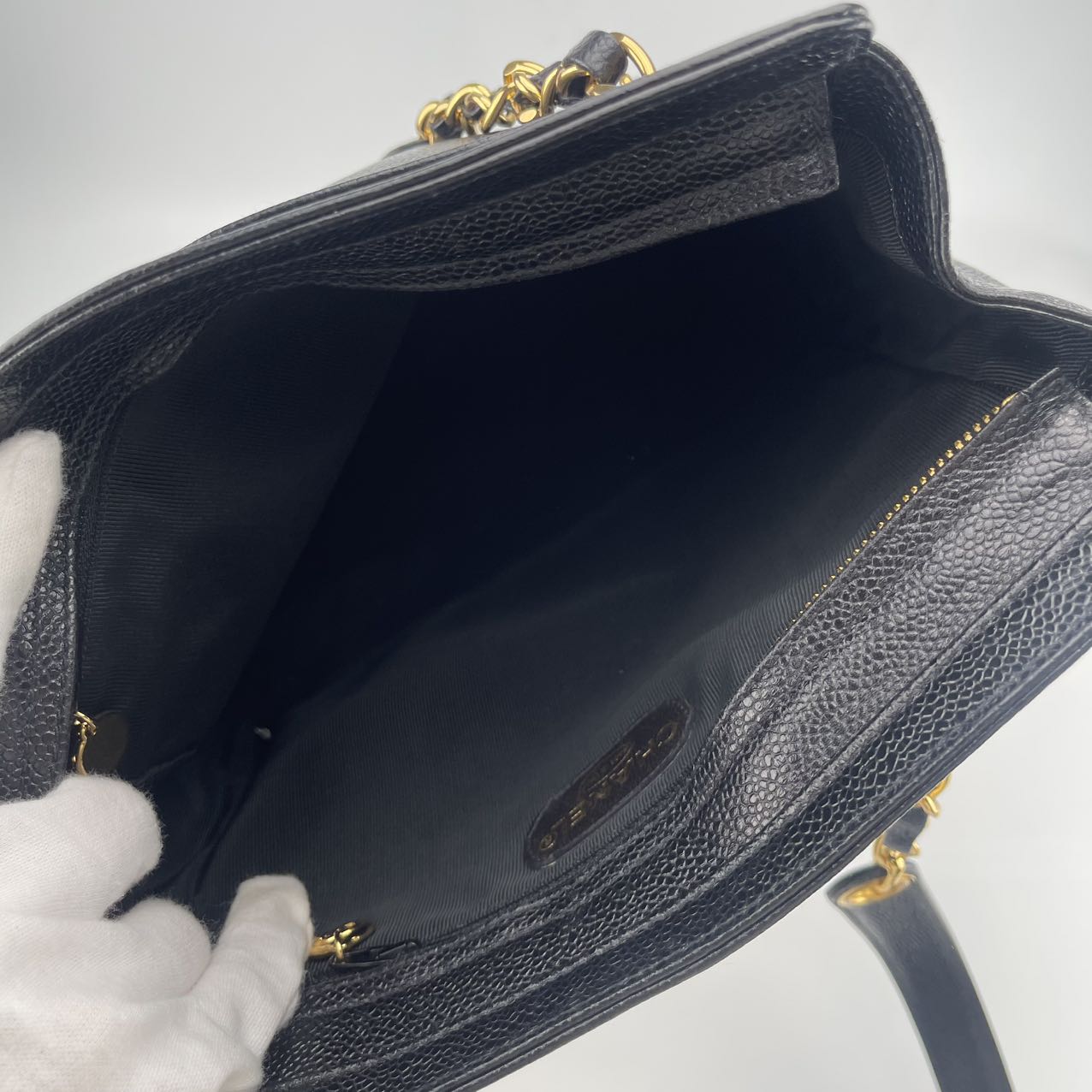 Hardware: Silver-tone hardware, enhancing the luxurious and timeless appeal of the black caviar leather, giving the bag an elegant and refined finish.