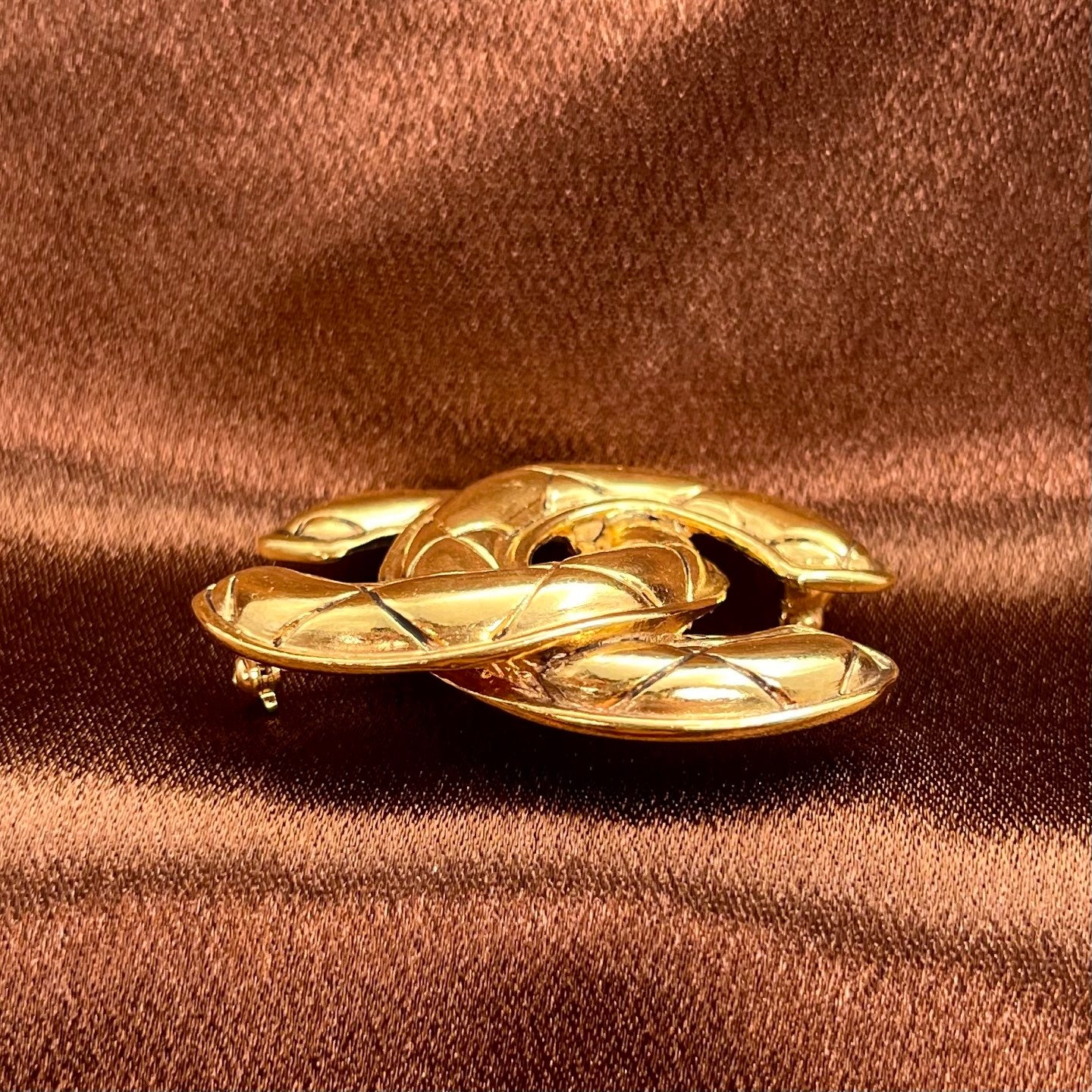 CHANEL CC LOGO Matelasse Vintage Golden Brooch Medium size [Used]