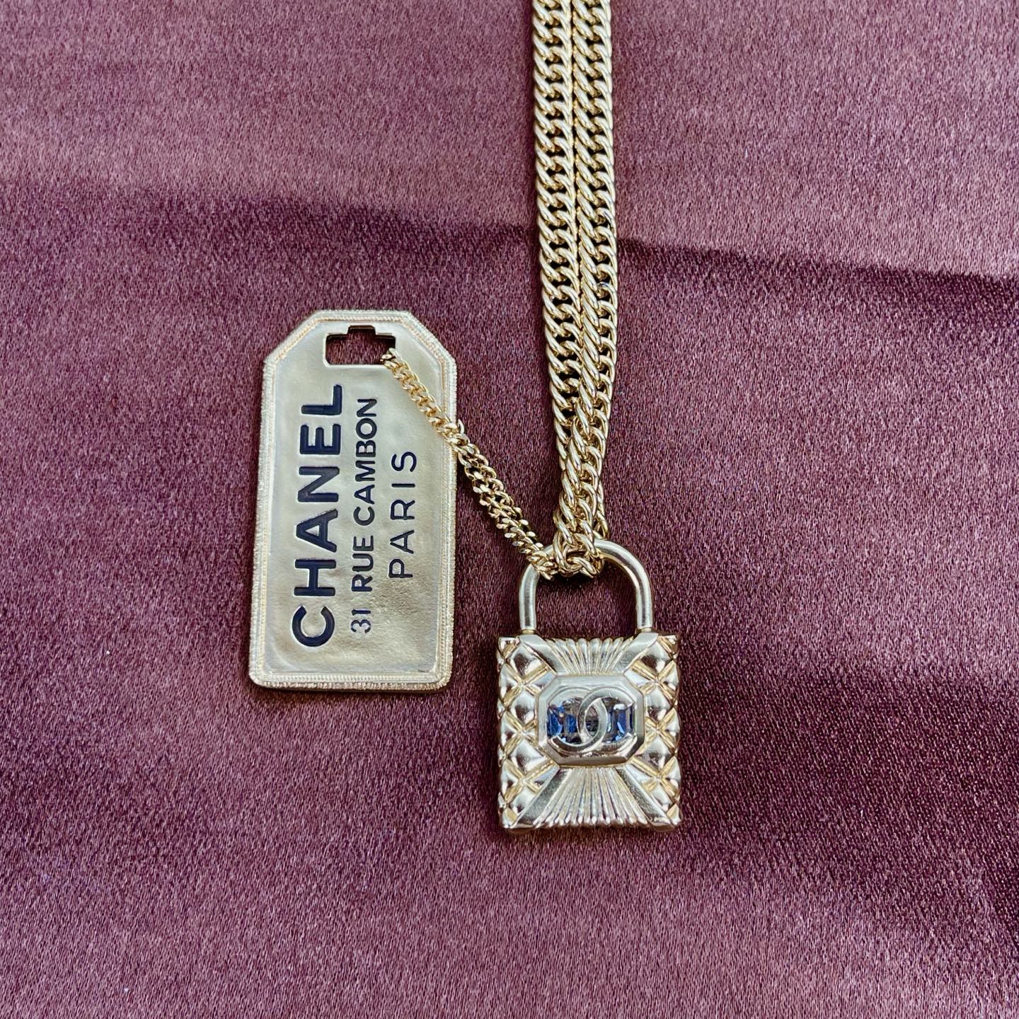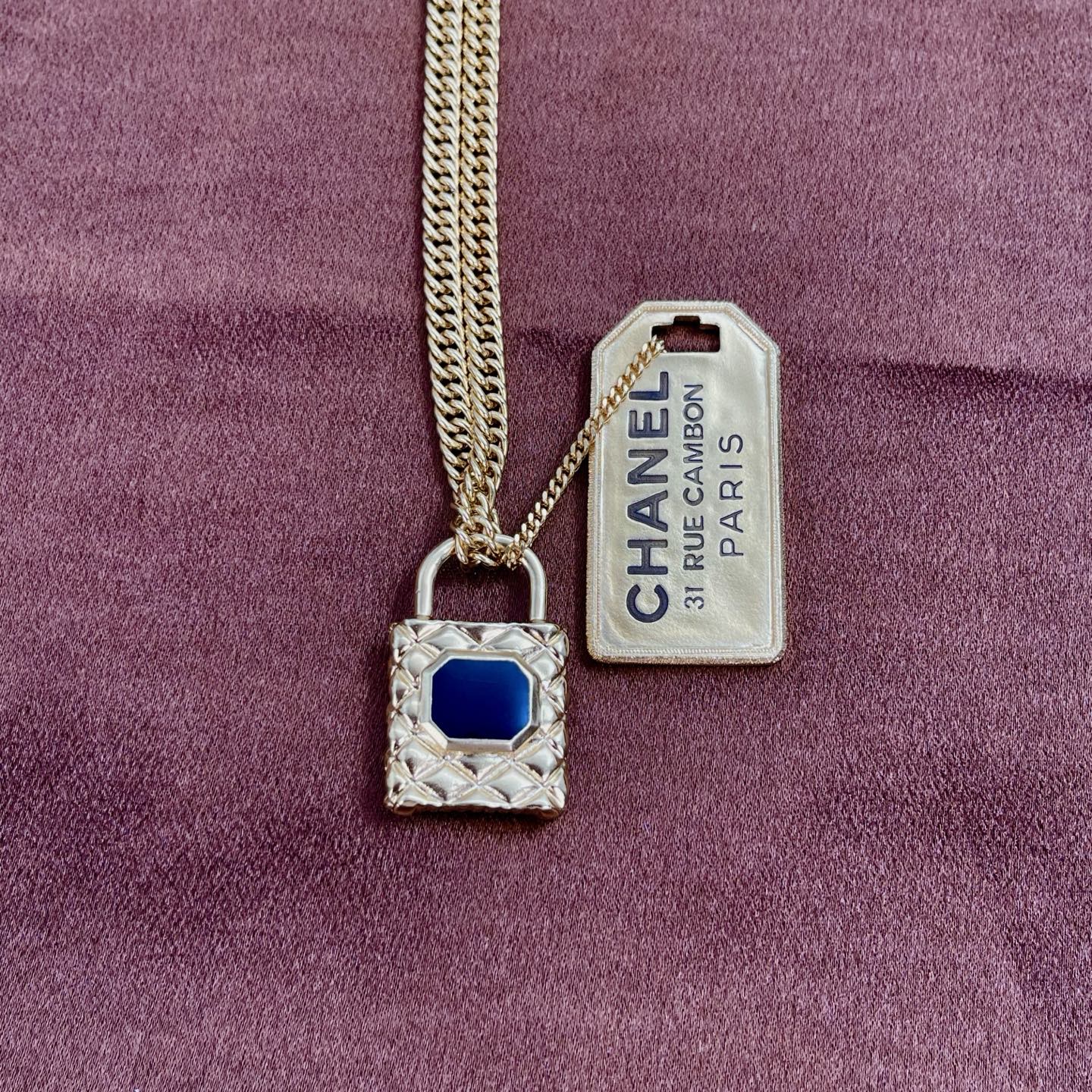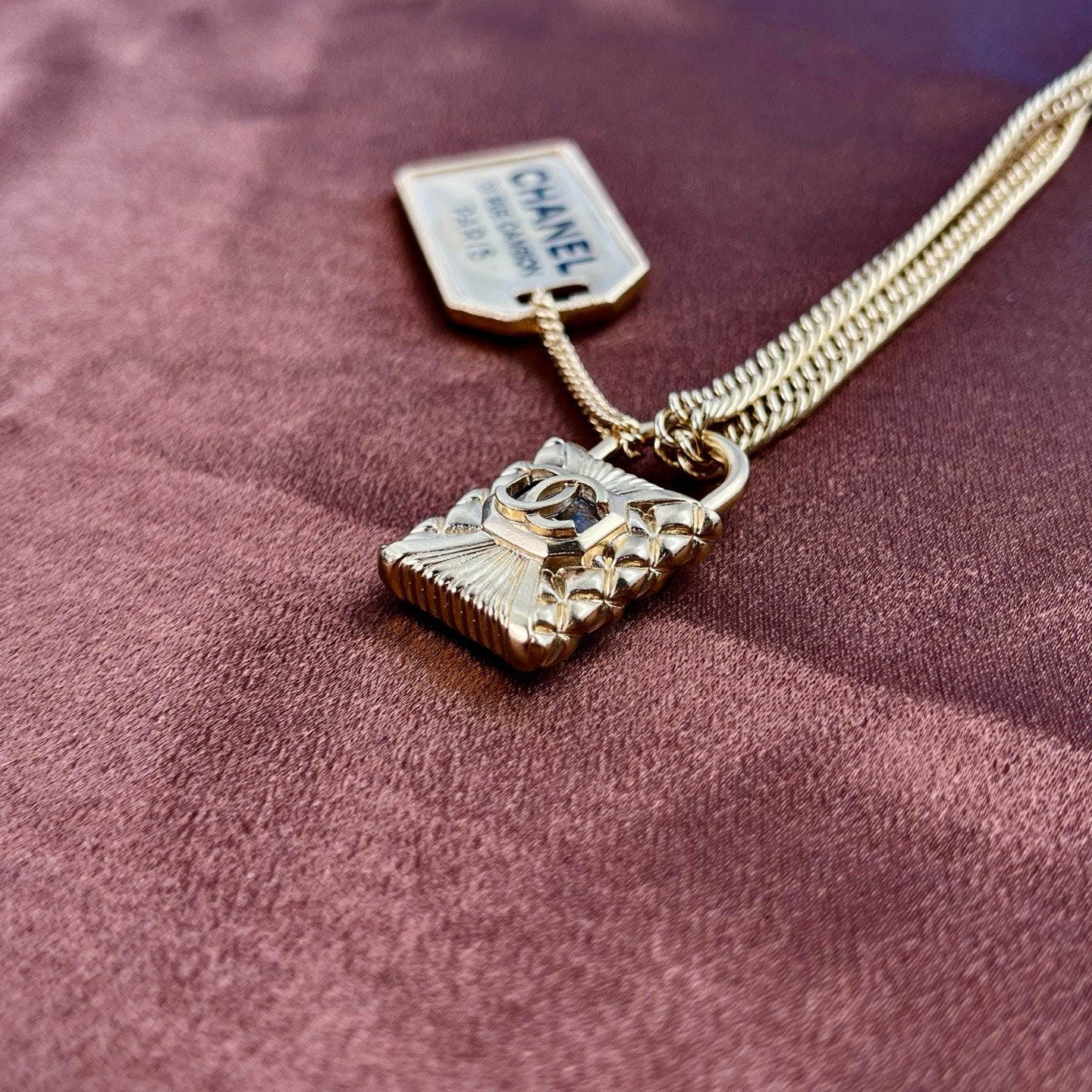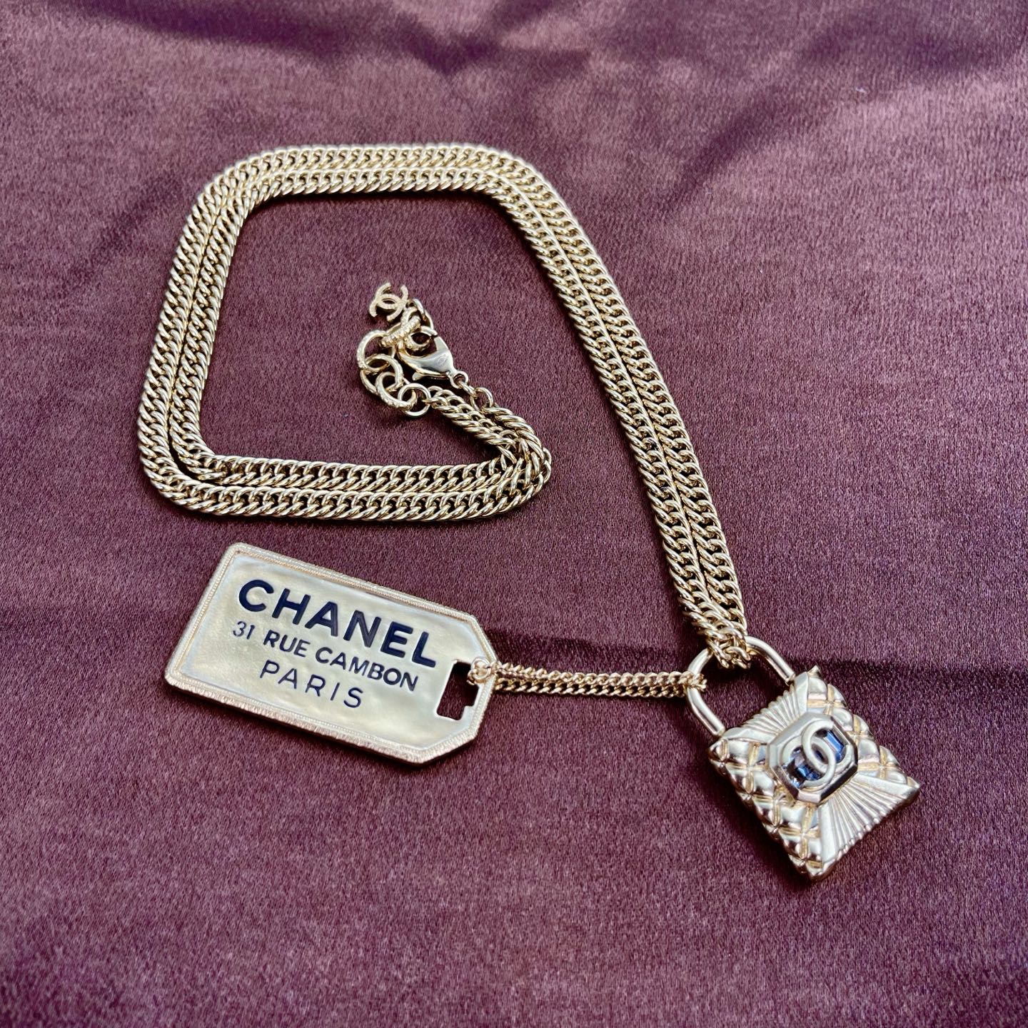 Chanel CC Padlock ID Dog Tag Charm Necklace Gold[Used]