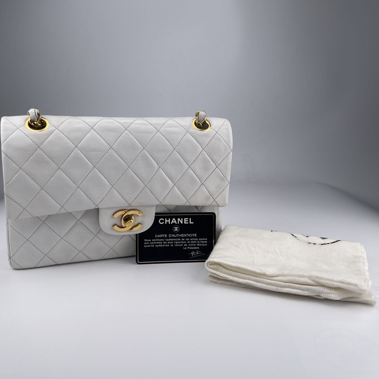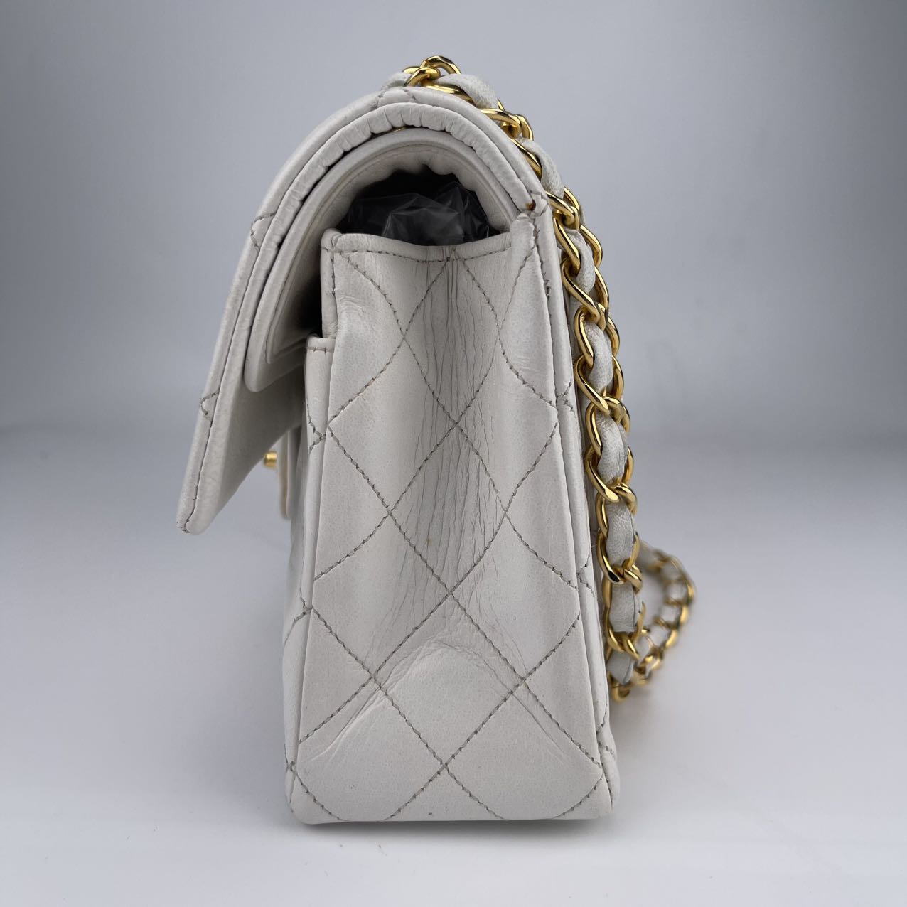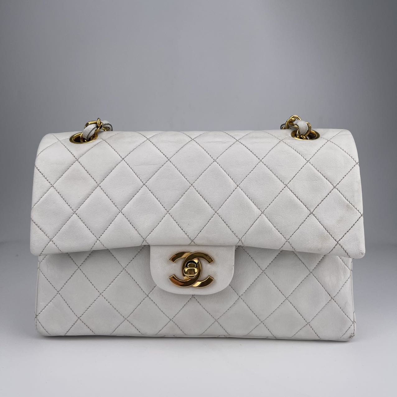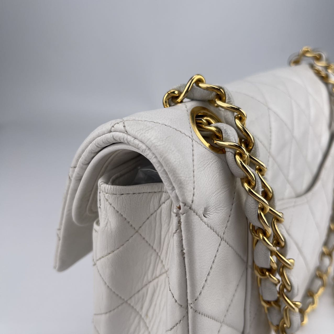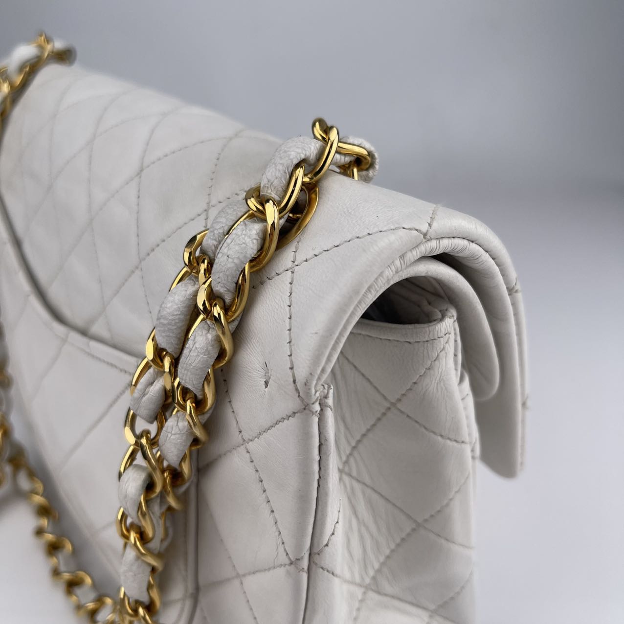 Hardware: Gold-tone hardware, perfectly complementing the luxurious white gold lambskin leather, adding a sophisticated and elegant touch to the bag.