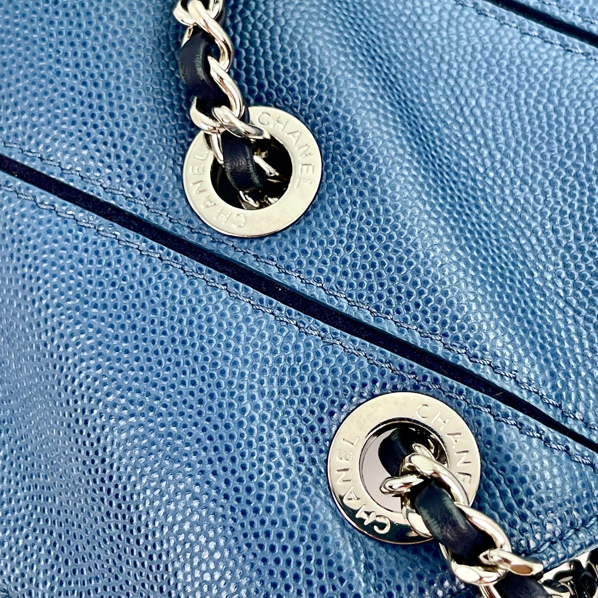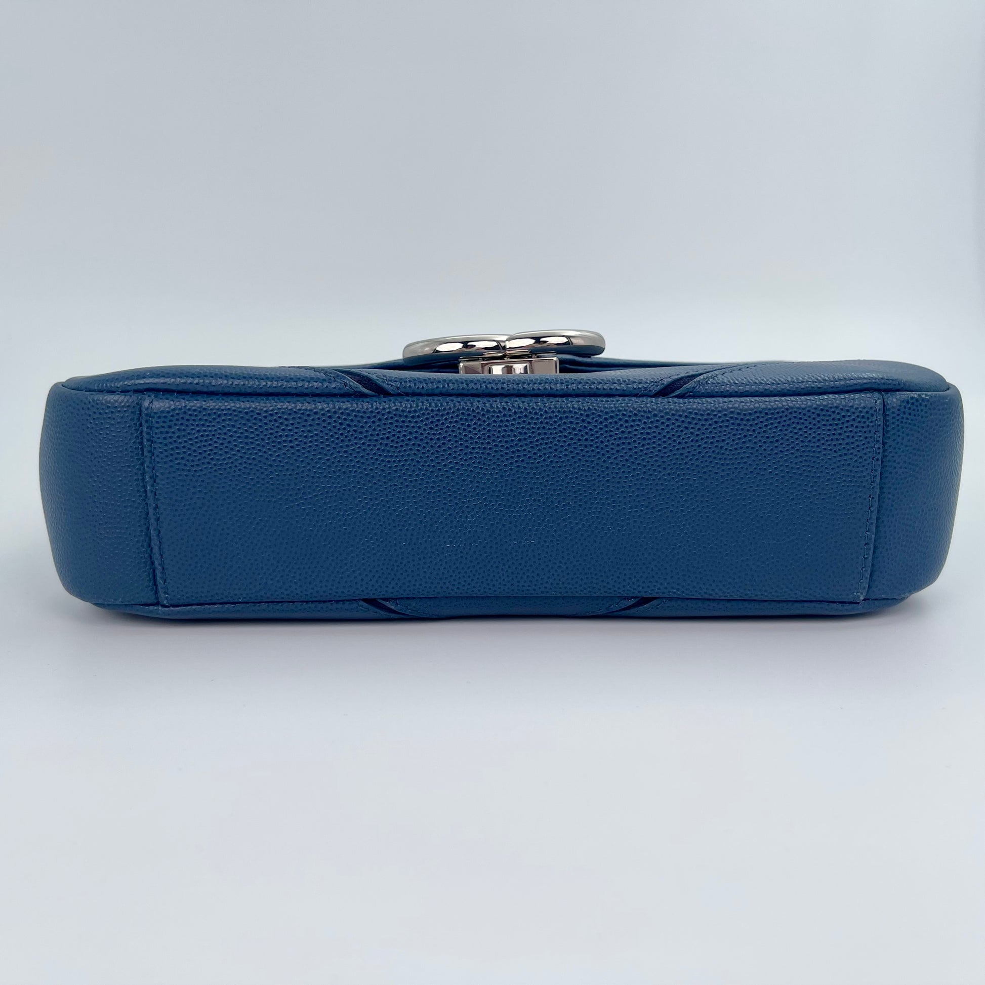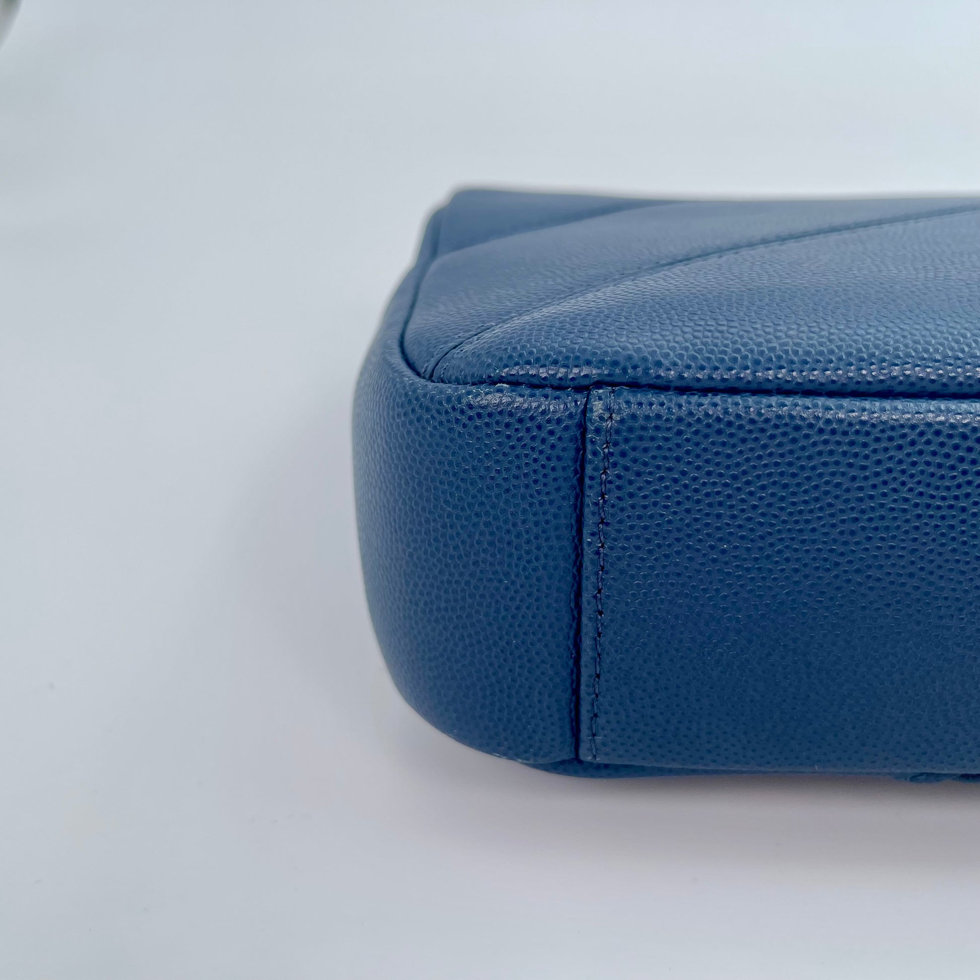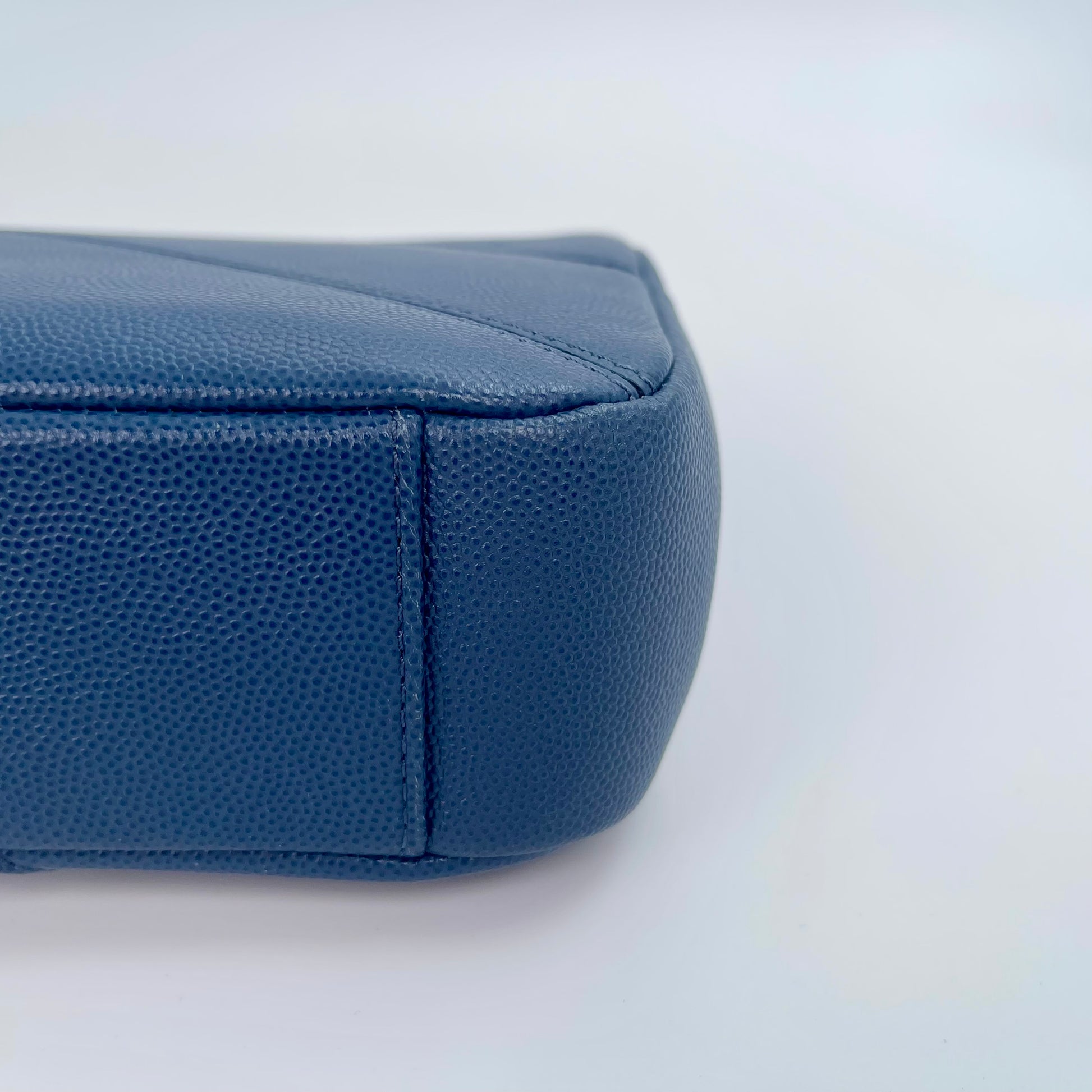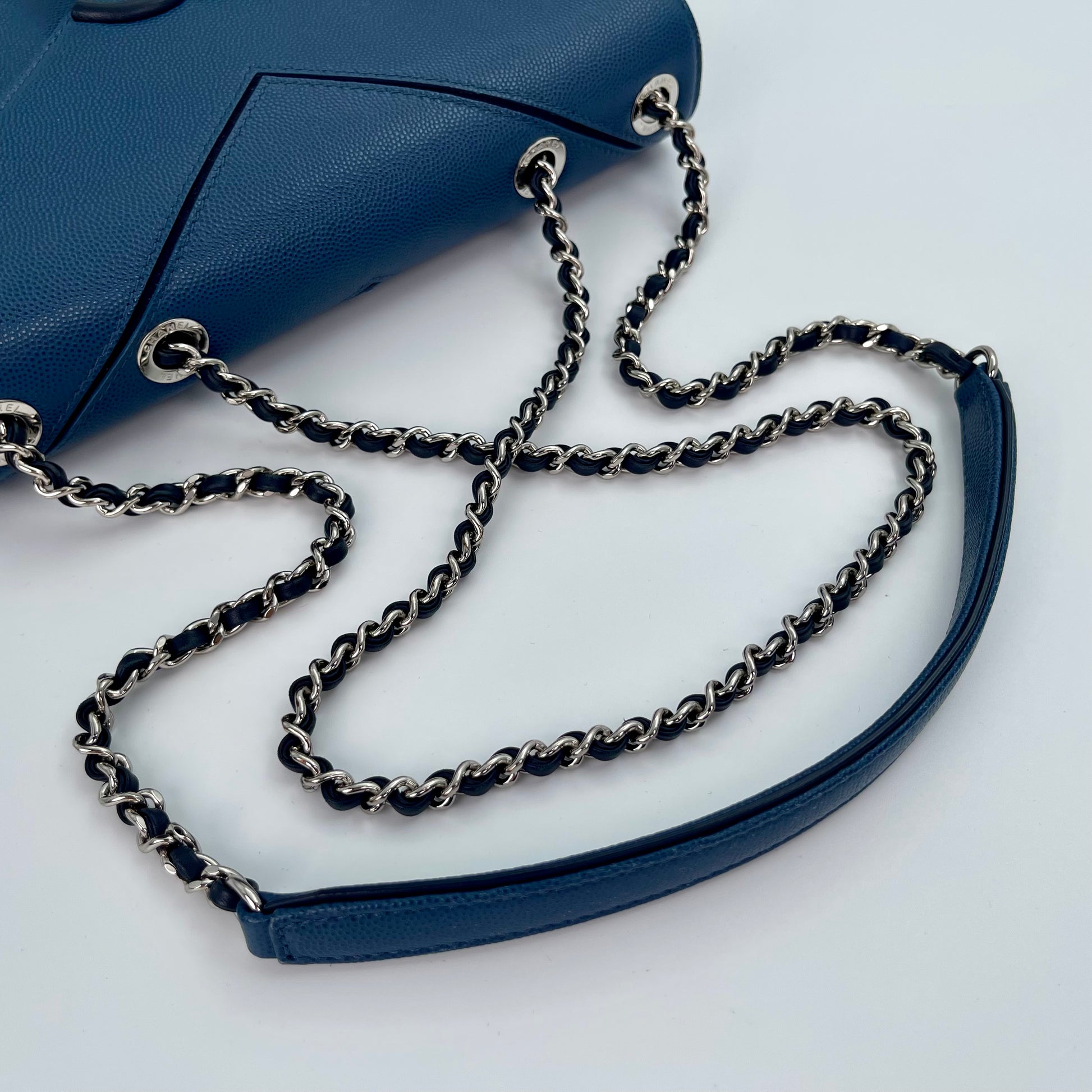 Chanel Chevron Flap Bag Blue Caviar Leather from the Cuba Collection [Used]