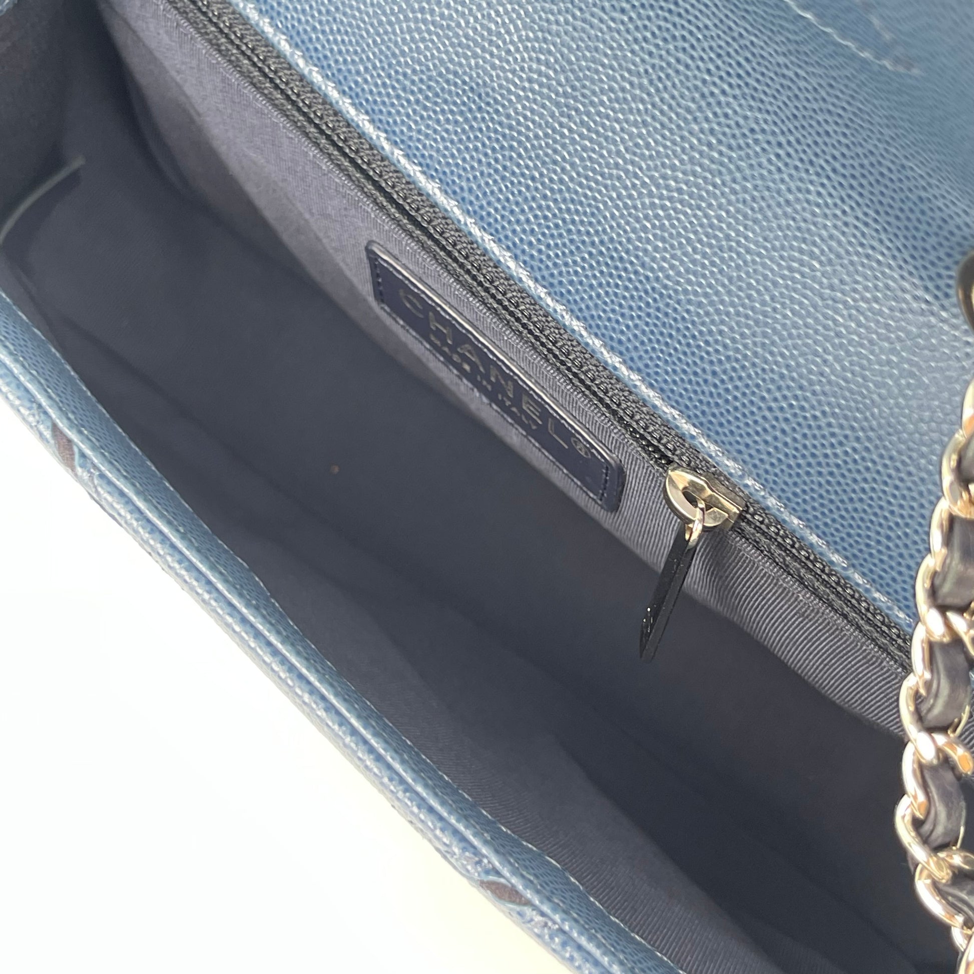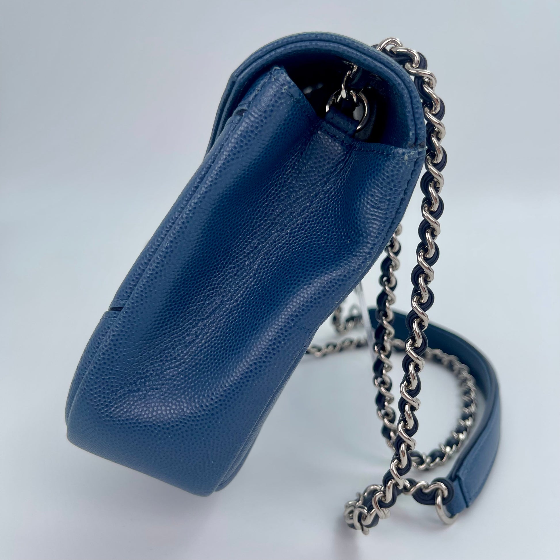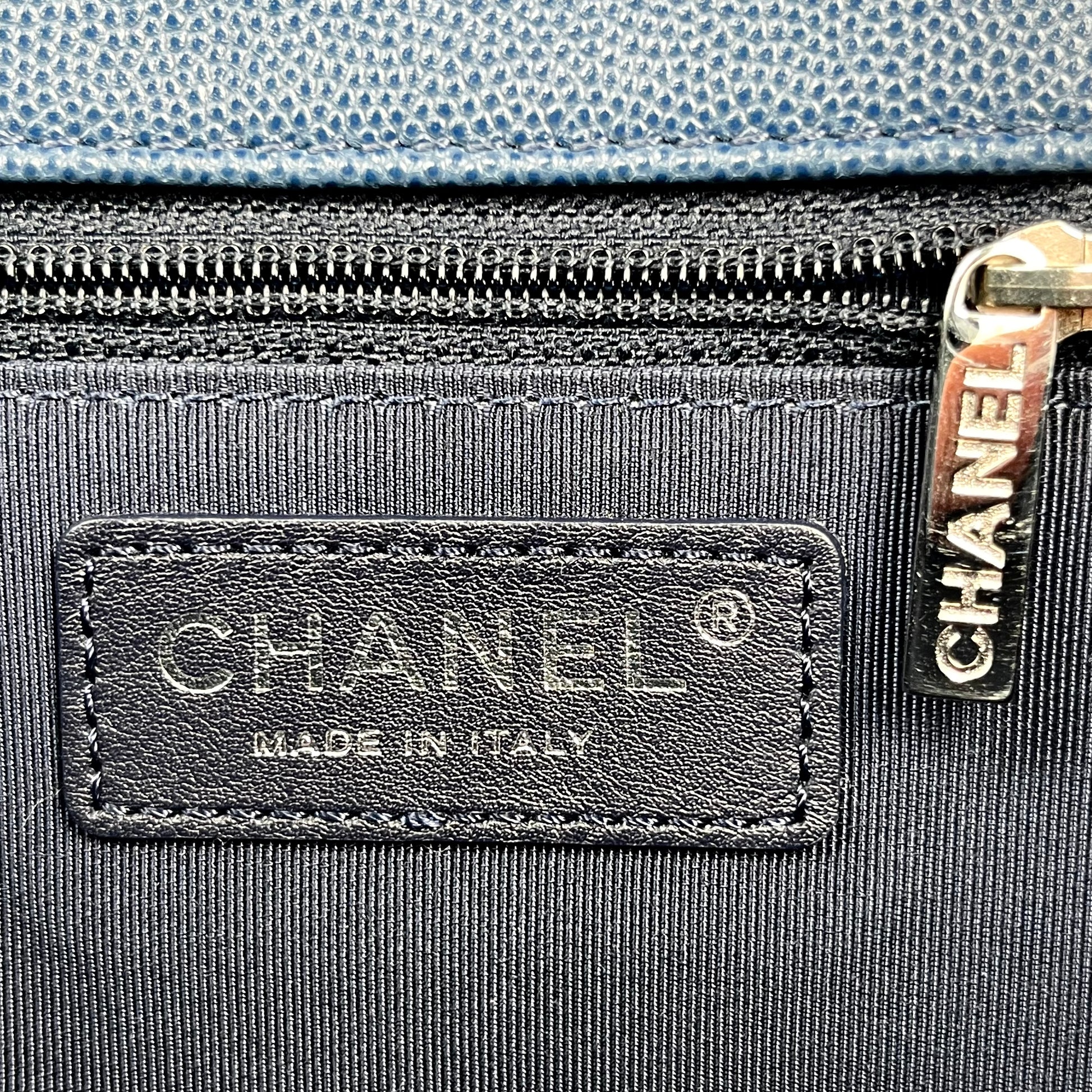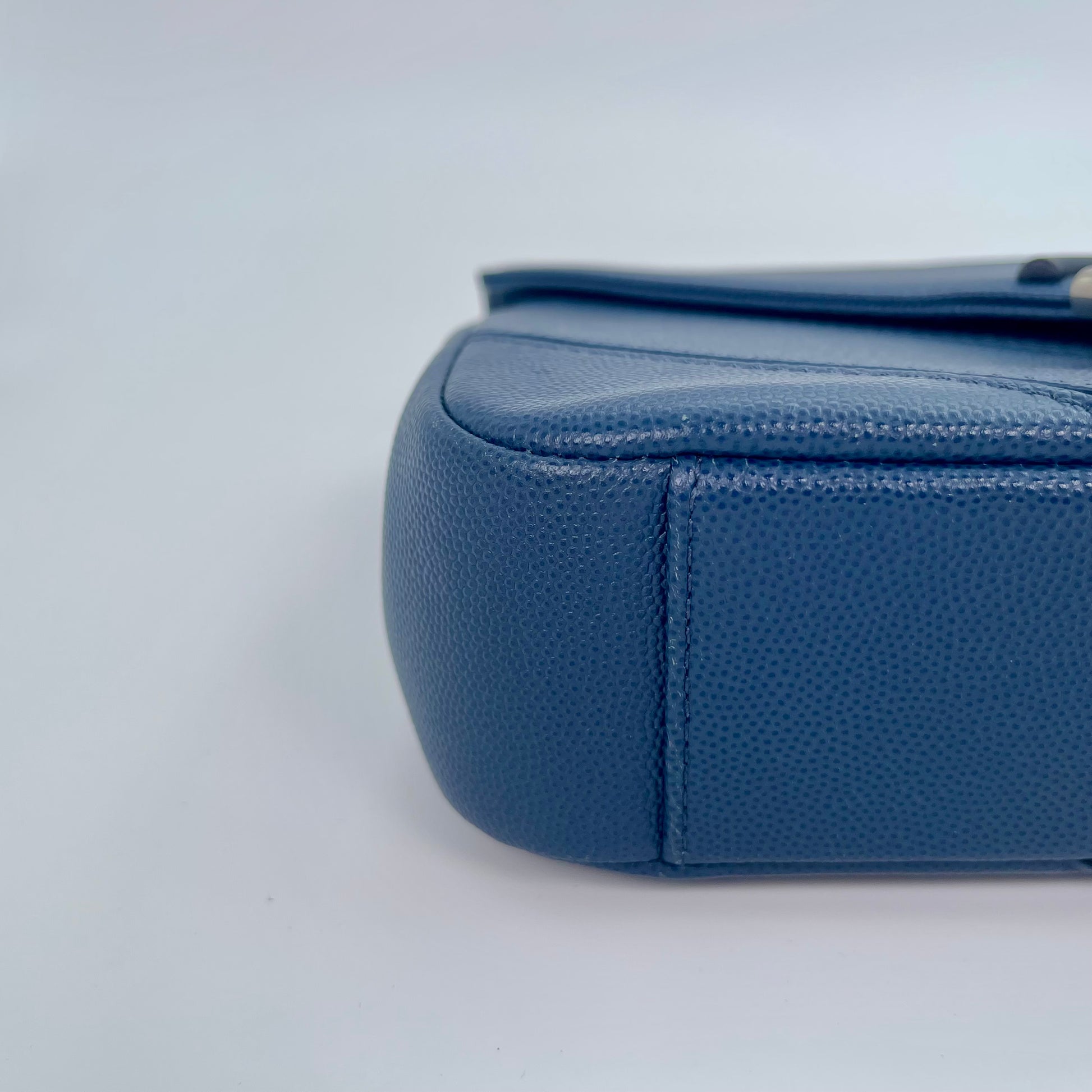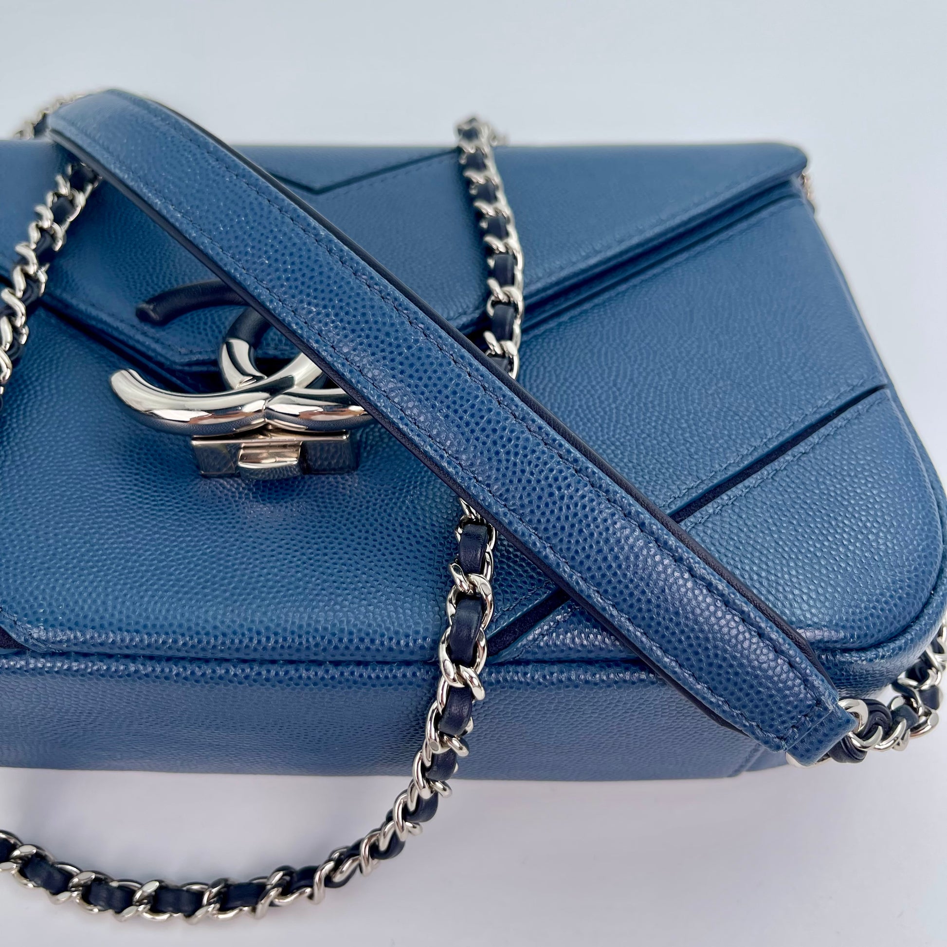 Chanel Chevron Flap Bag Blue Caviar Leather from the Cuba Collection [Used]