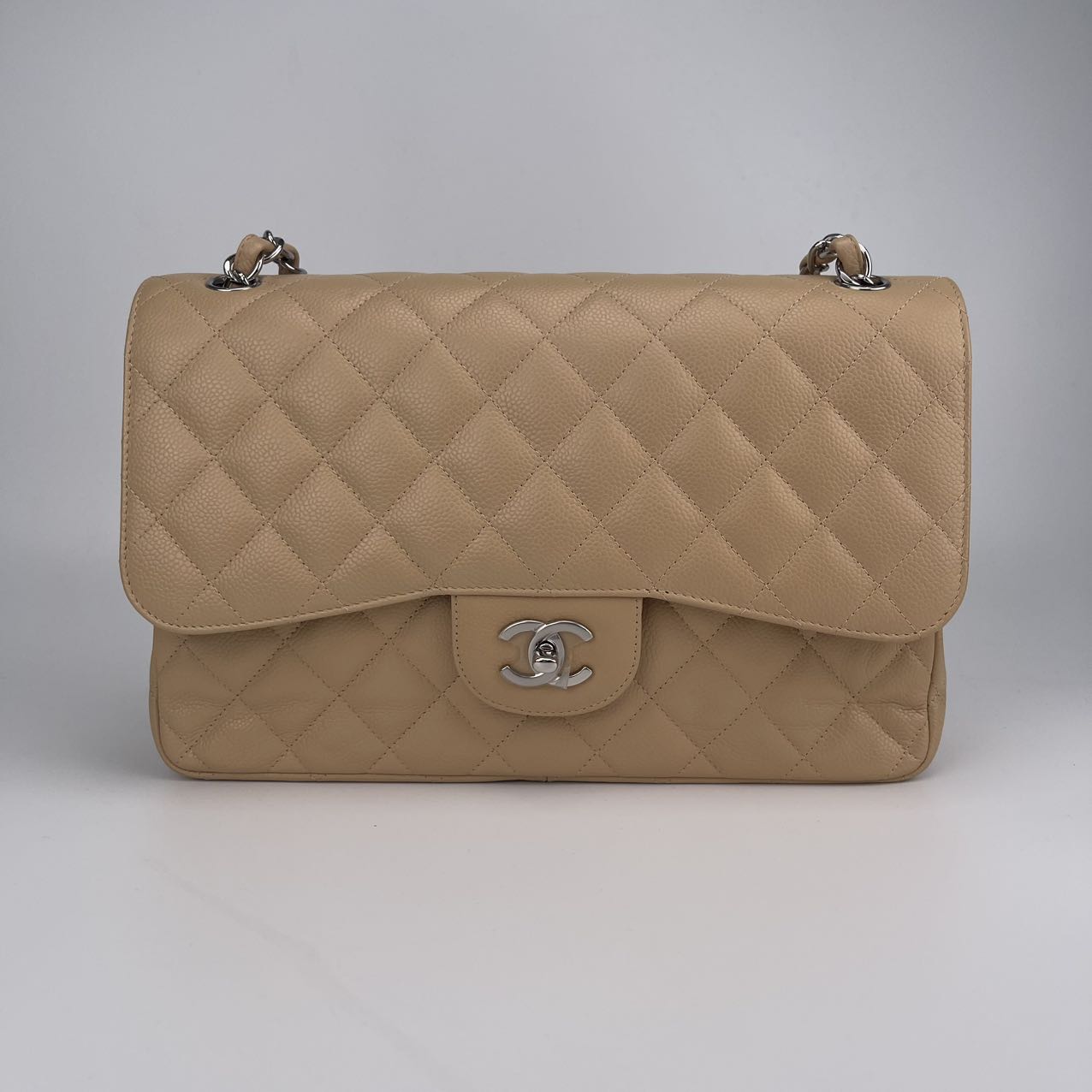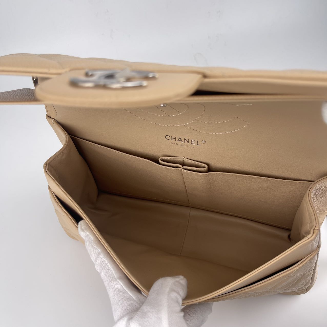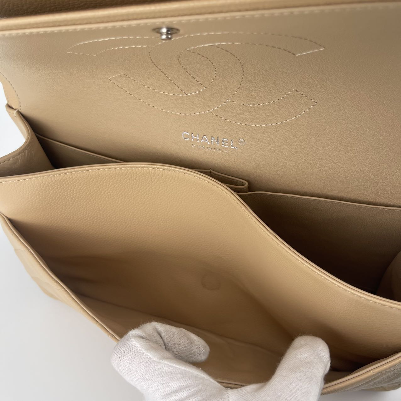 CHANEL Classic Double Flap Jumbo in Beige Caviar Leather [Used]