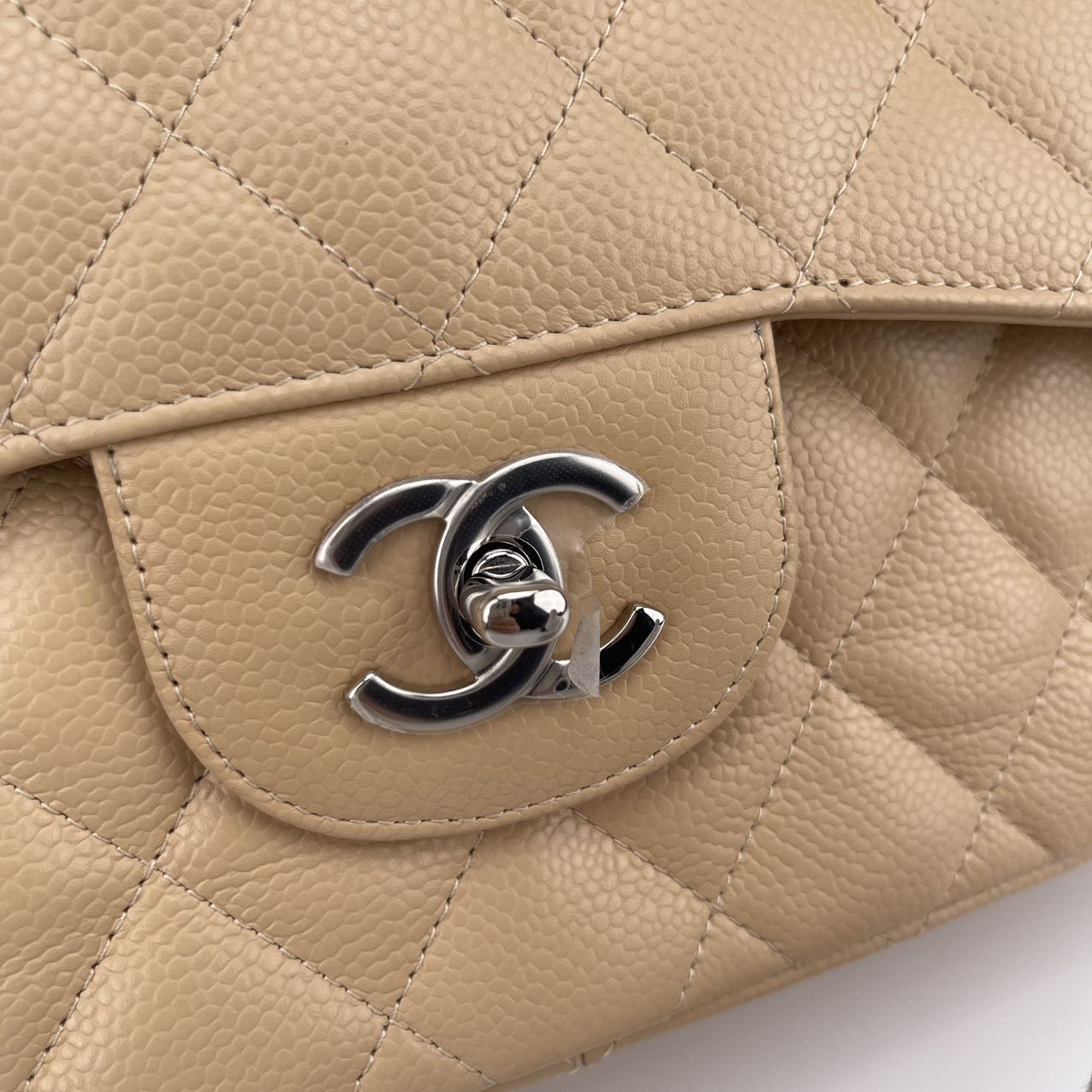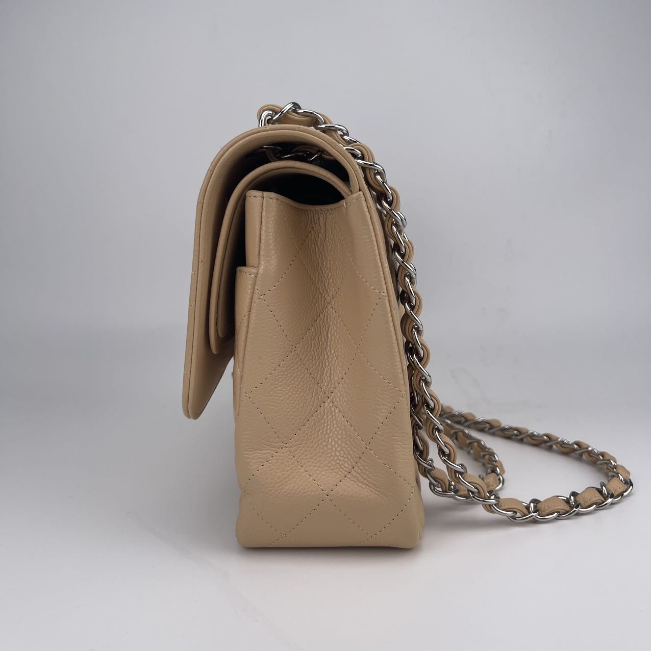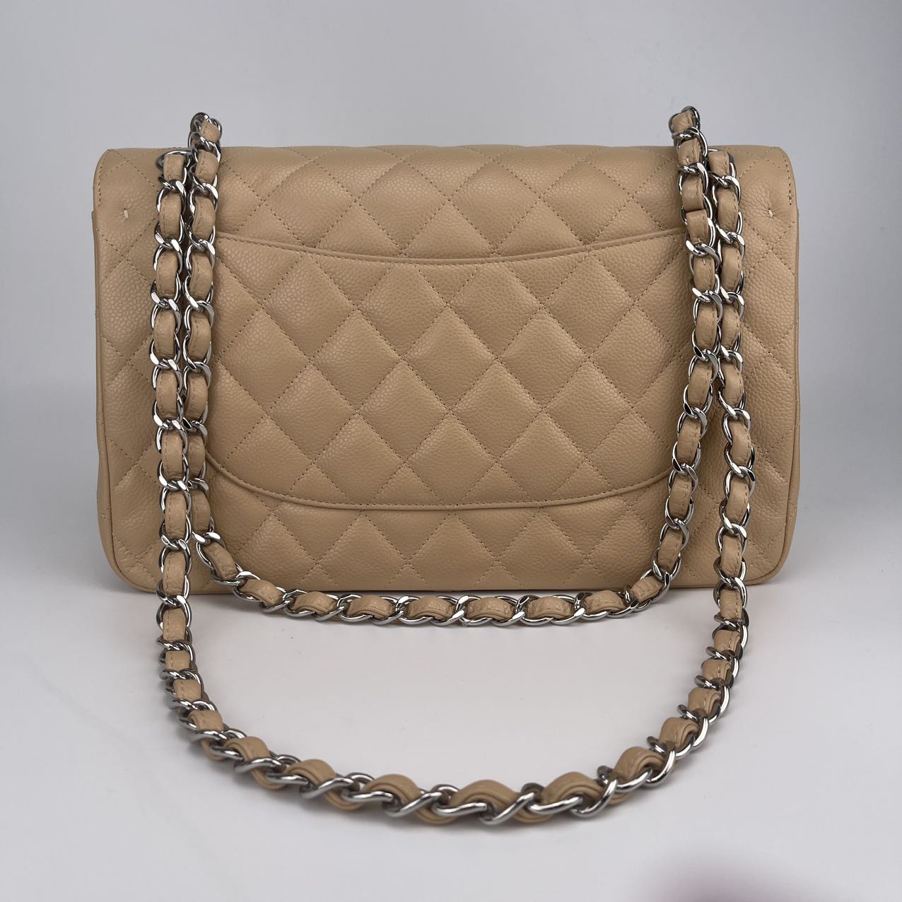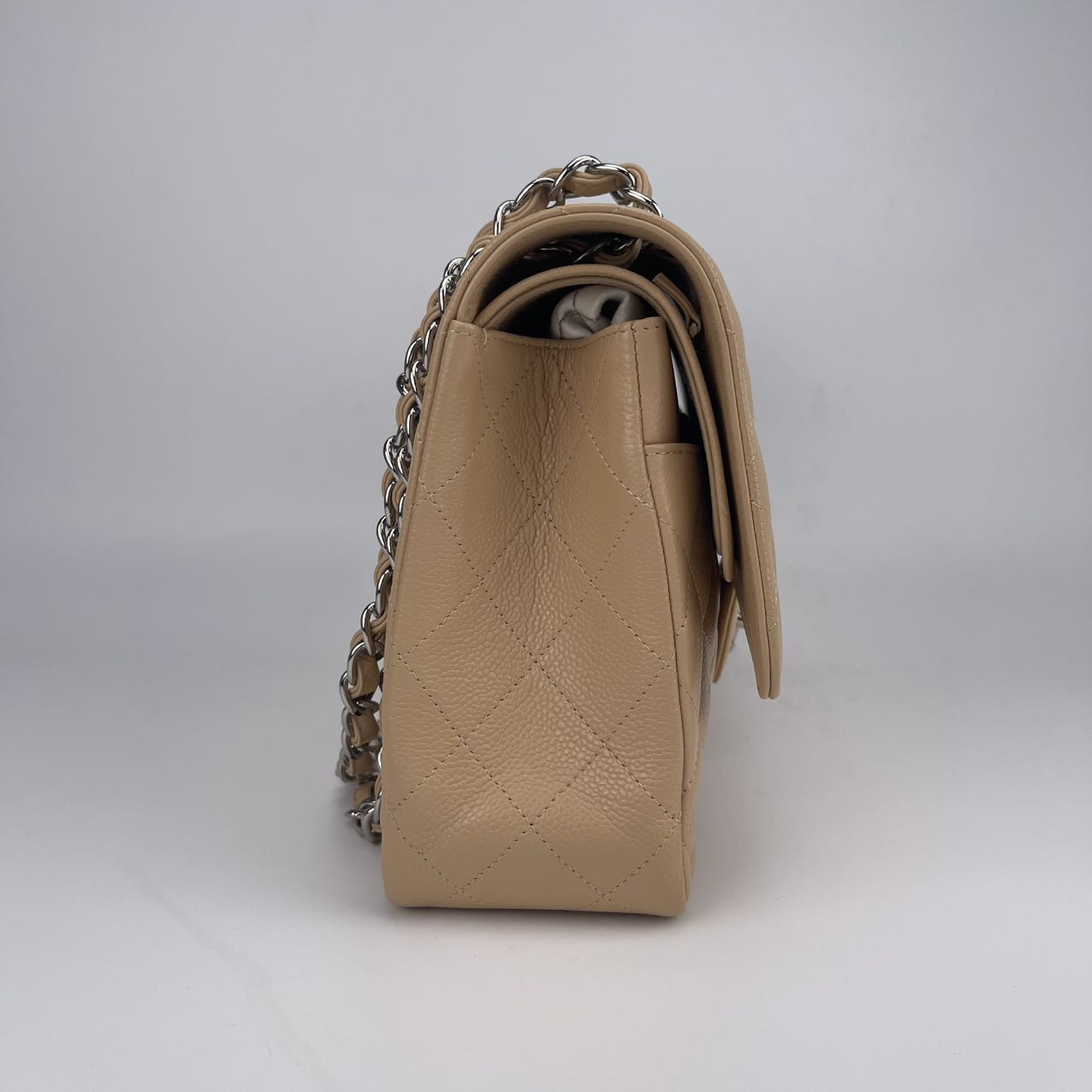CHANEL Classic Double Flap Jumbo in Beige Caviar Leather [Used]