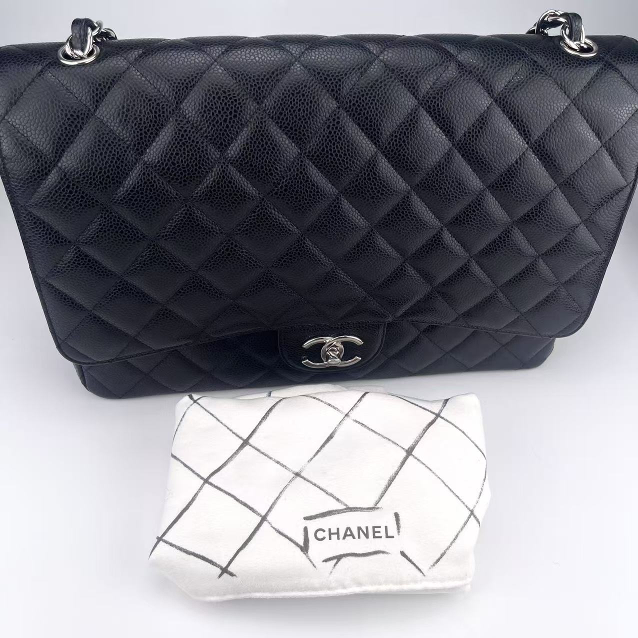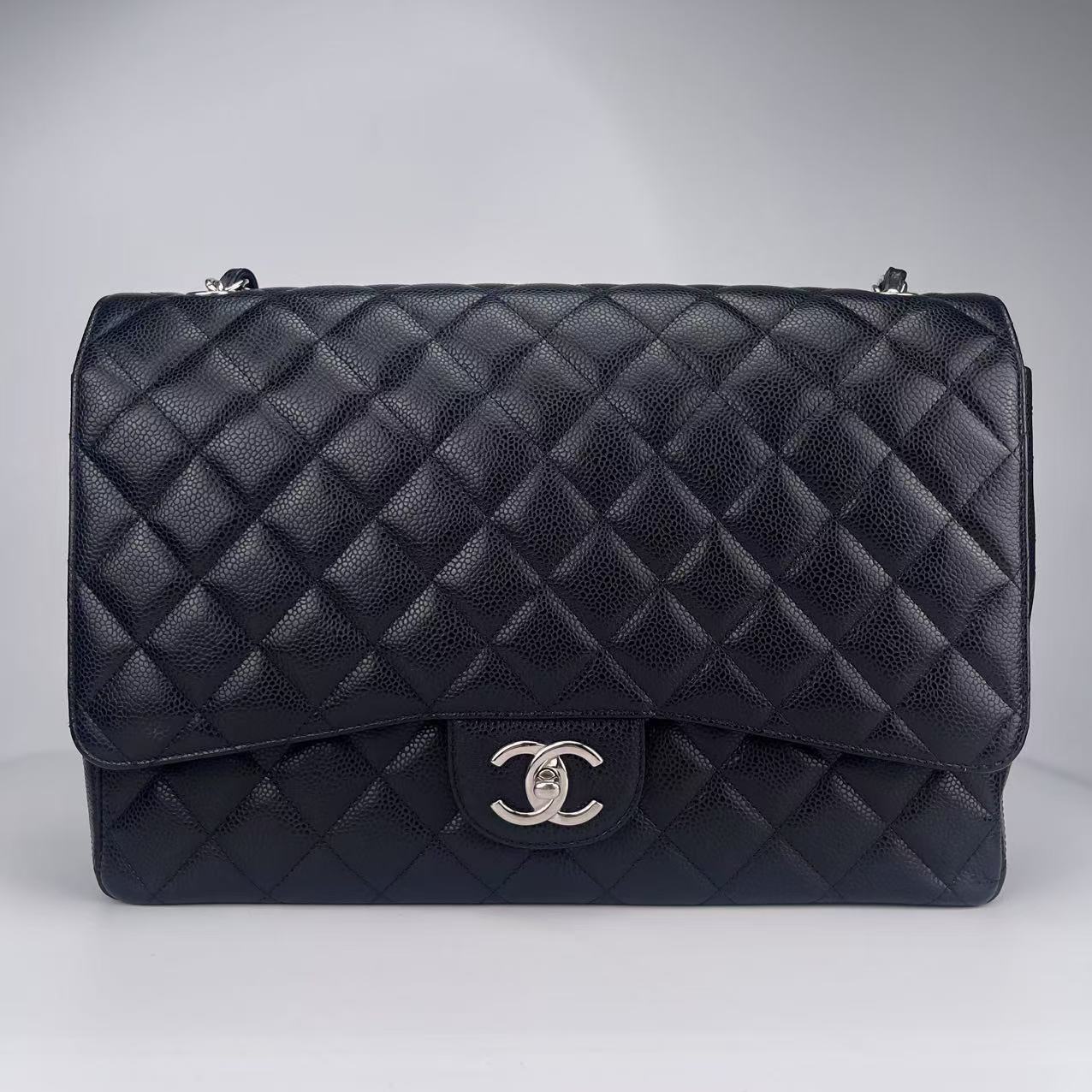 Name: Chanel Classic Double Flap Maxi Black Silver Caviar Skin