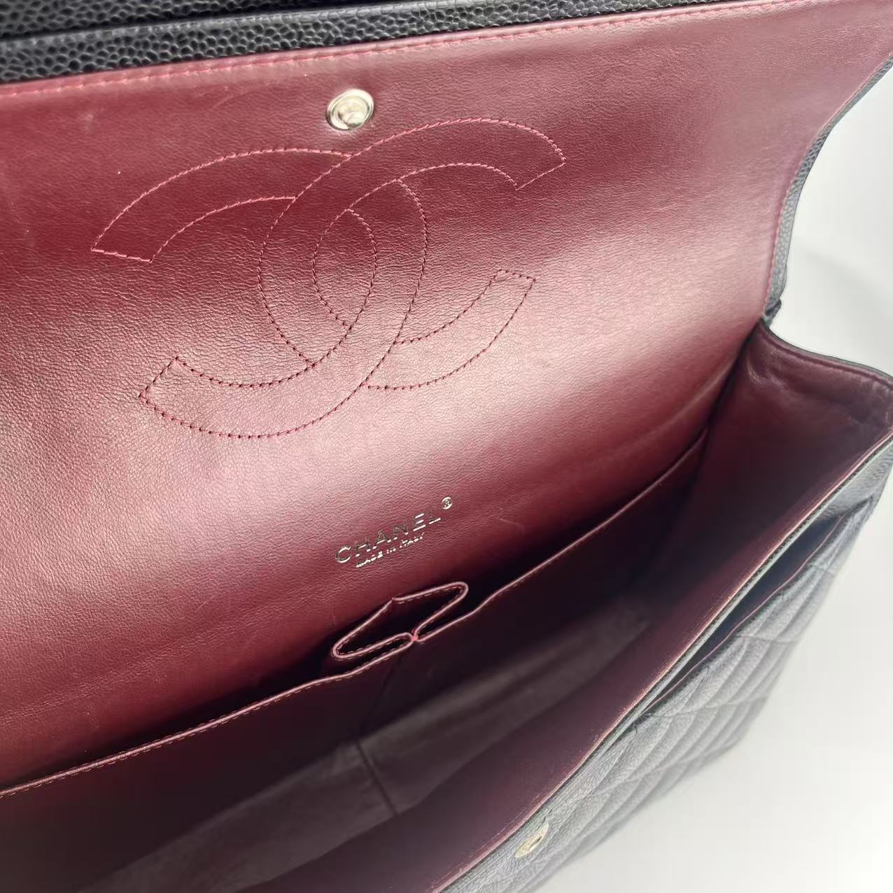 Chanel Classic Double Flap Maxi Black Silver Caviar Skin[used]