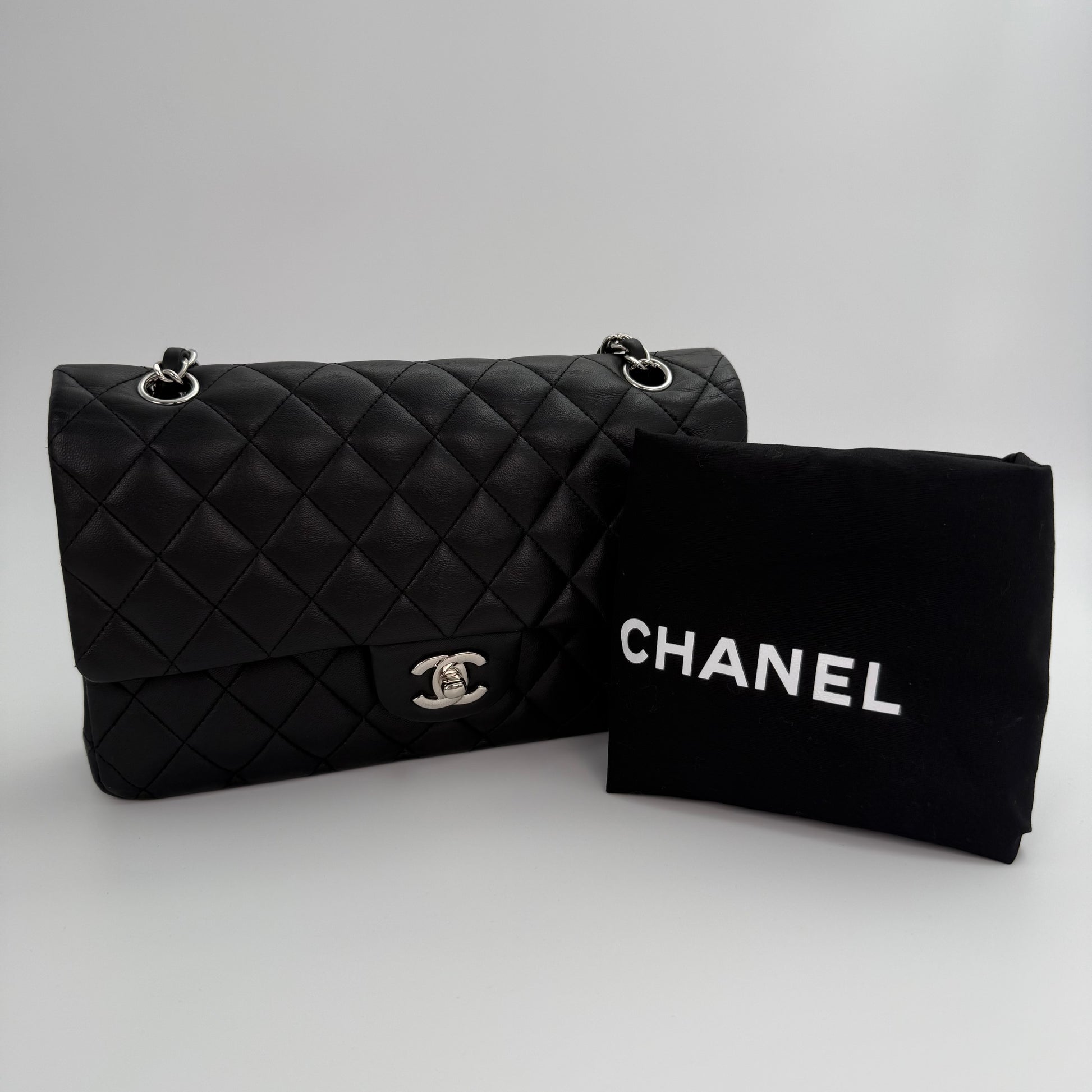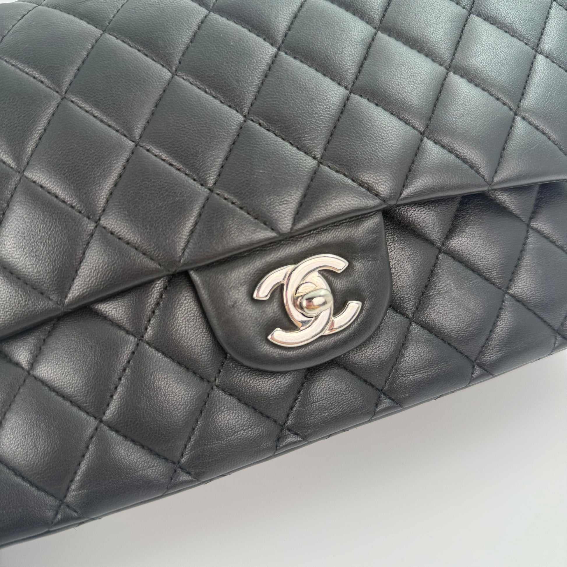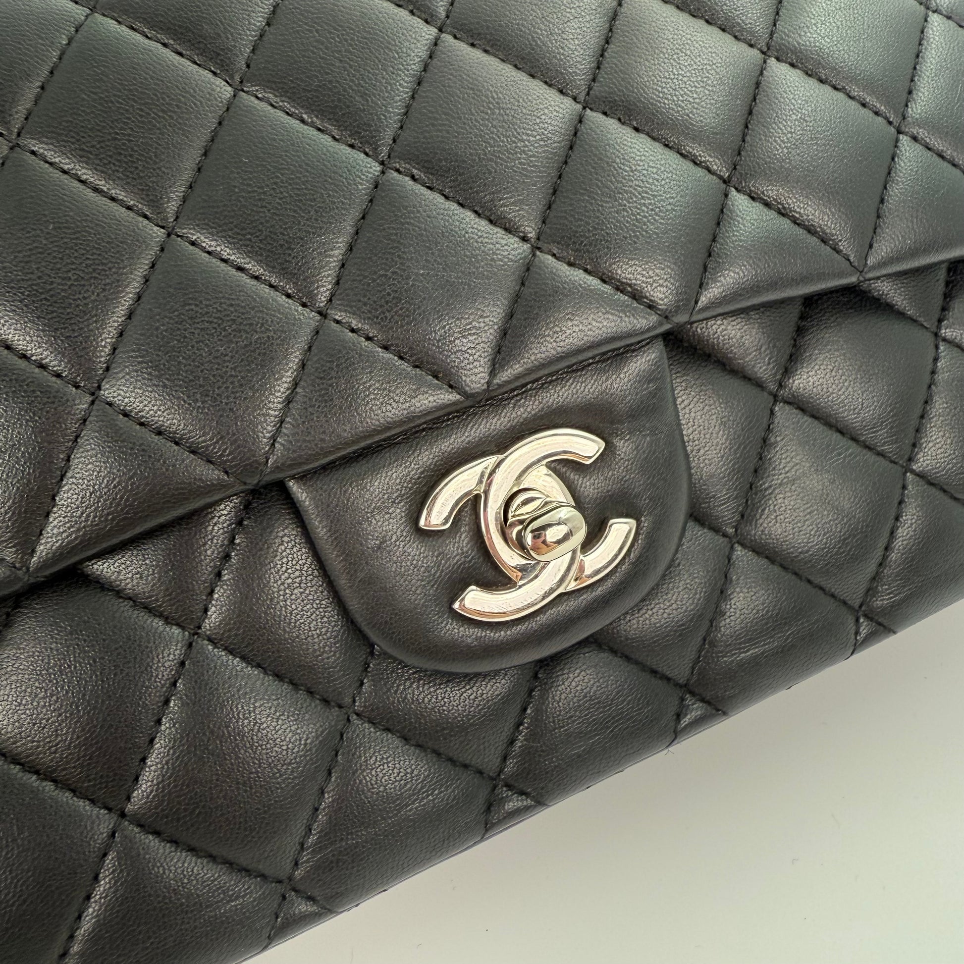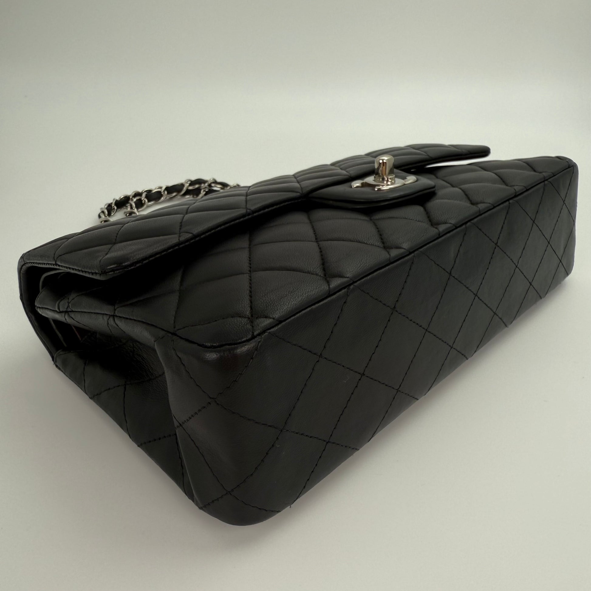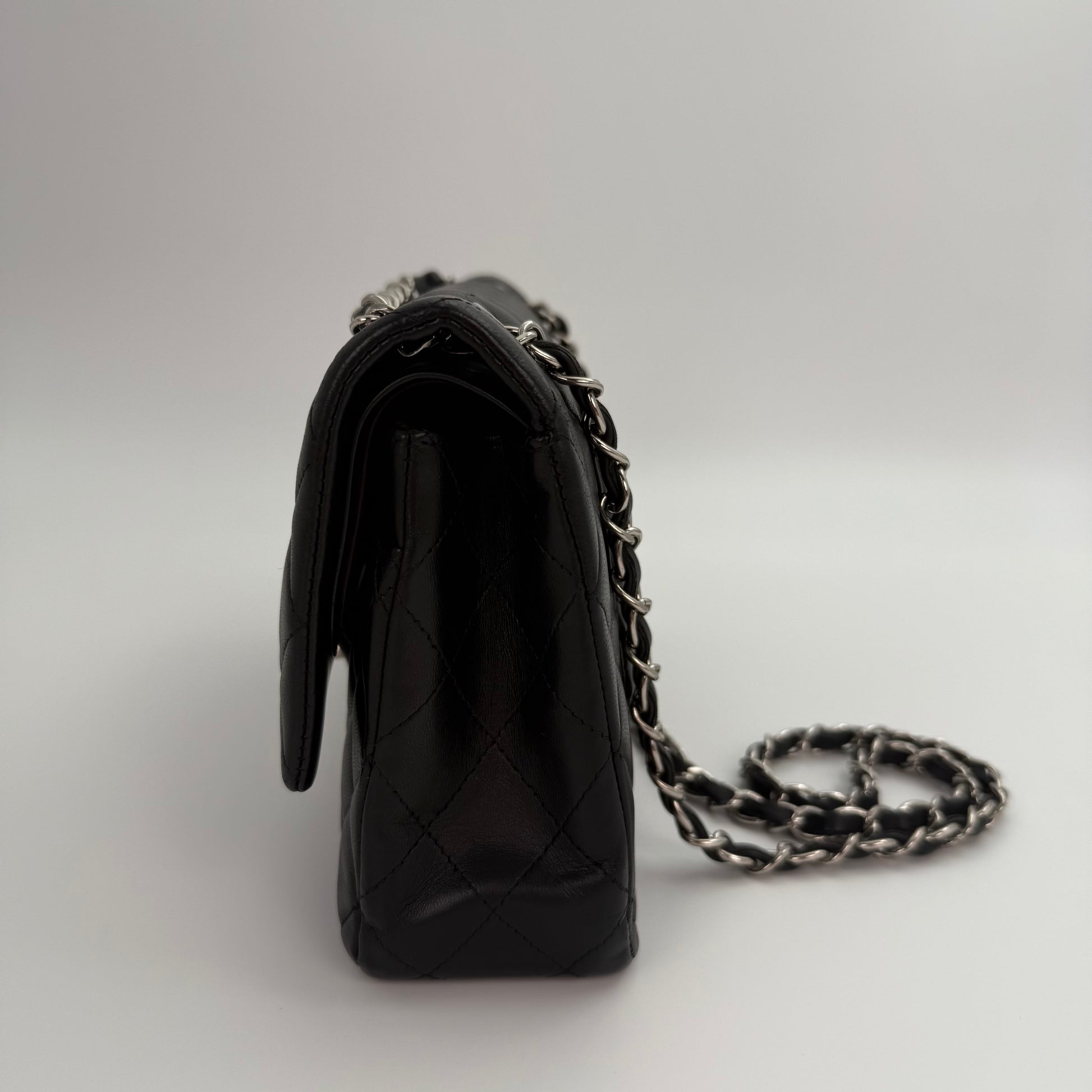 Chanel Classic Flap Bag Black Lambskin with Silver-Tone Hardware – 25cm [Used]