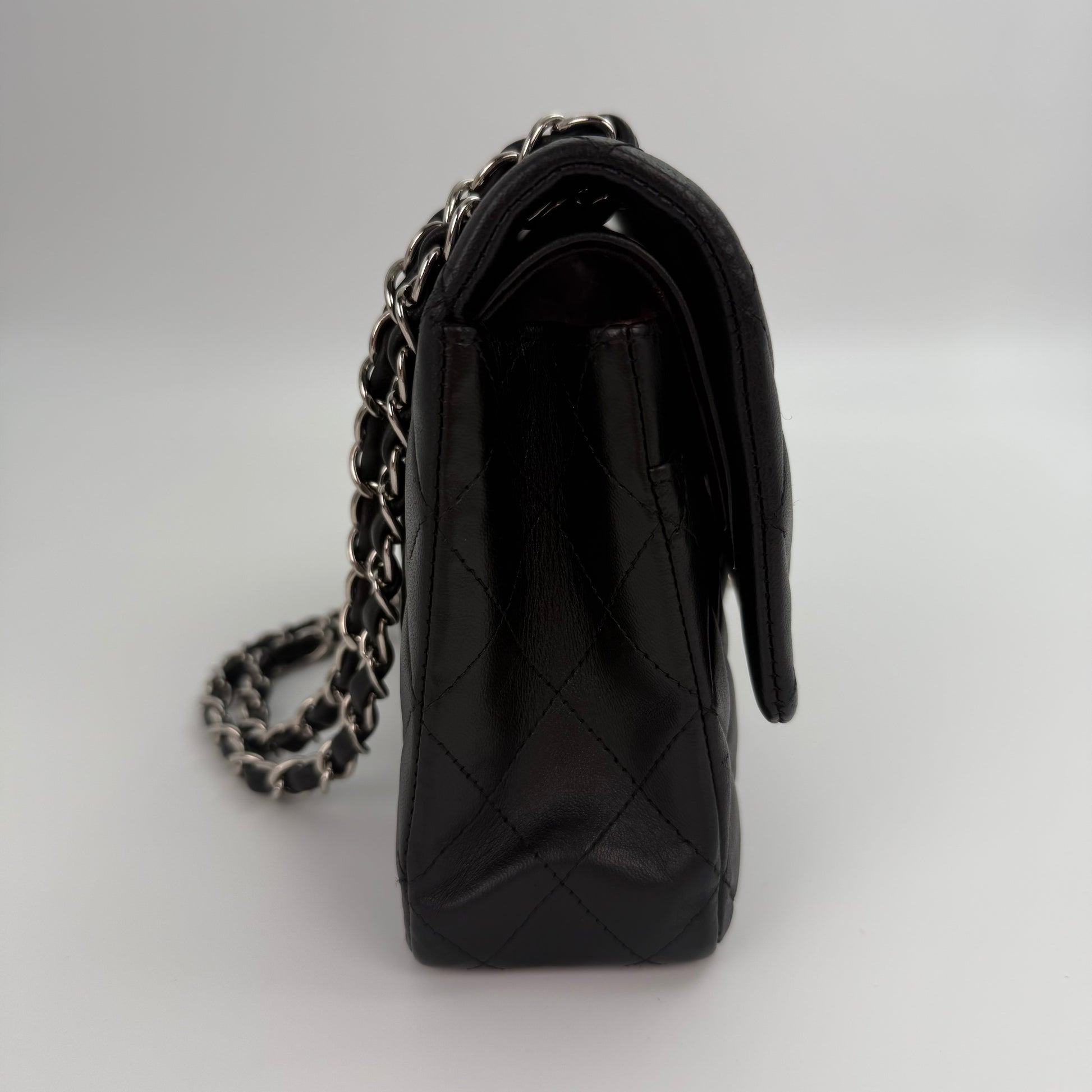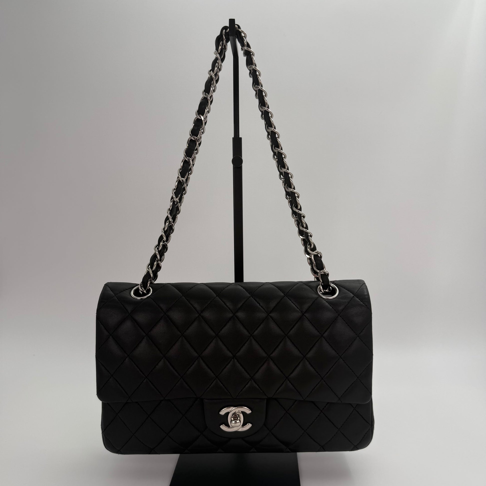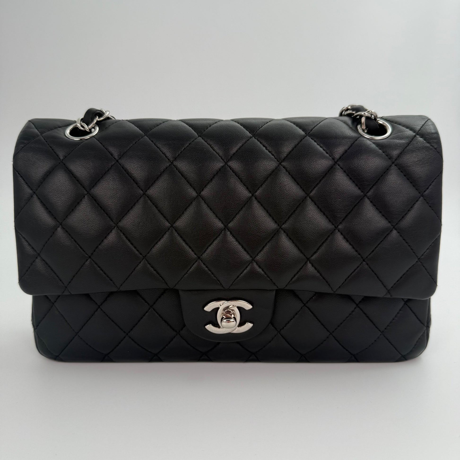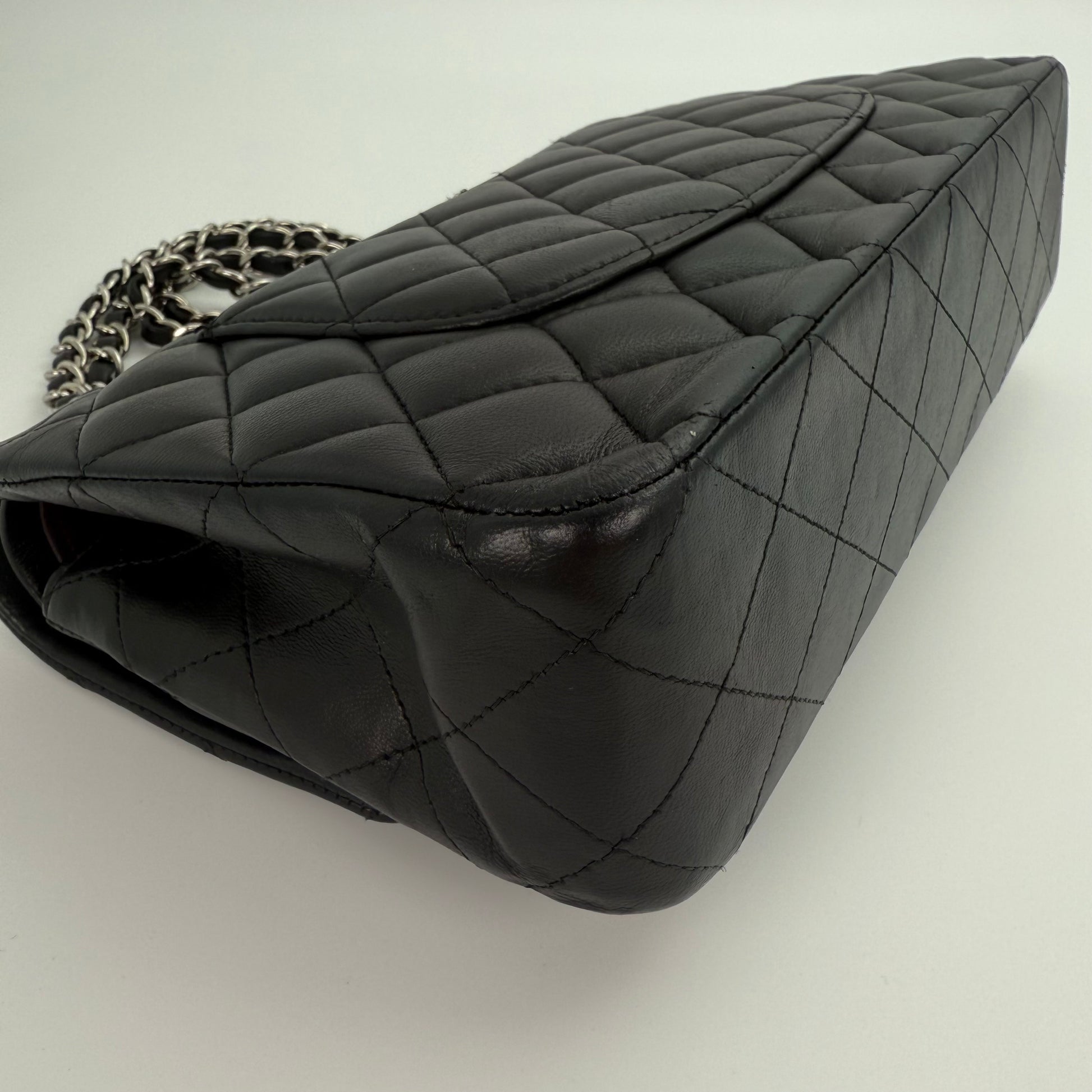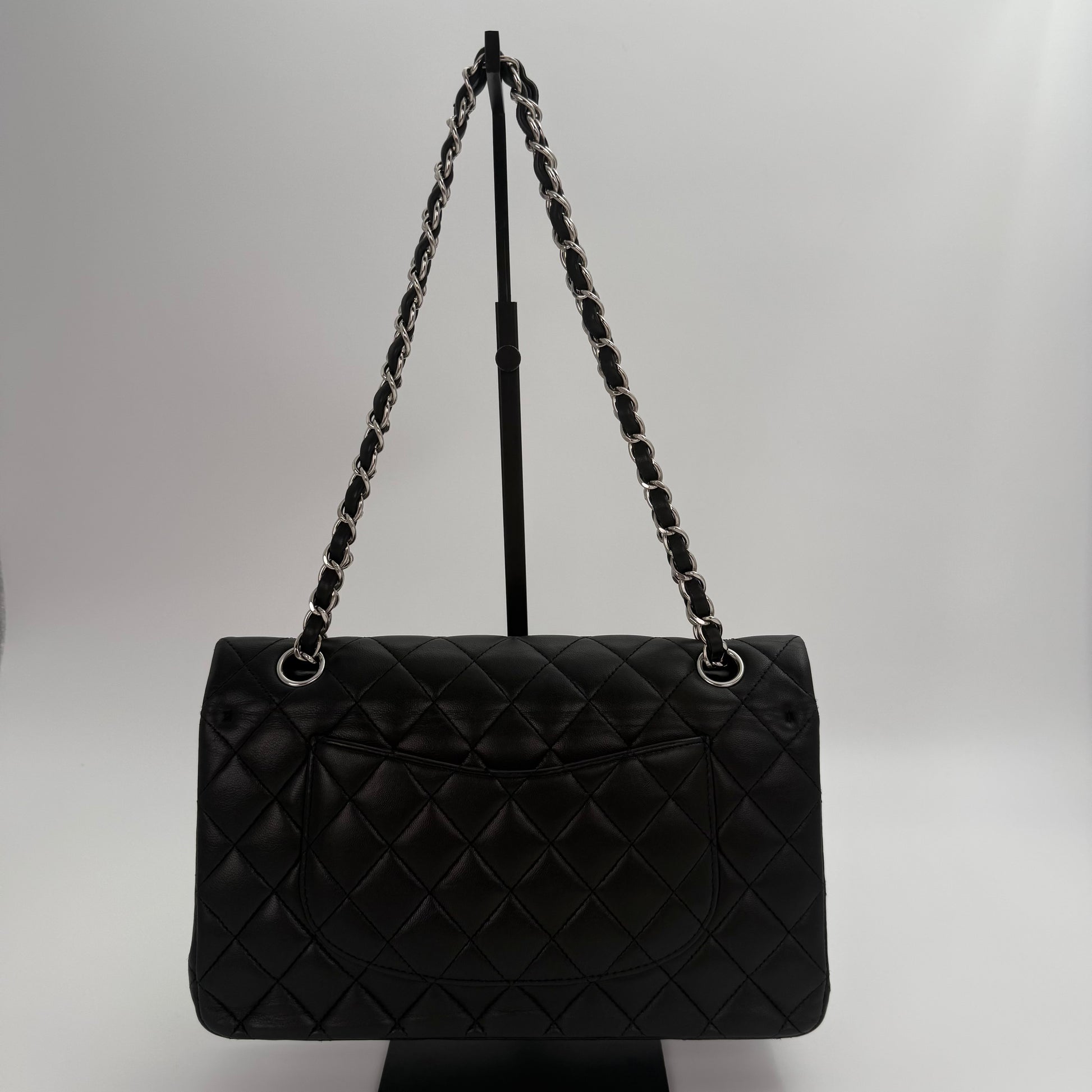 Chanel Classic Flap Bag Black Lambskin with Silver-Tone Hardware – 25cm [Used]