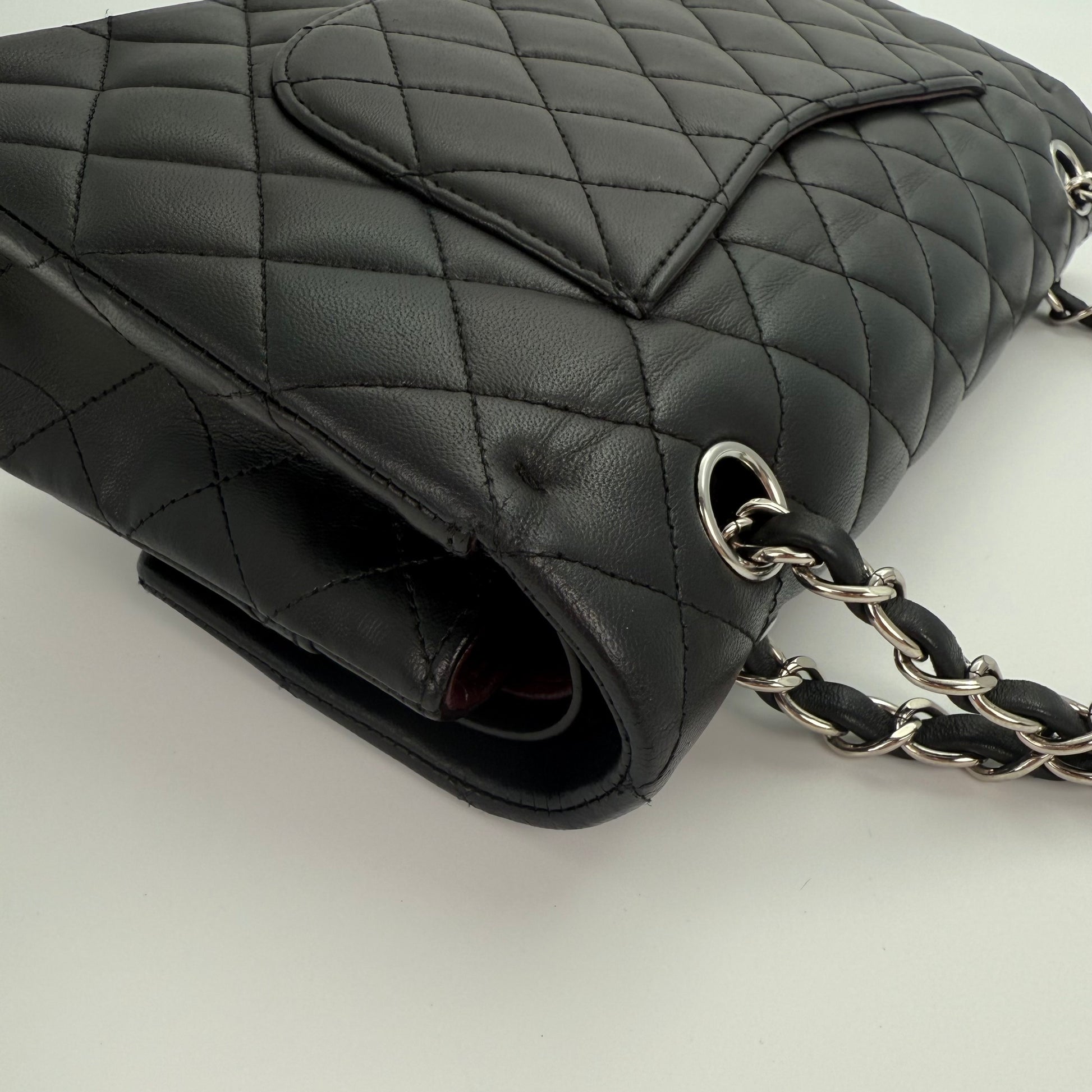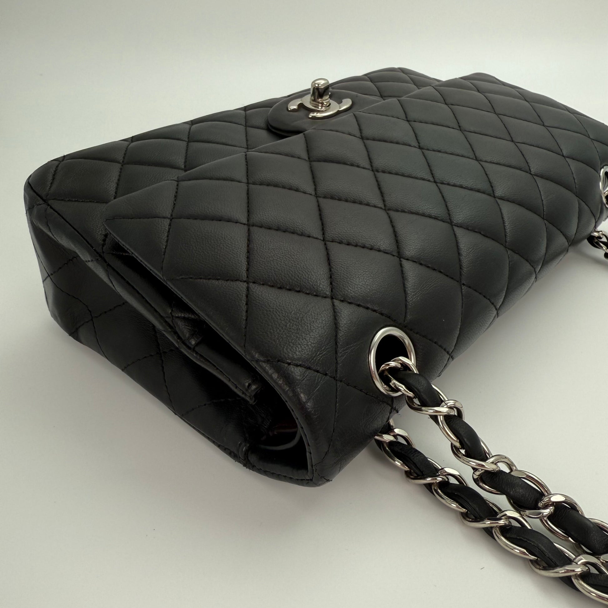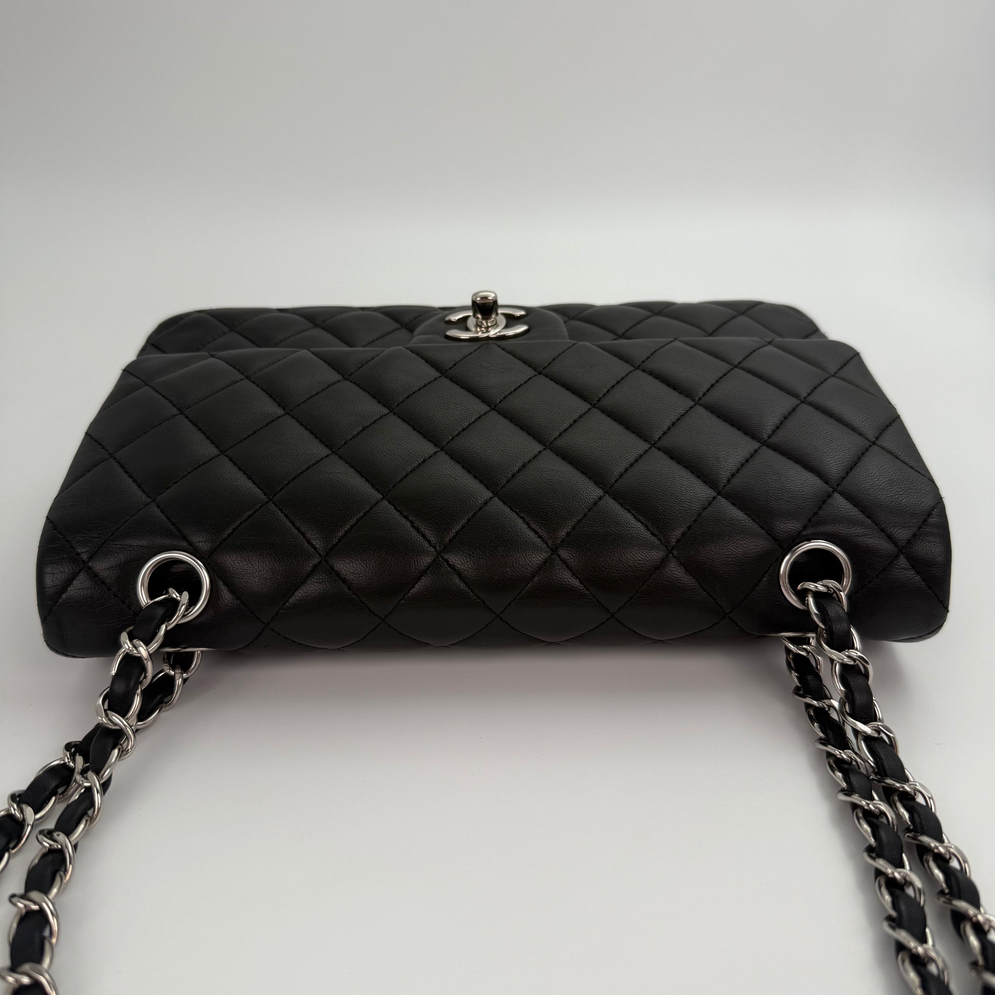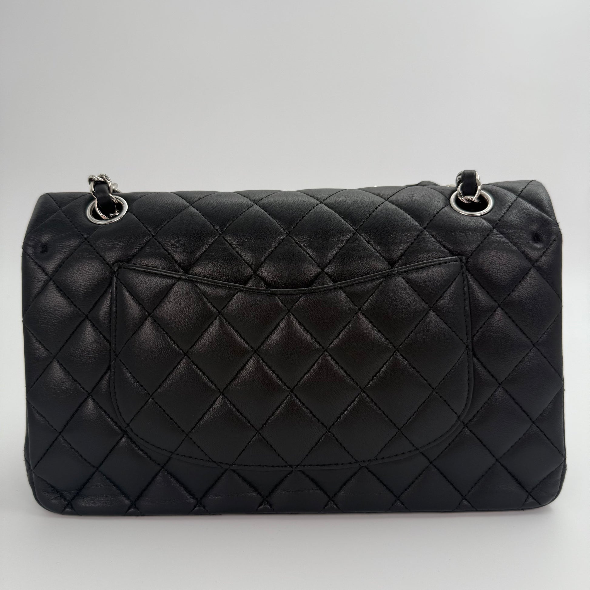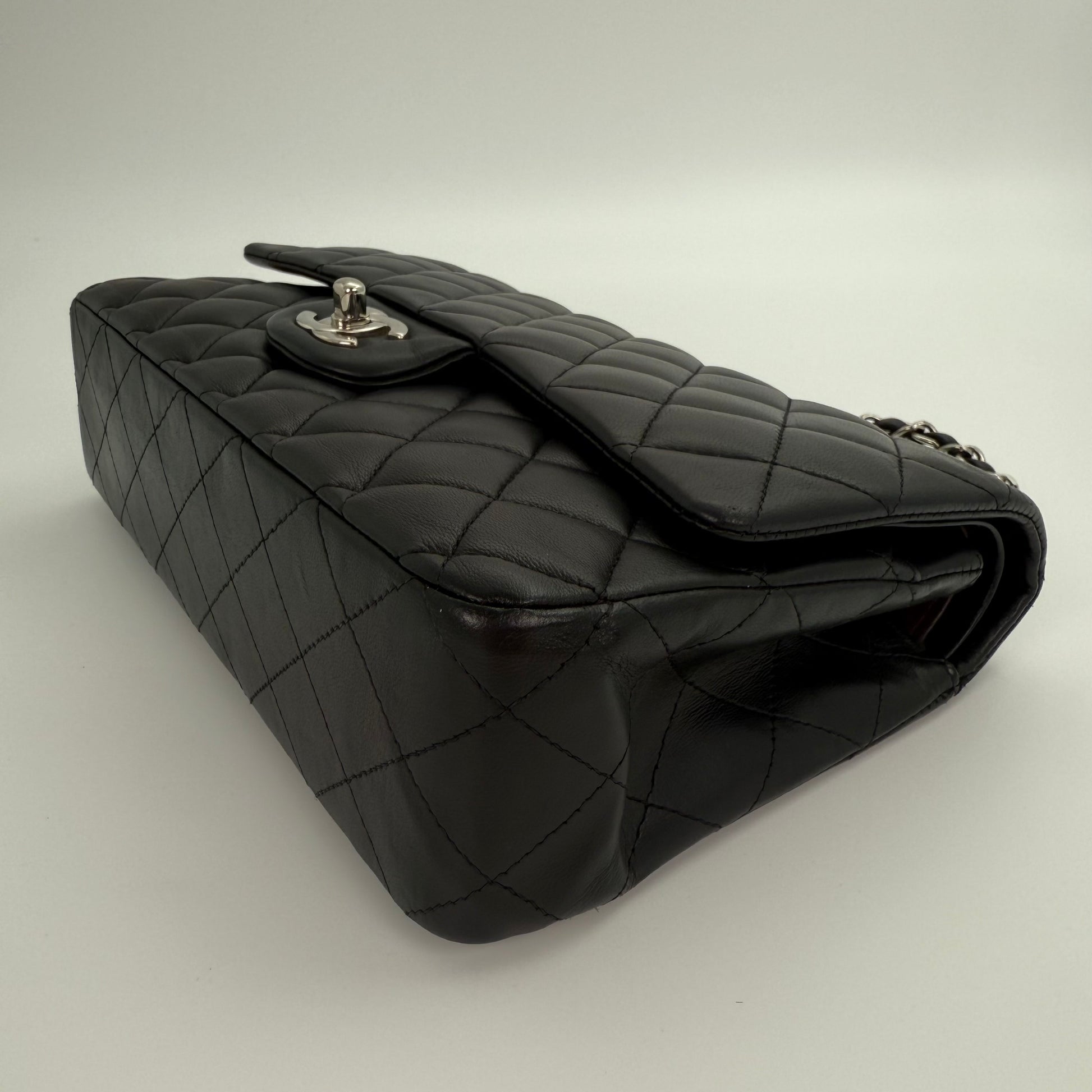Chanel Classic Flap Bag Black Lambskin with Silver-Tone Hardware – 25cm [Used]