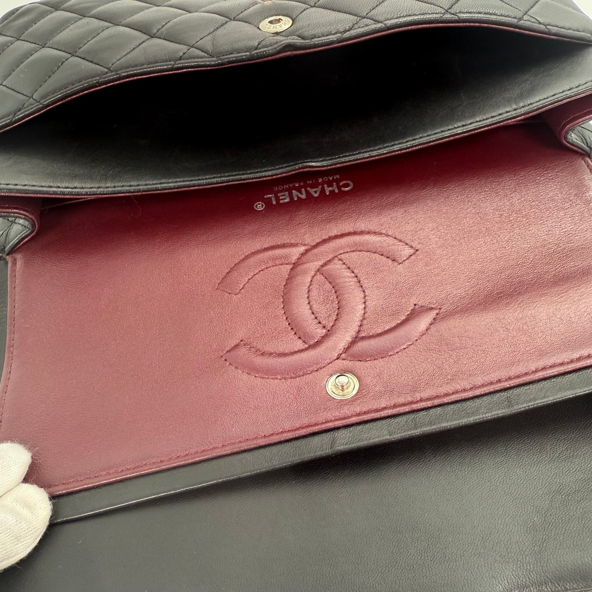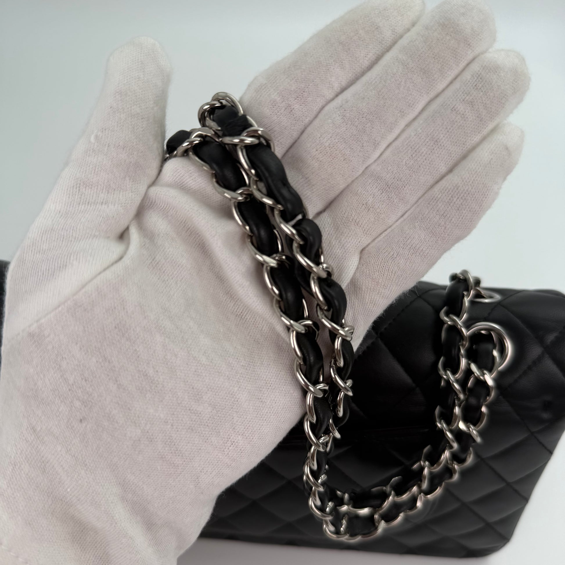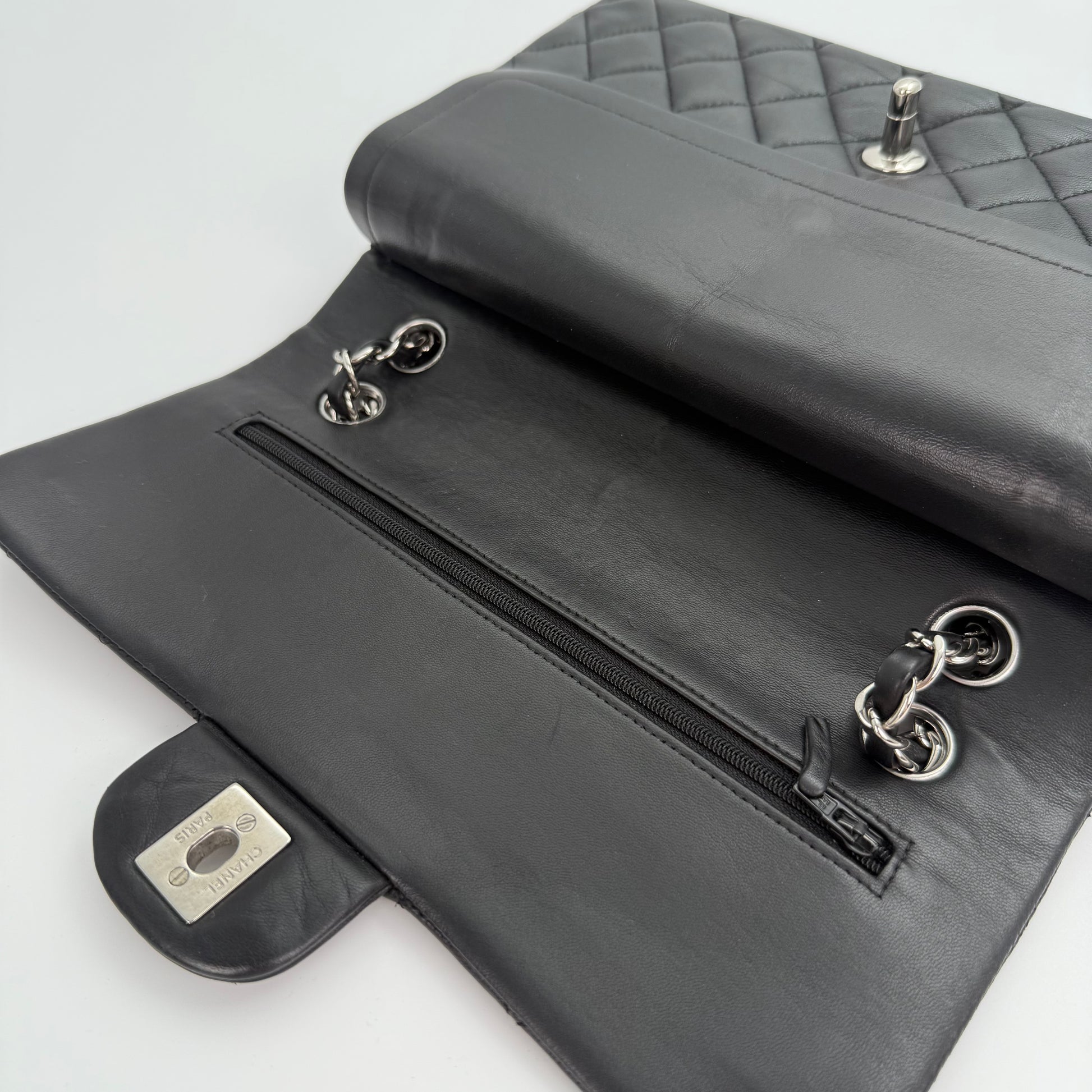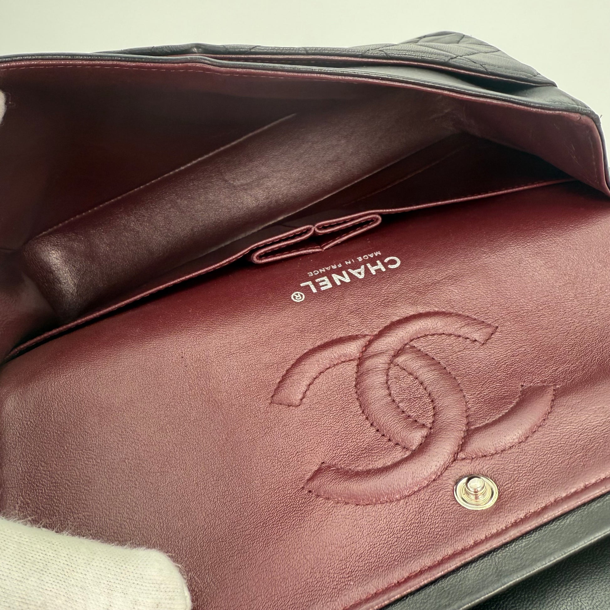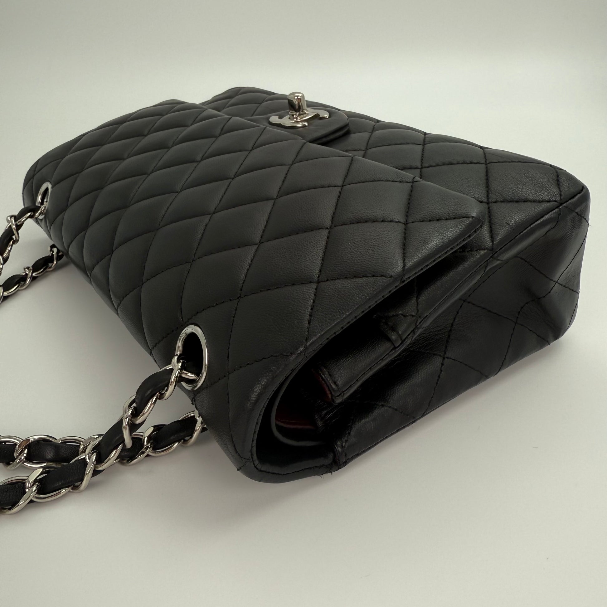 Chanel Classic Flap Bag Black Lambskin with Silver-Tone Hardware – 25cm [Used]