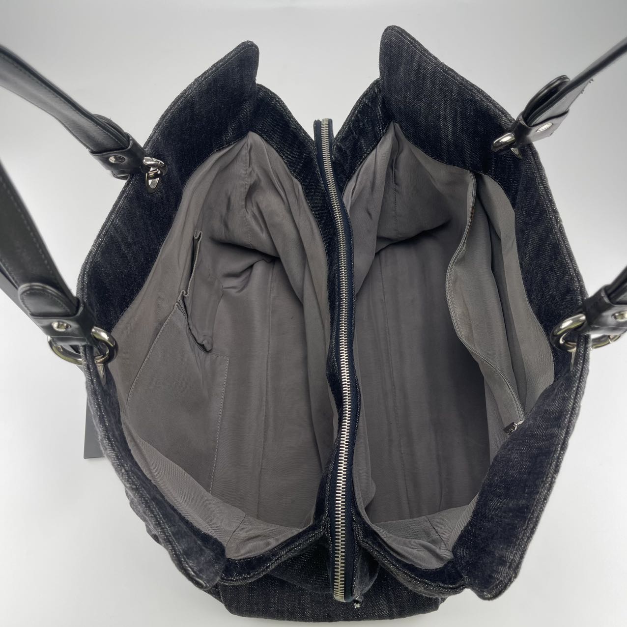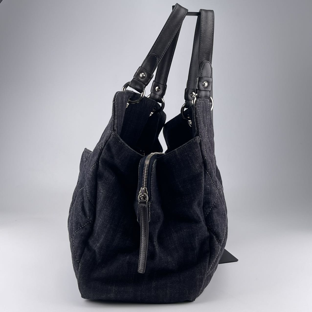 Hardware: Silver-tone hardware, complementing the cool denim tones and adding a clean, modern finish.