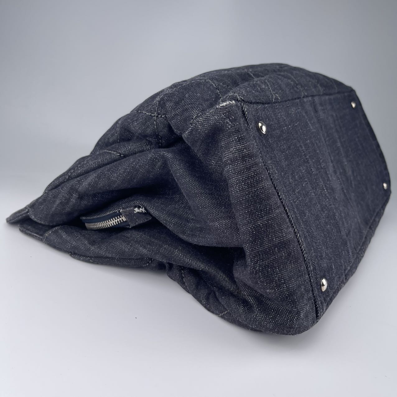 Condition: Excellent pre-owned condition. Denim fabric is clean and maintains its shape well, with only minimal signs of gentle use. Hardware is shiny and intact. Interior is tidy and well-kept.
