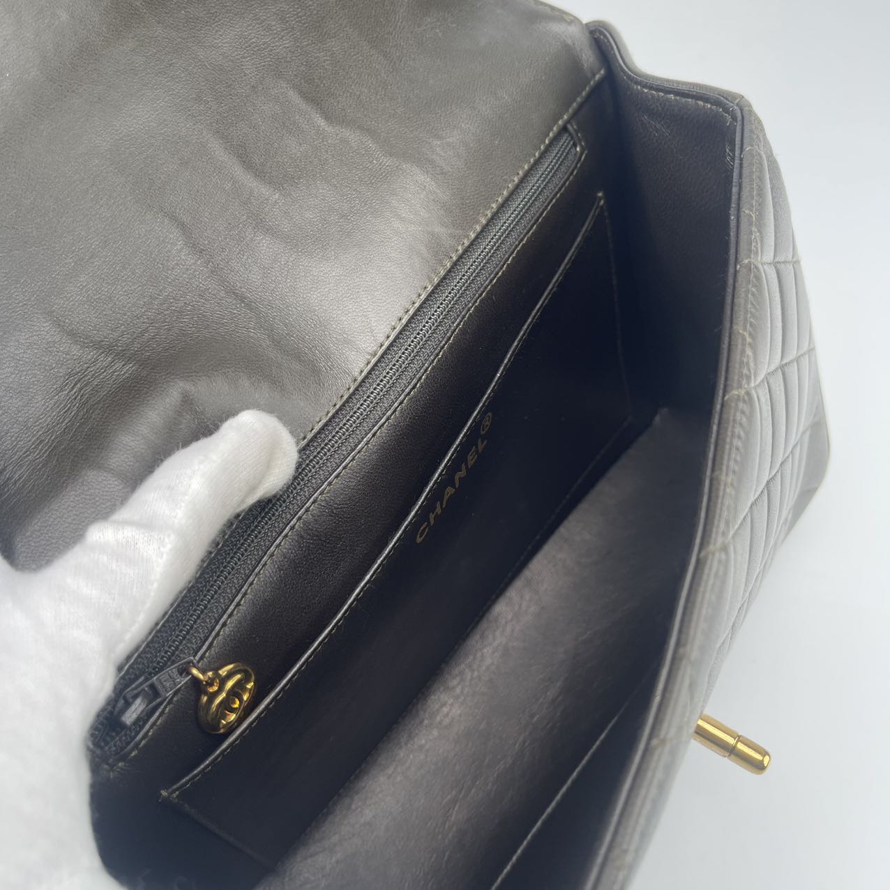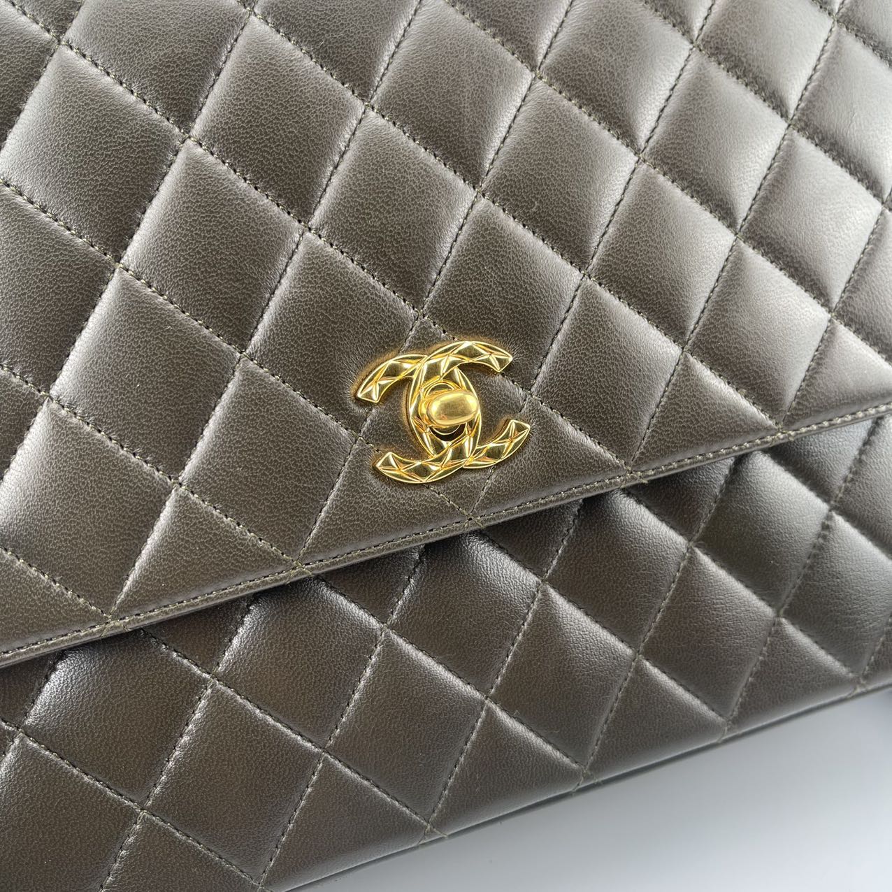 Hardware: Elegant hardware complements the rich dark green lambskin, creating a sophisticated and understated luxury feel.