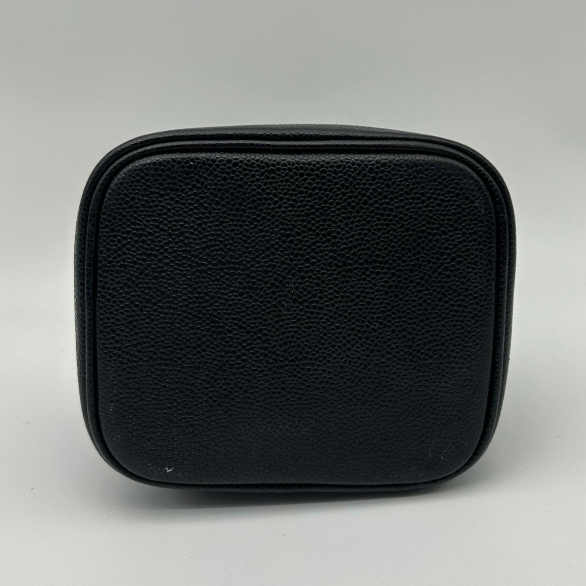 This CHANEL Handheld Vanity Case in black caviar leather with gold-tone hardware is a charming and collectible vintage piece from the early 2000s. Crafted from CHANEL’s signature caviar leather, it is known for its durability, structured feel, and refined pebbled texture, offering both elegance and practicality.