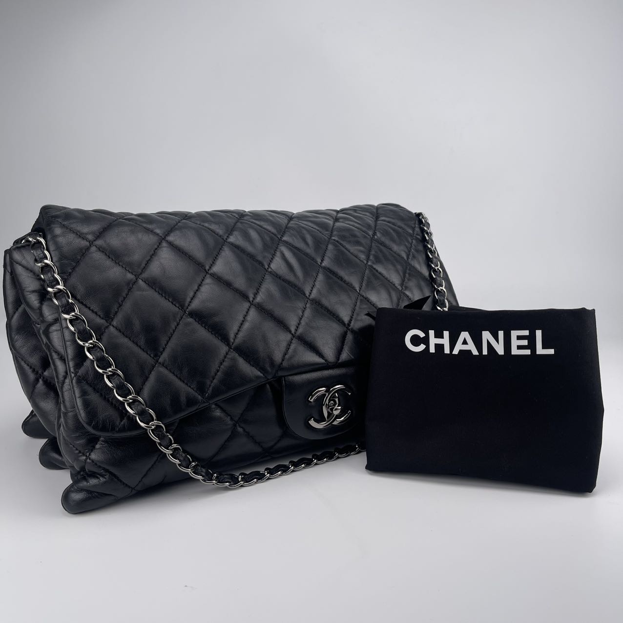 Name: Chanel Lambskin Puffy Accordion Travel Bag Black Silver Large