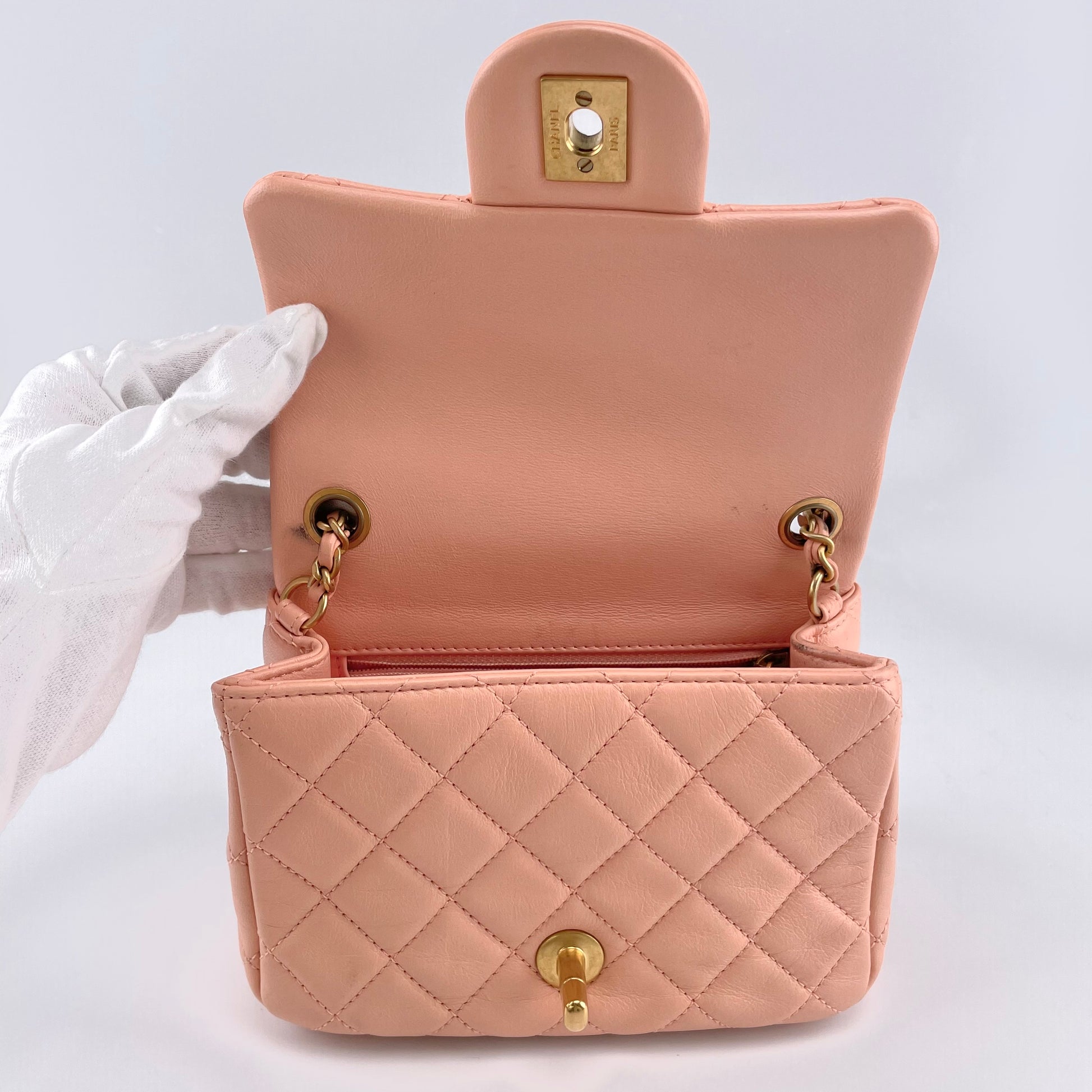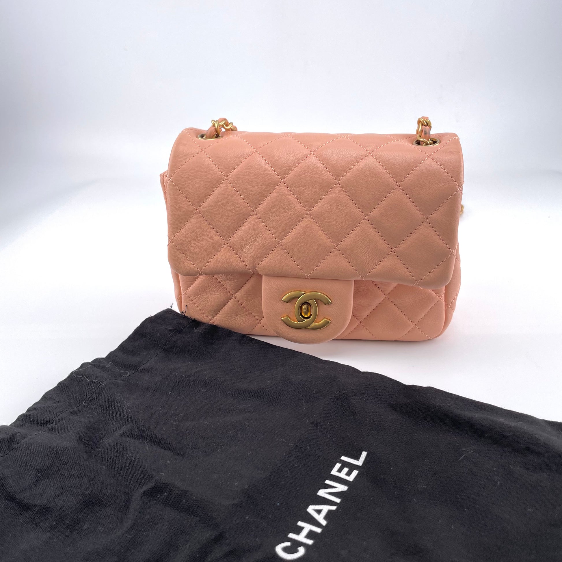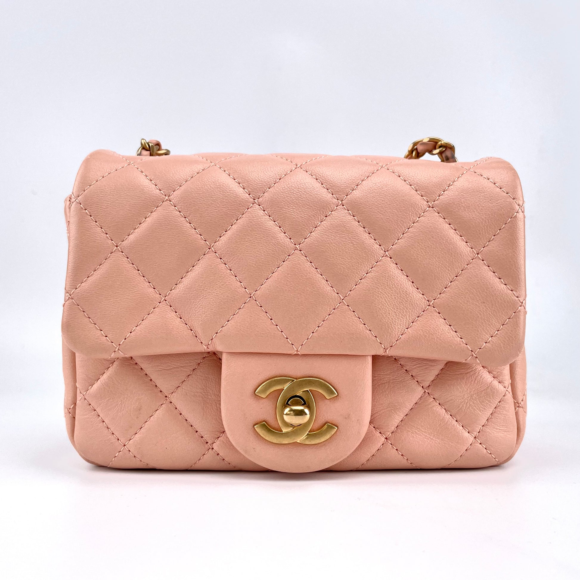 Chanel Pink Lambskin Square Flap Shoulderbag [Used]