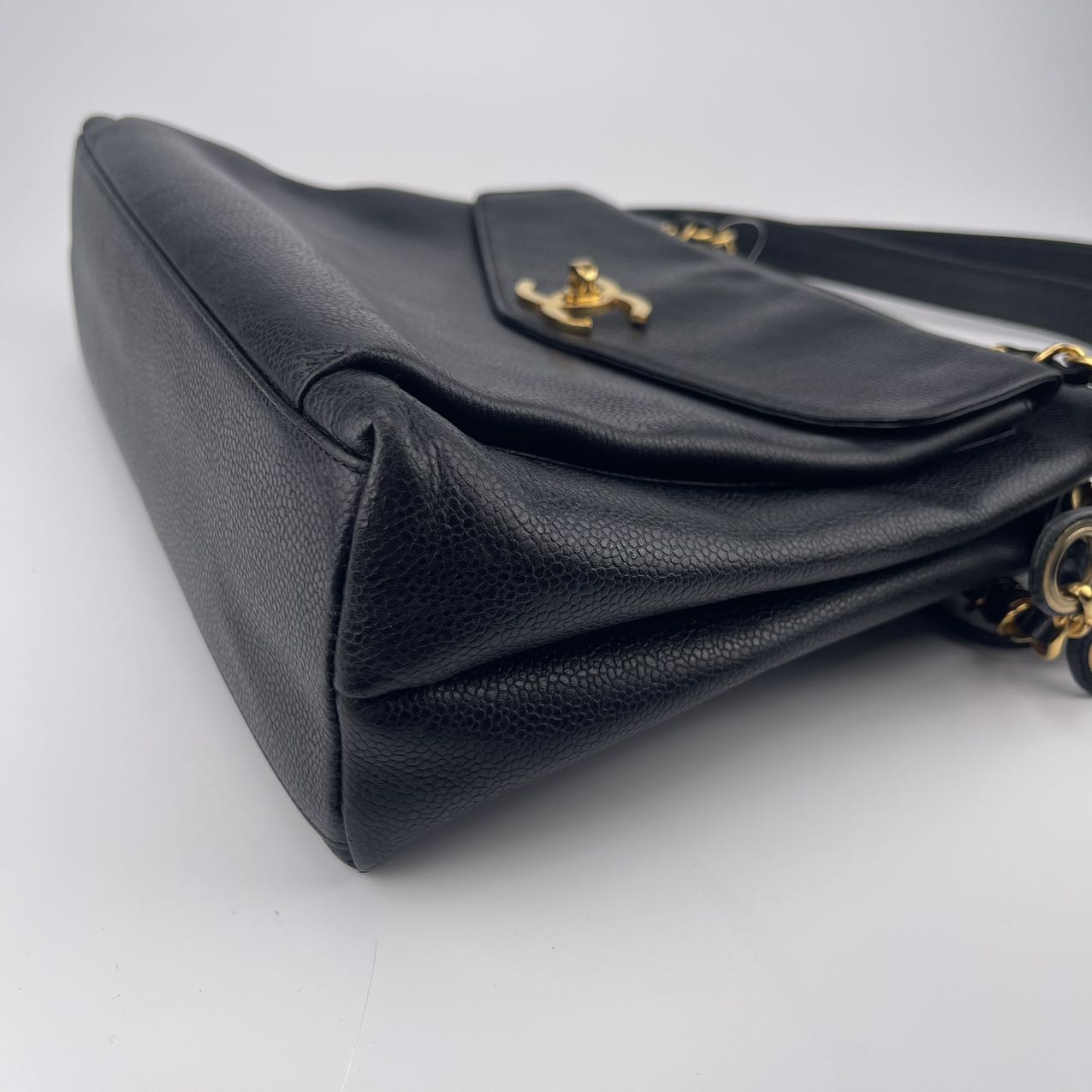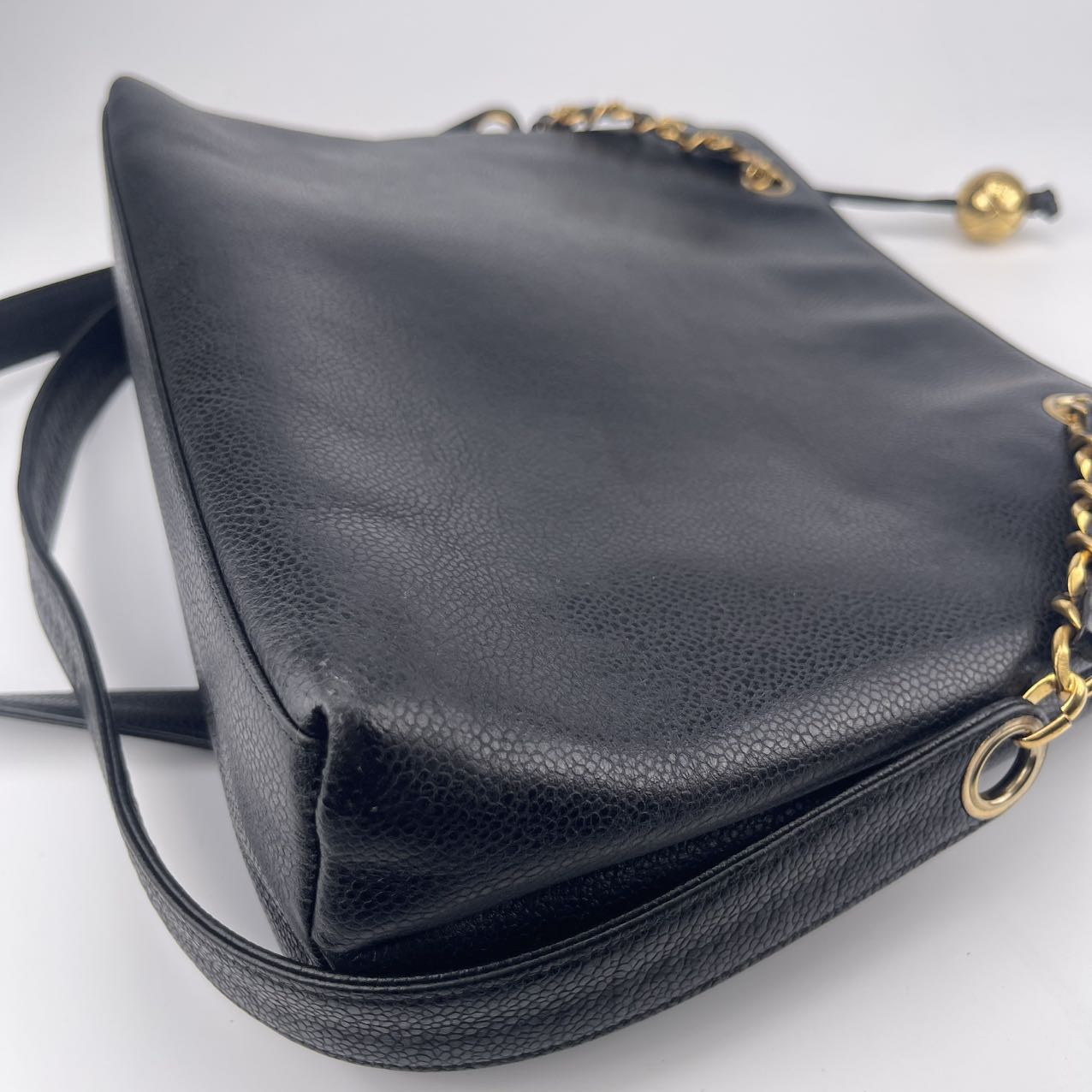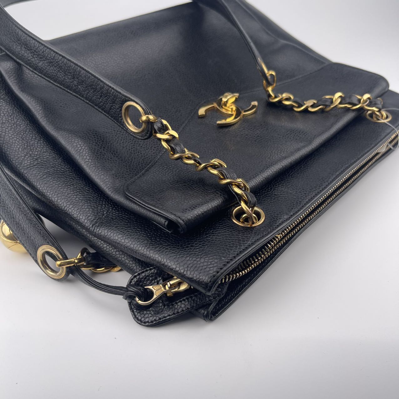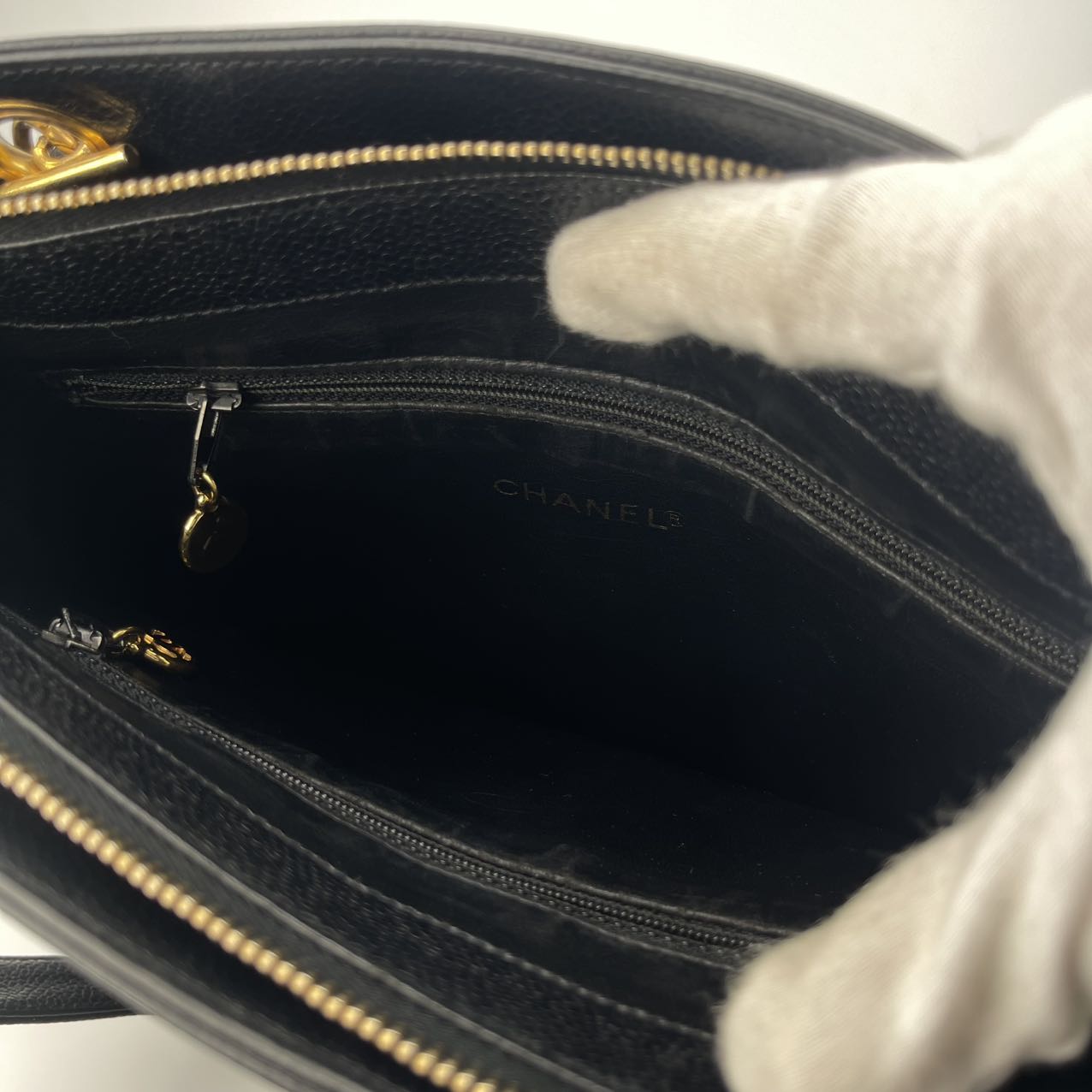 Hardware: Gold-tone hardware, including the signature Chanel gold ball detail, providing a warm and eye-catching contrast against the deep black leather.