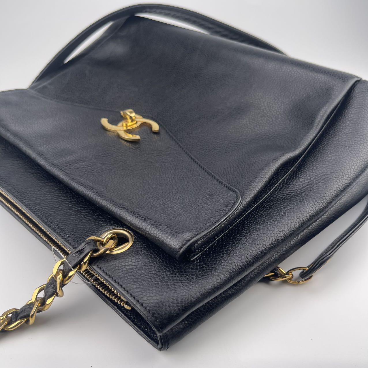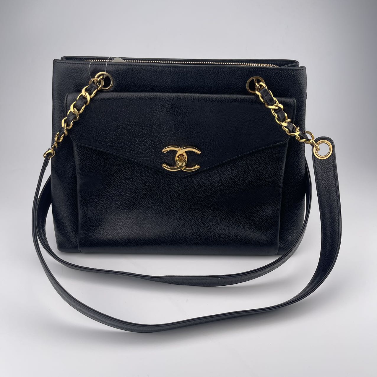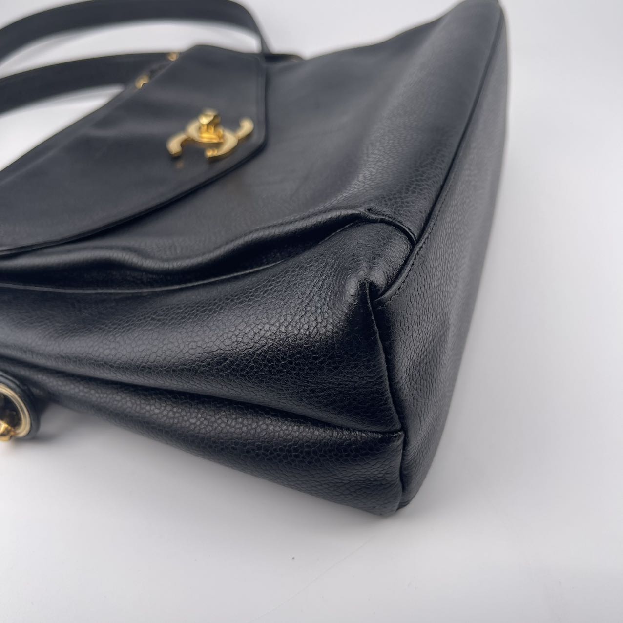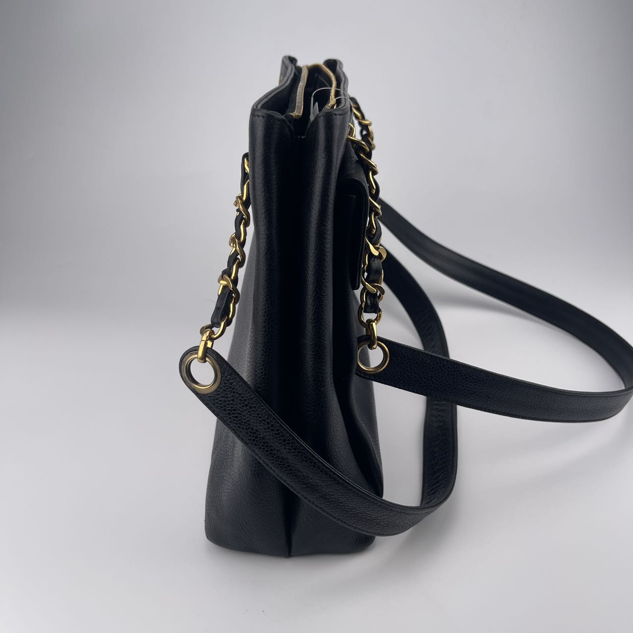 Hardware: Gold-tone hardware, including the signature Chanel gold ball detail, providing a warm and eye-catching contrast against the deep black leather.