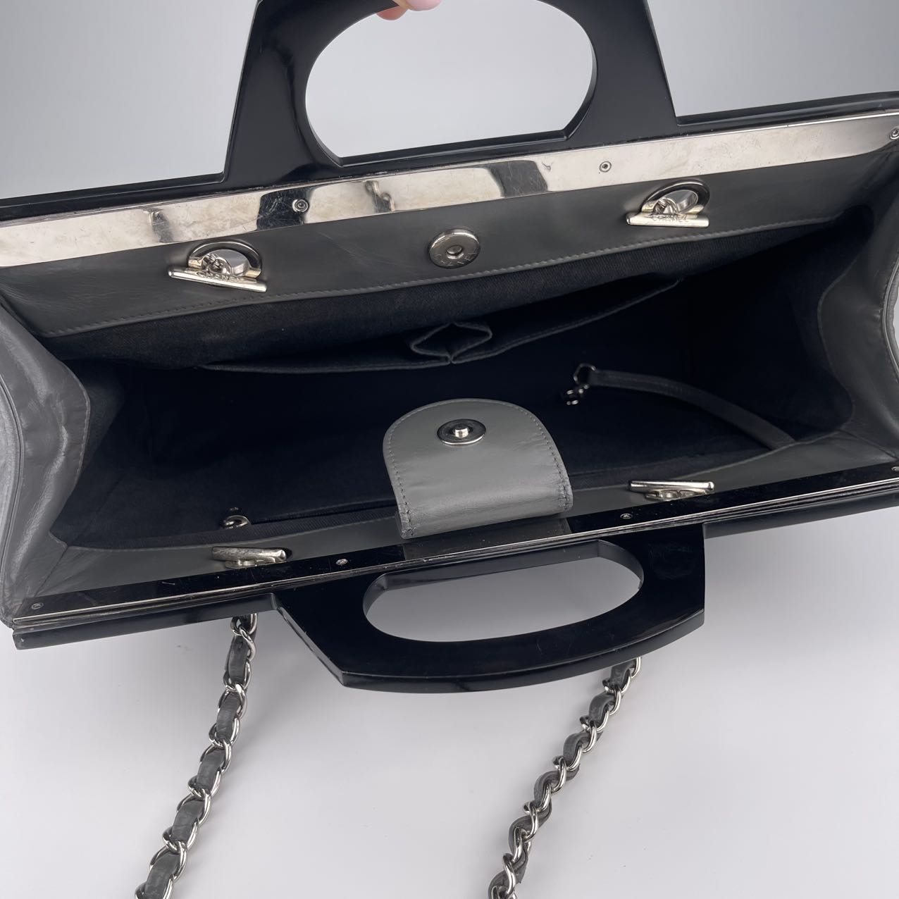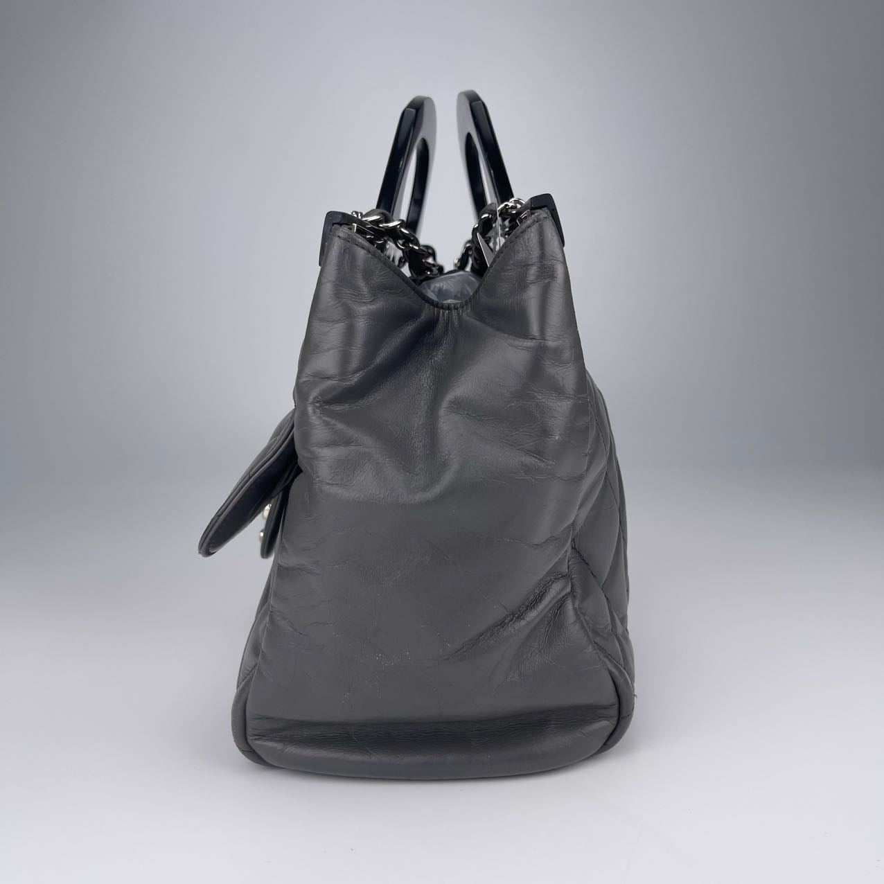 Material: Grained caviar calfskin (cowskin) — a durable, scratch-resistant leather with a structured, luxurious texture. The bag features a rich charcoal gray body with contrasting black accents for a sleek, modern look.