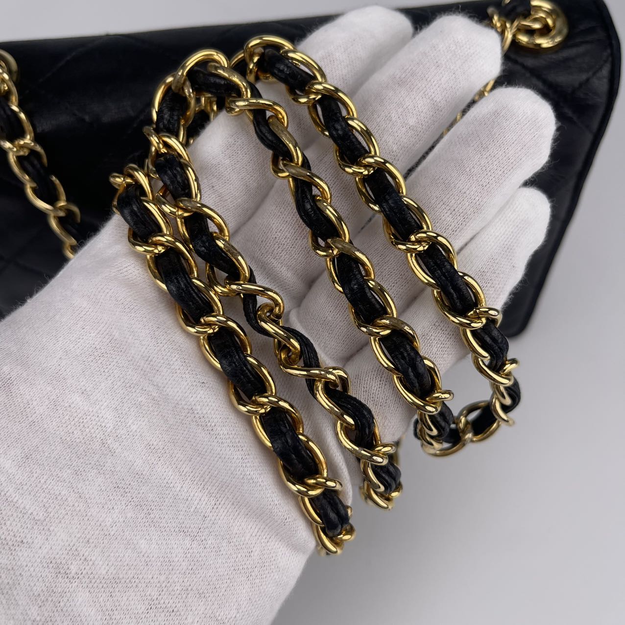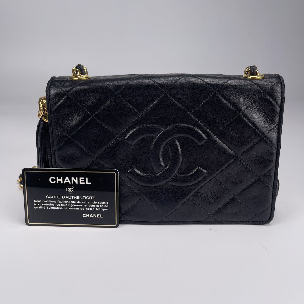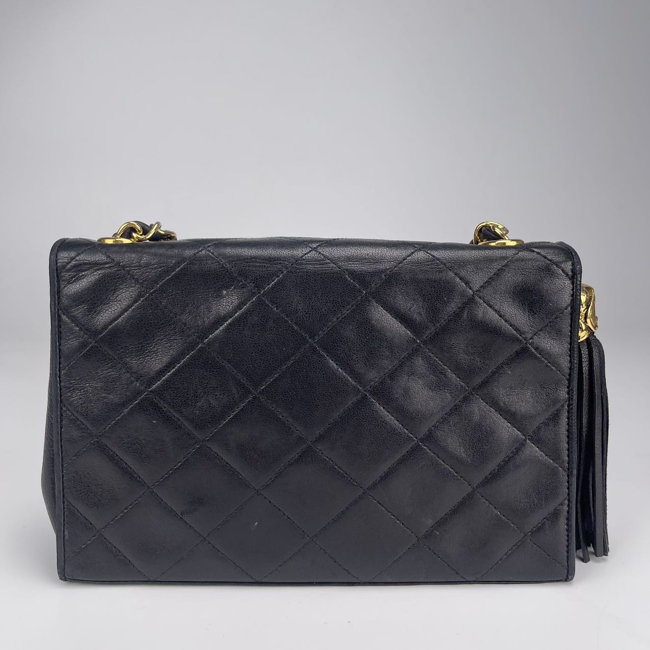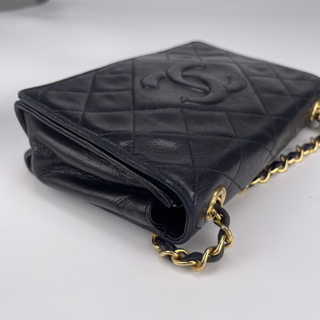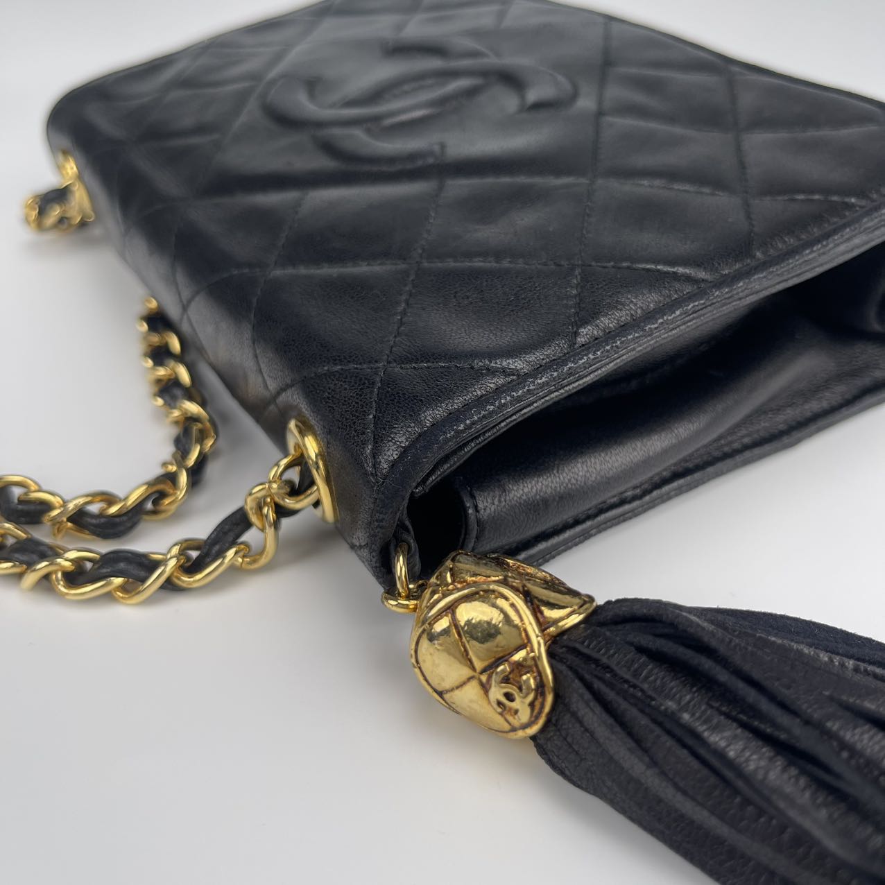 Classic Chanel Matelassé (quilted) chain shoulder bag in sleek black lambskin.