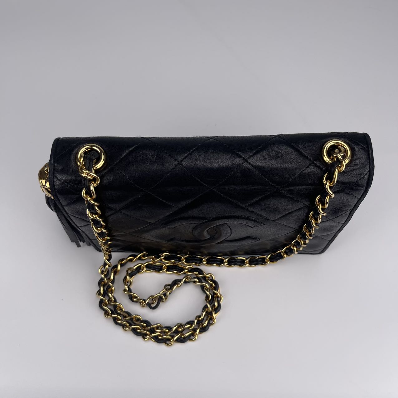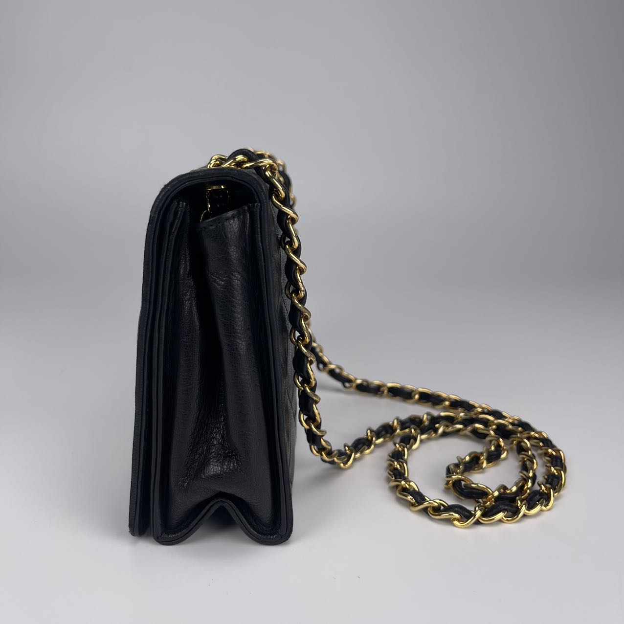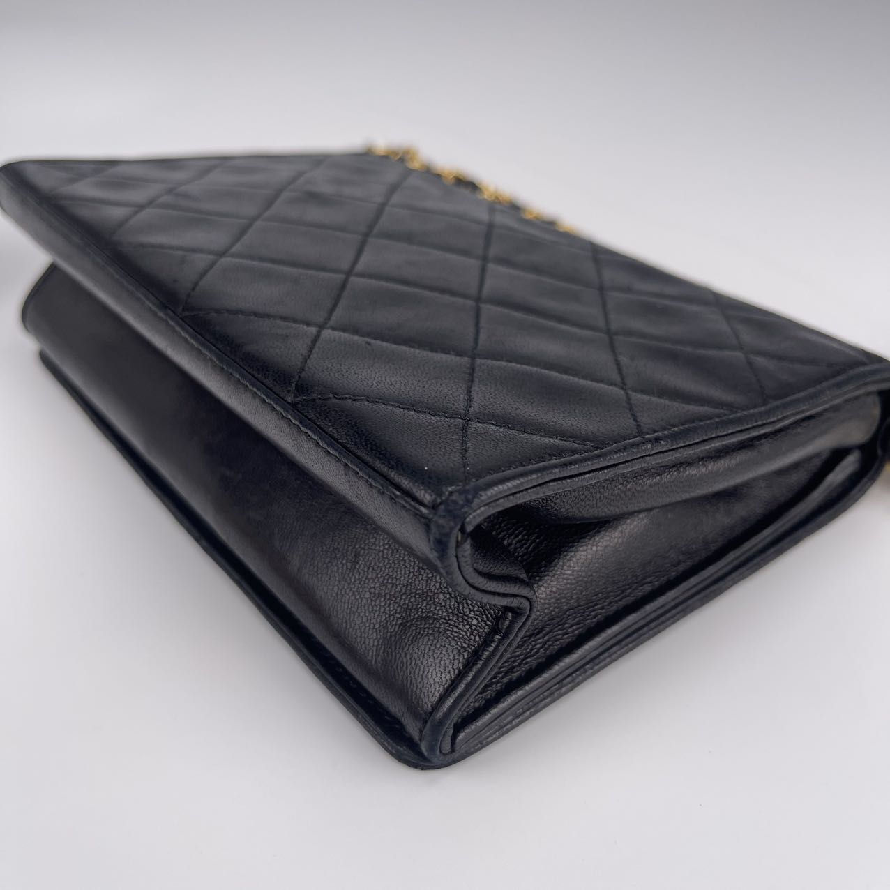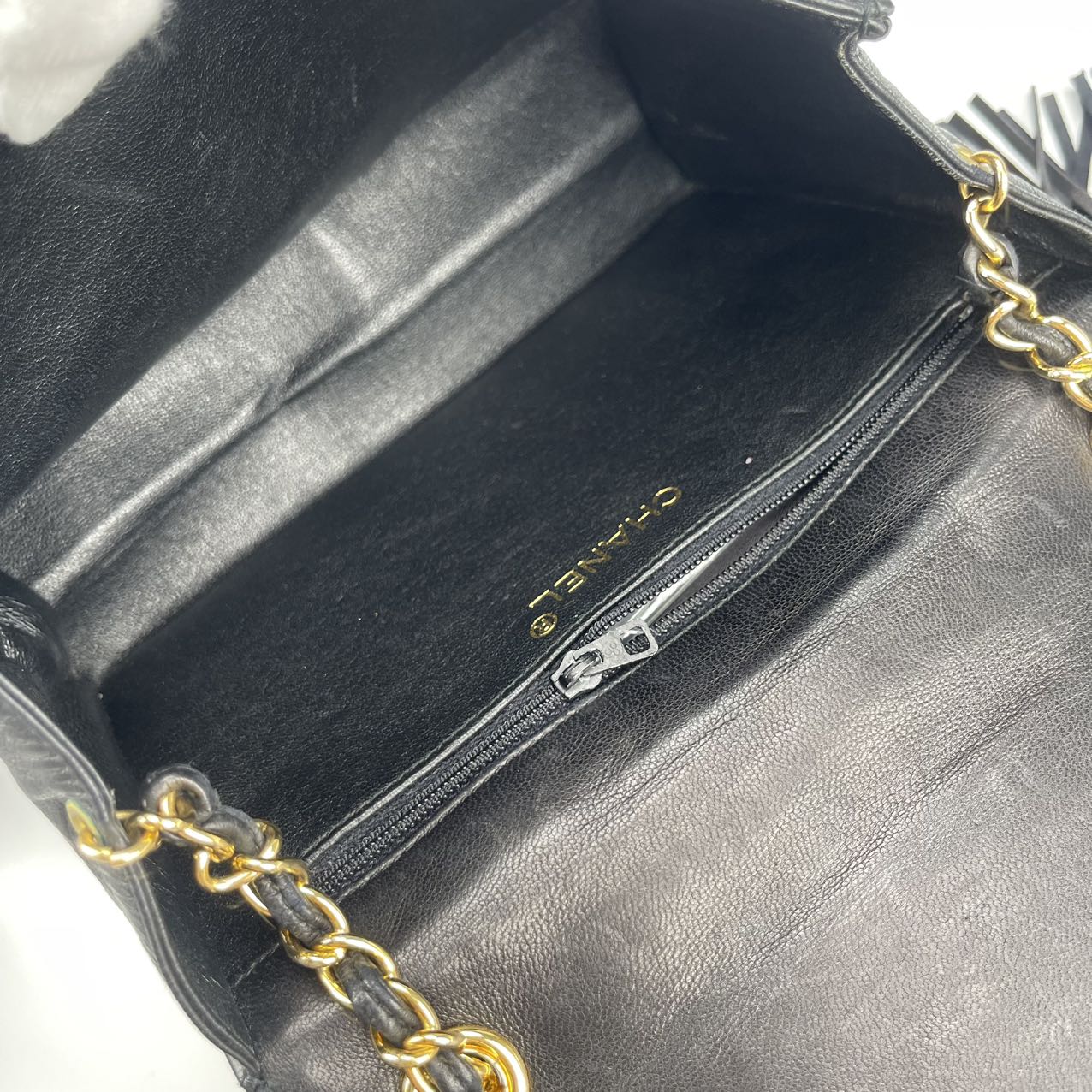 Classic Chanel Matelassé (quilted) chain shoulder bag in sleek black lambskin.