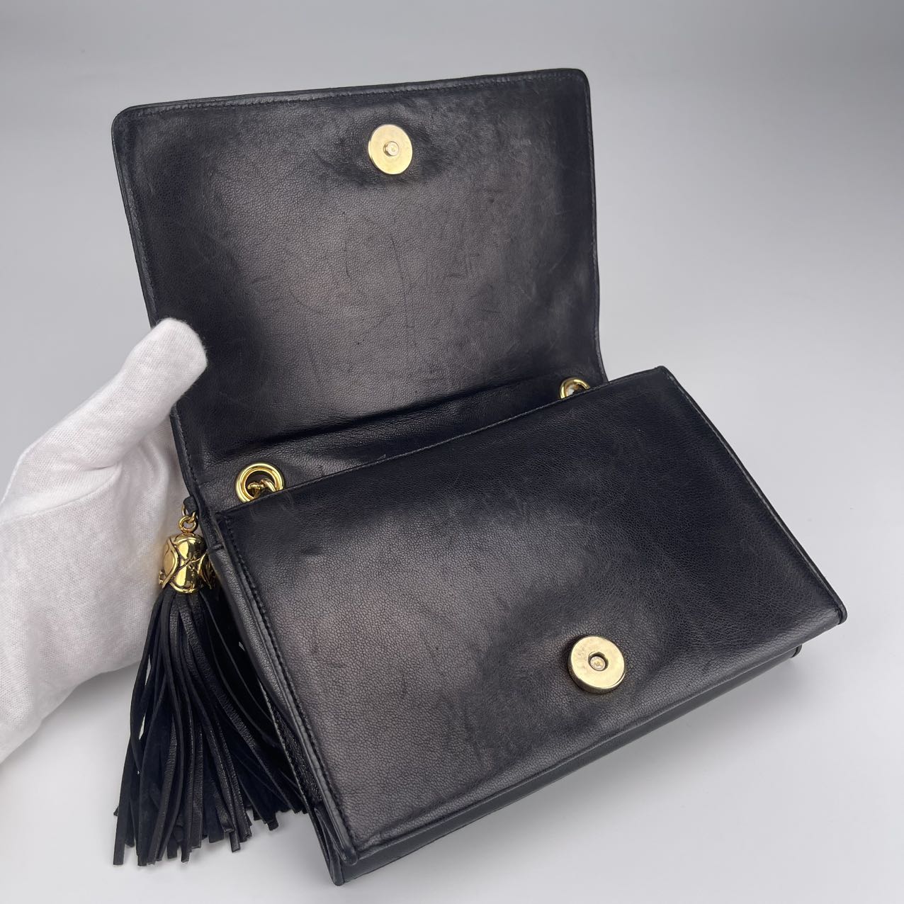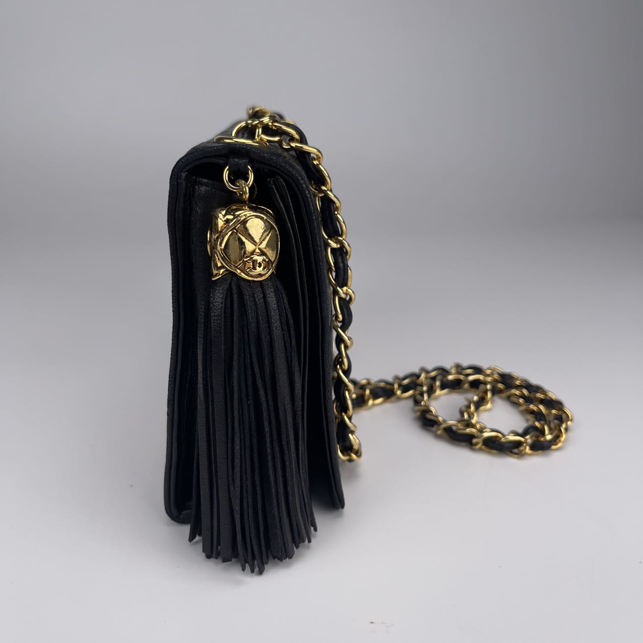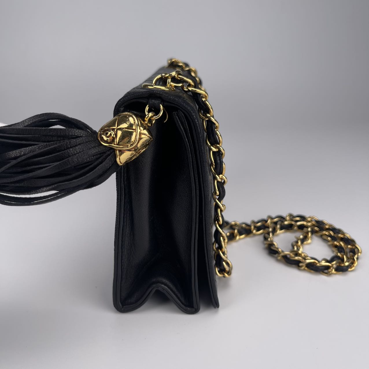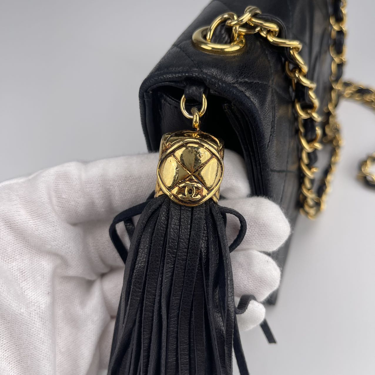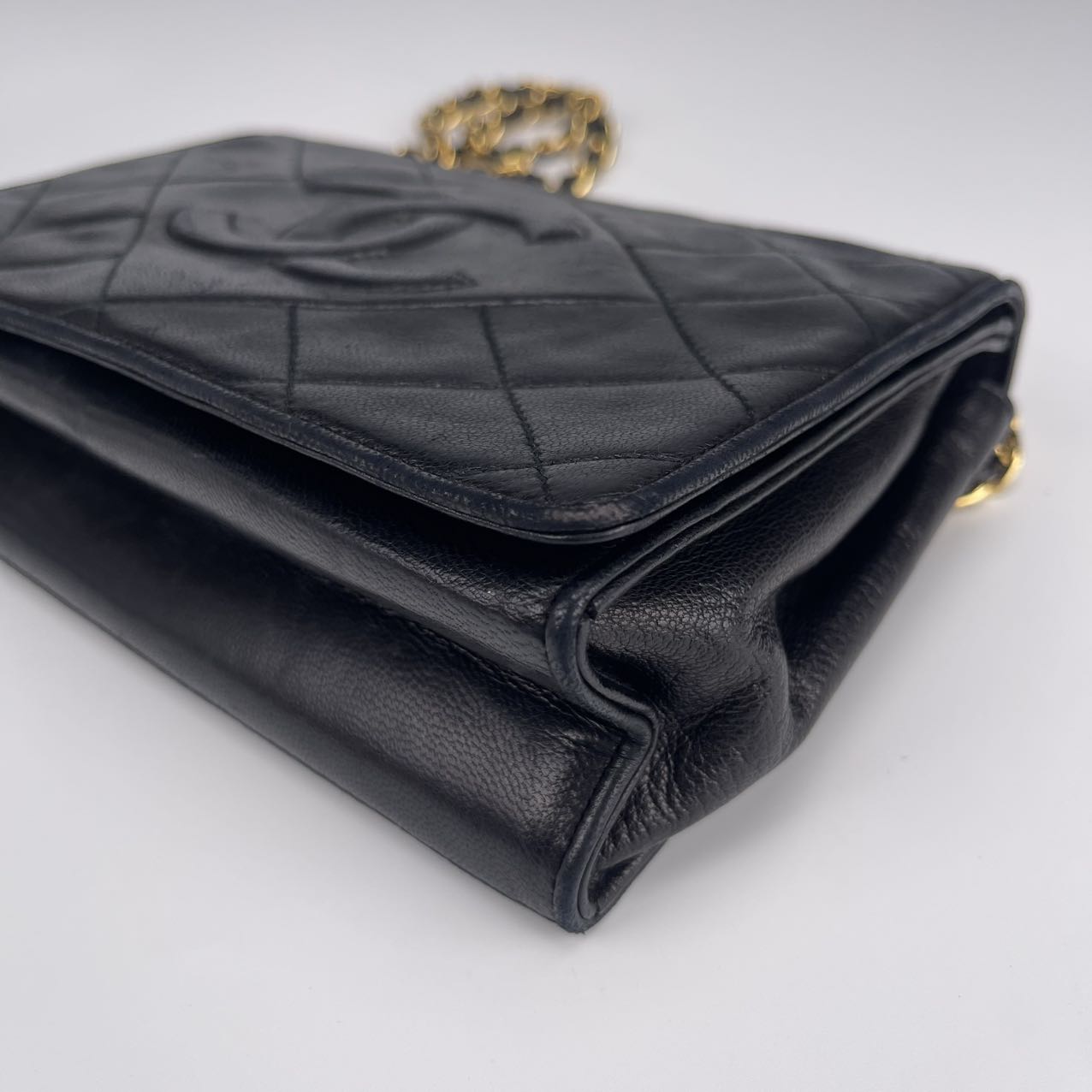 Classic Chanel Matelassé (quilted) chain shoulder bag in sleek black lambskin.