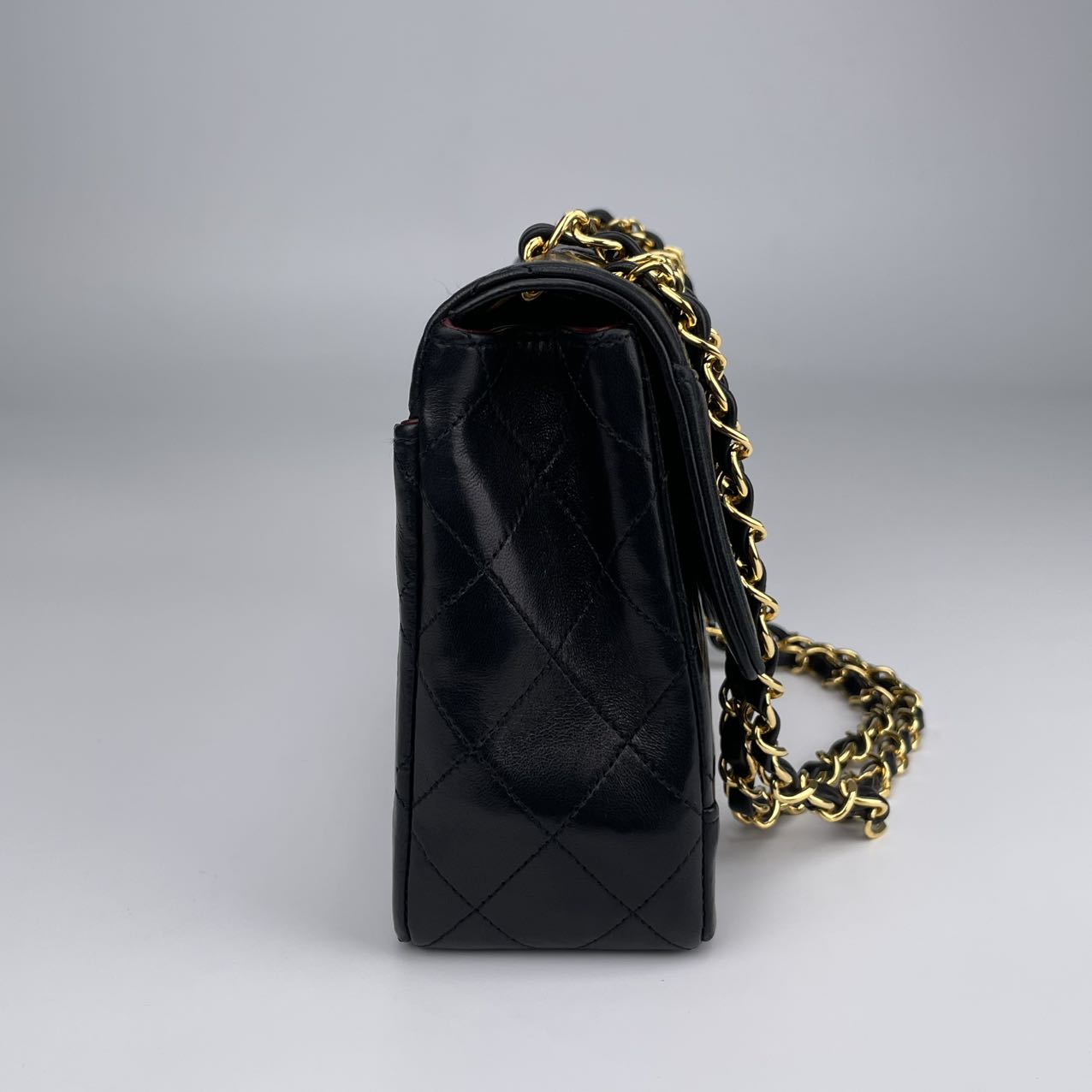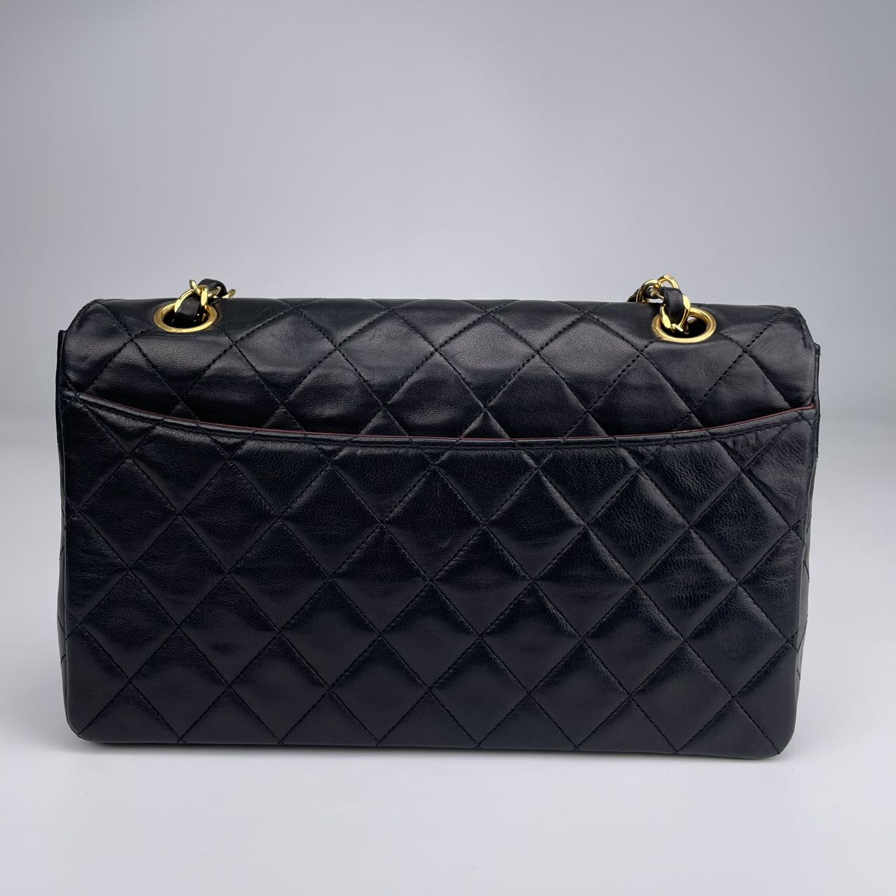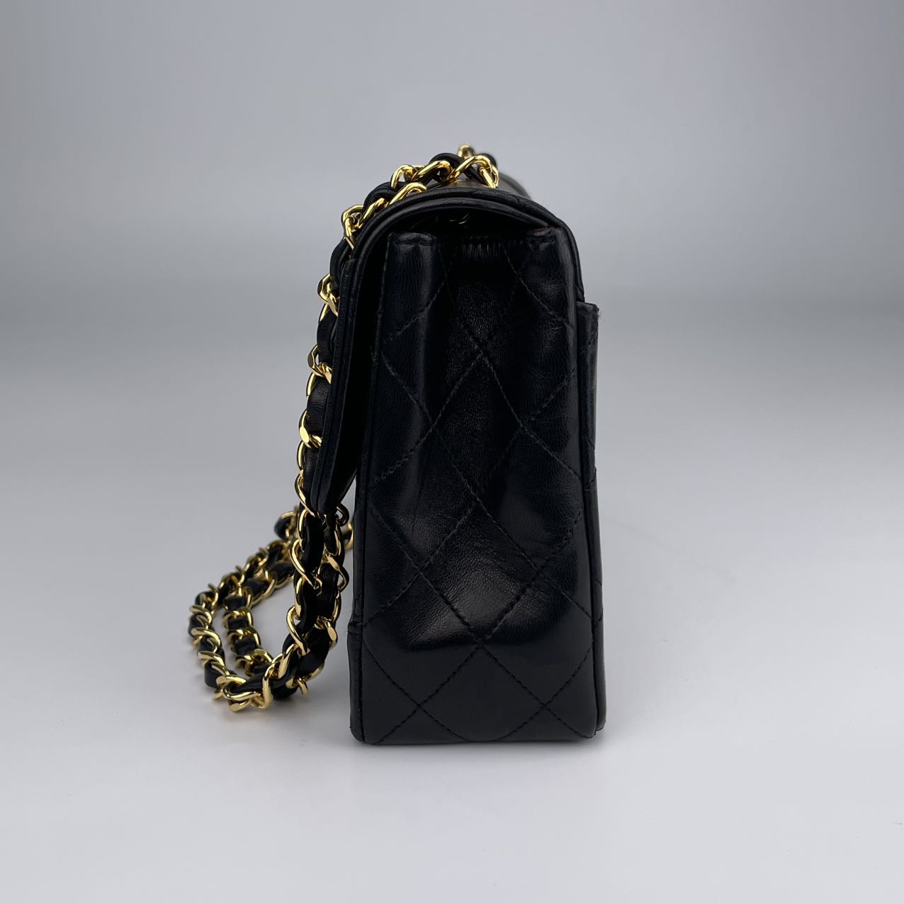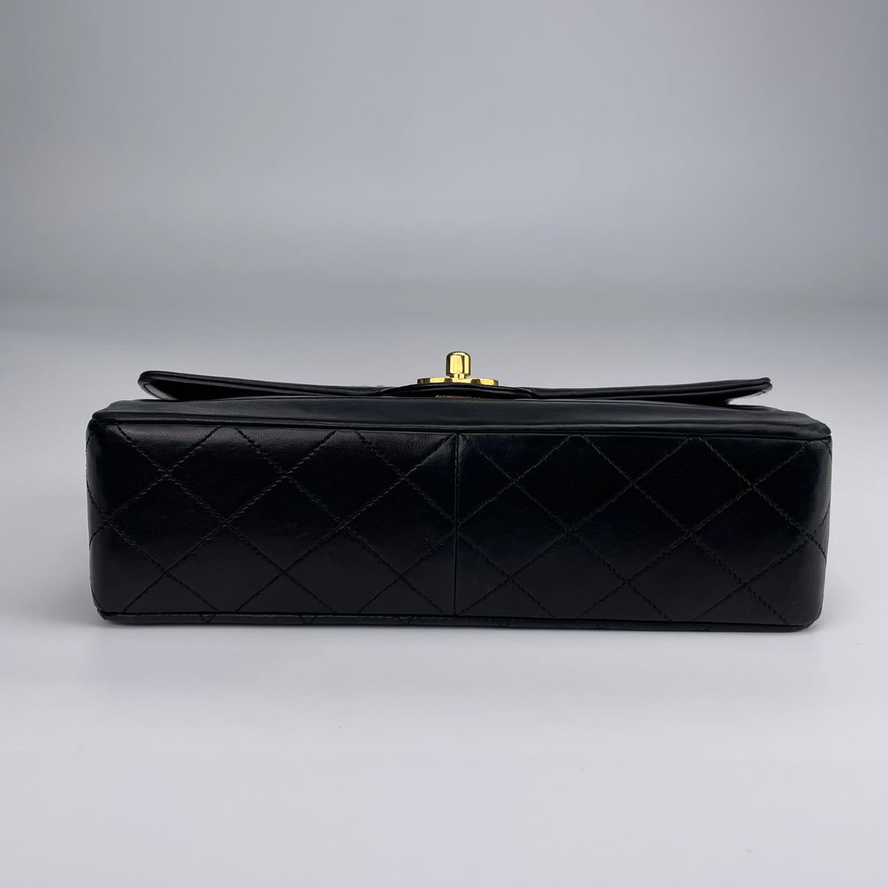 Classic Chanel quilted shoulder bag crafted in supple black lambskin.