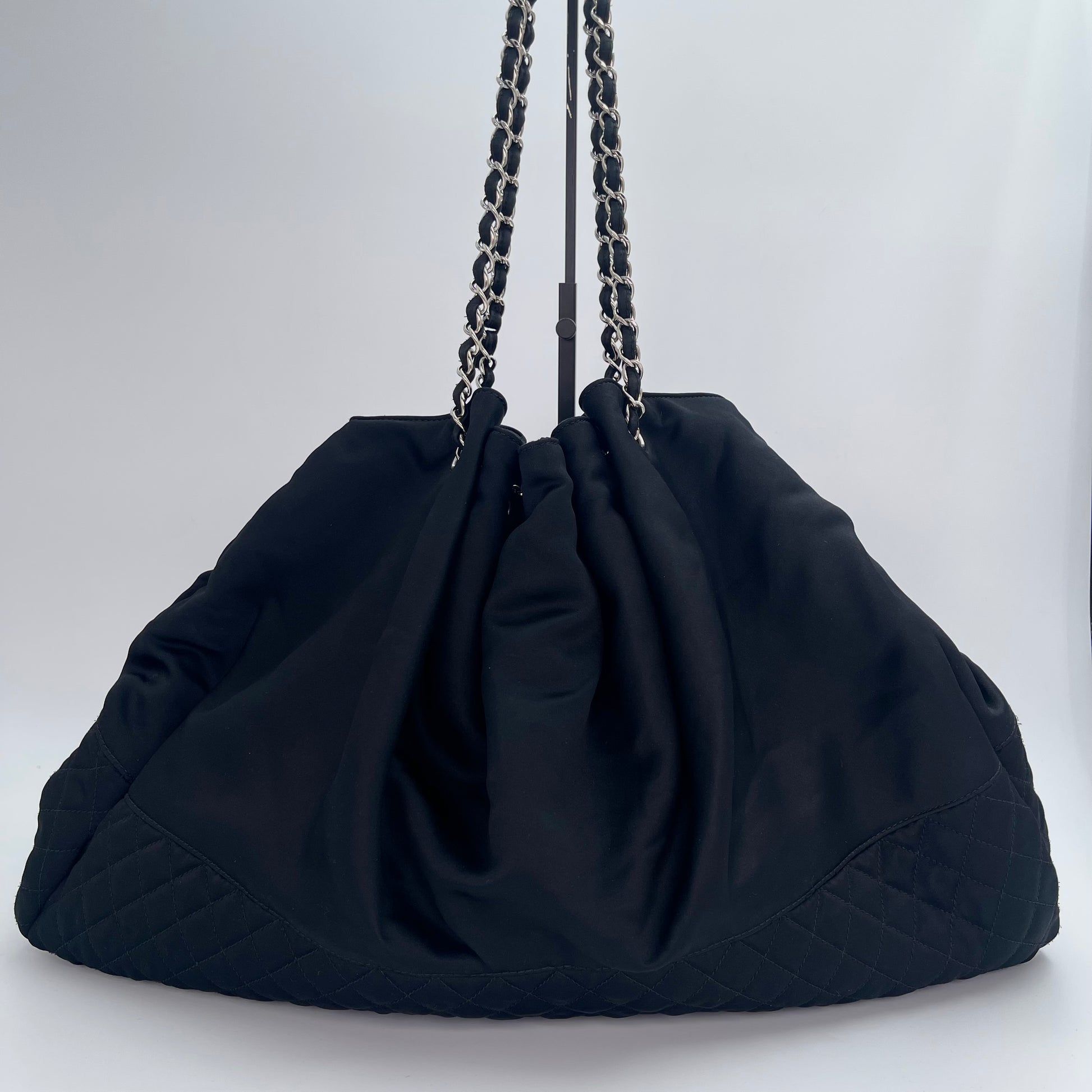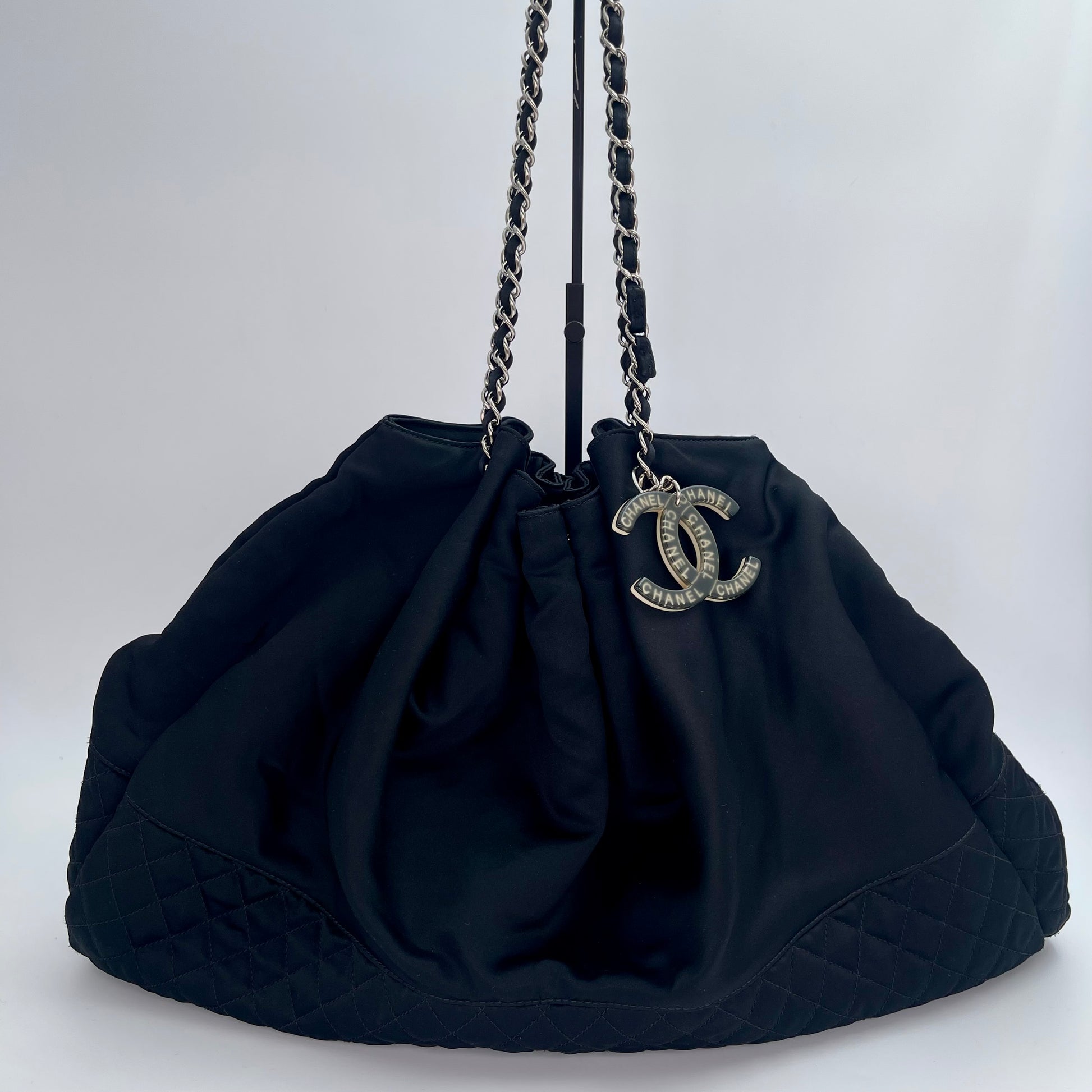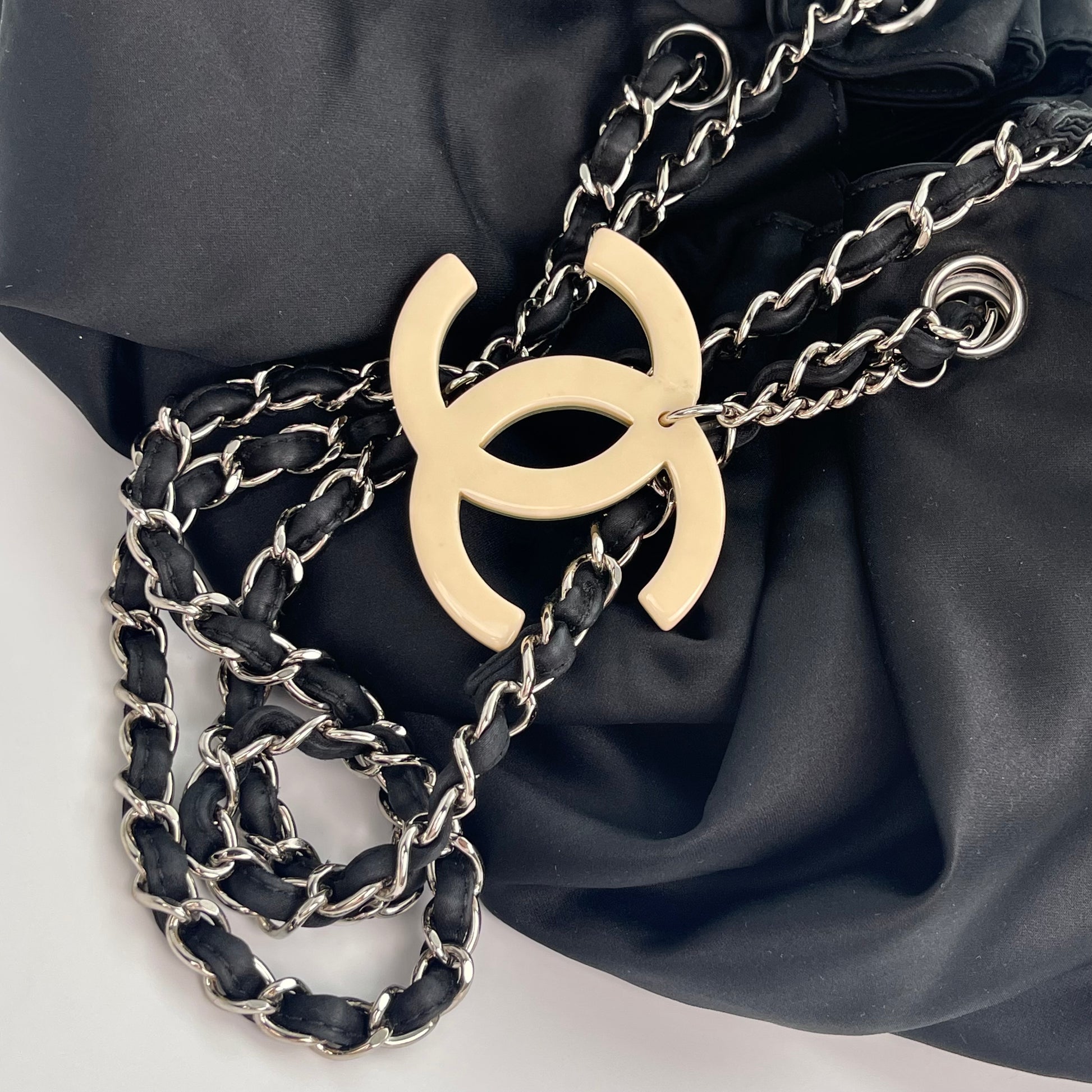 Chanel Melrose Cabas Tote Large Satin Drawstring Bag with Chain Detail [Used]