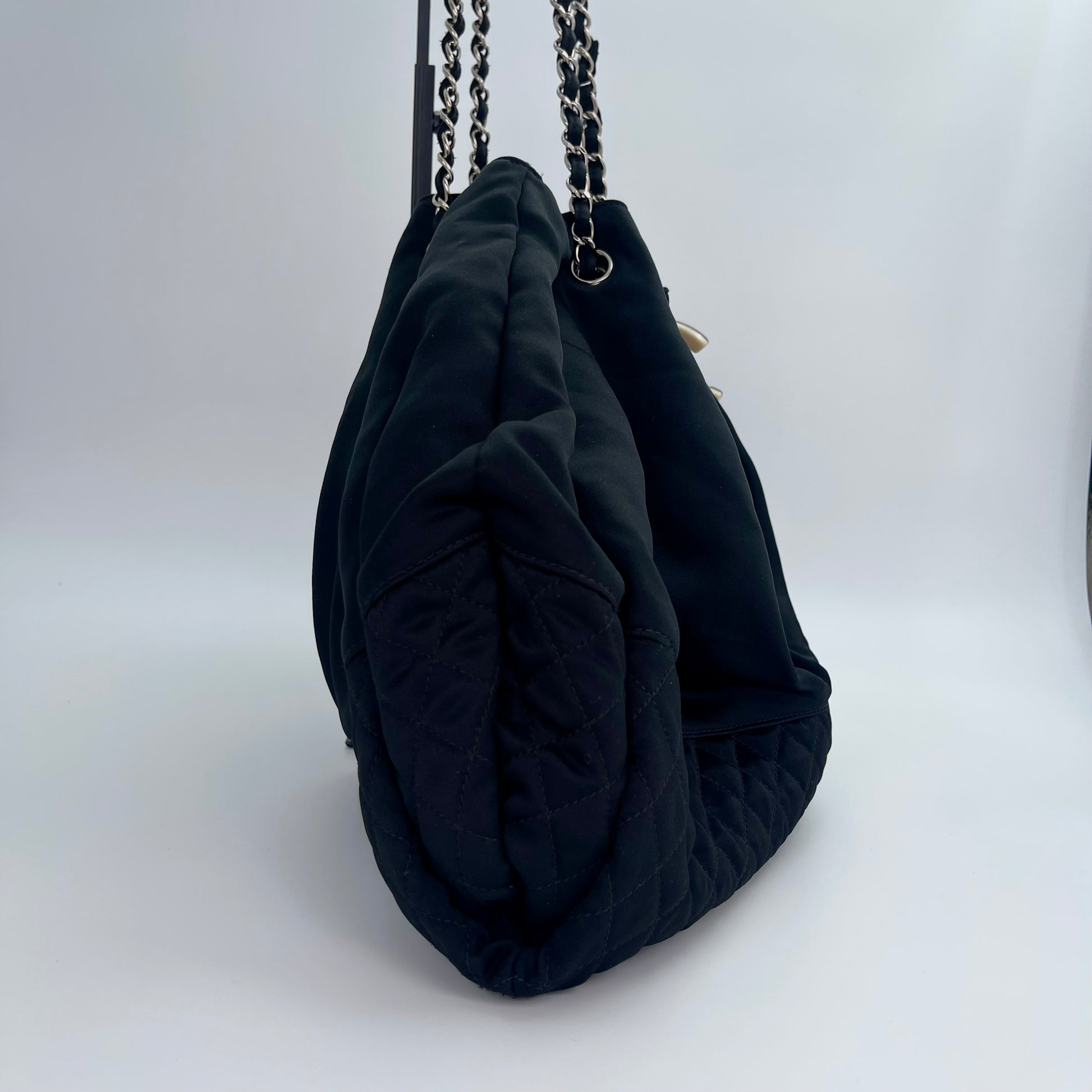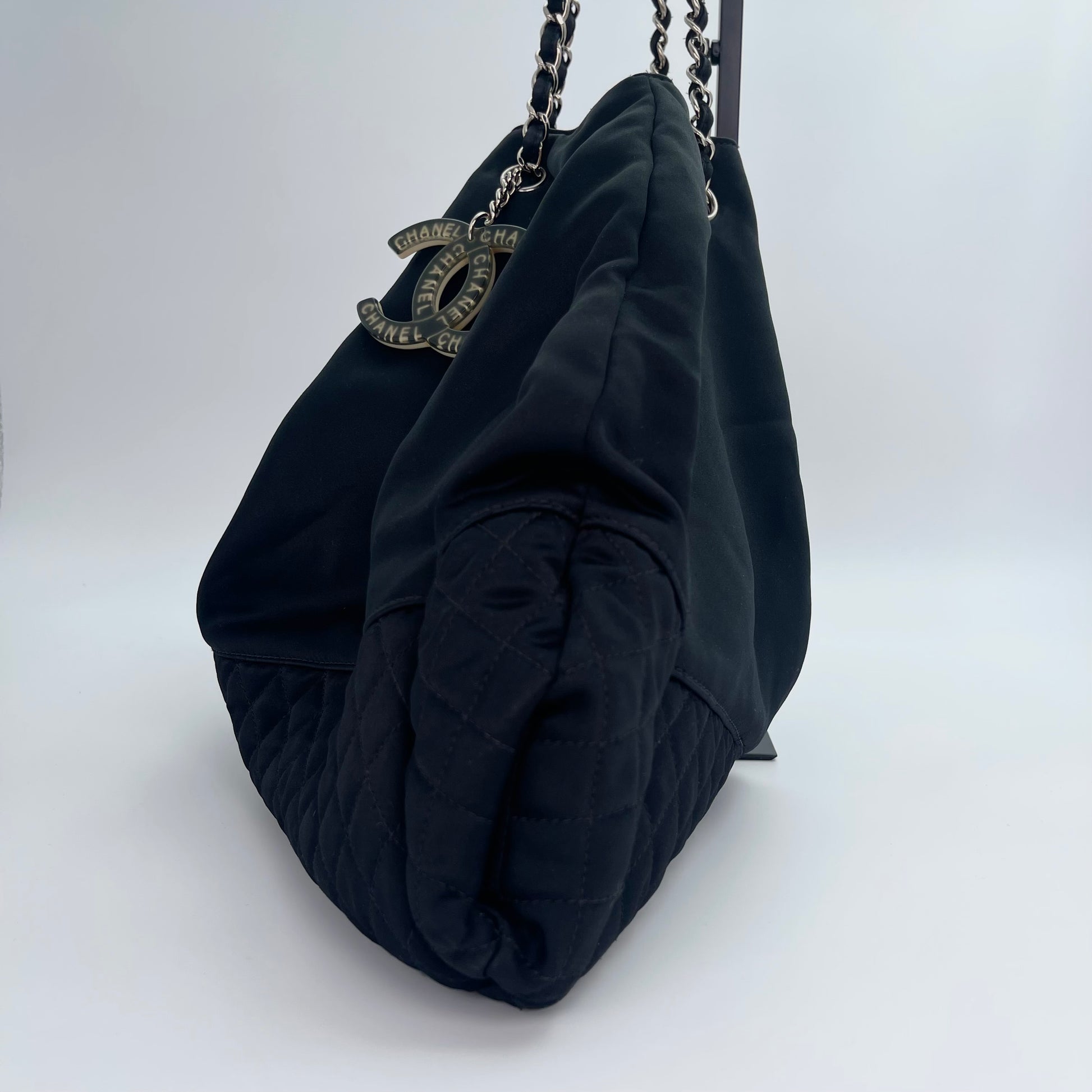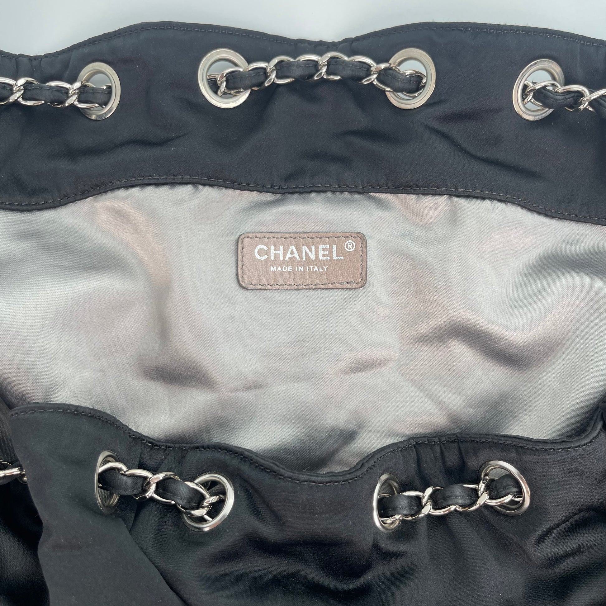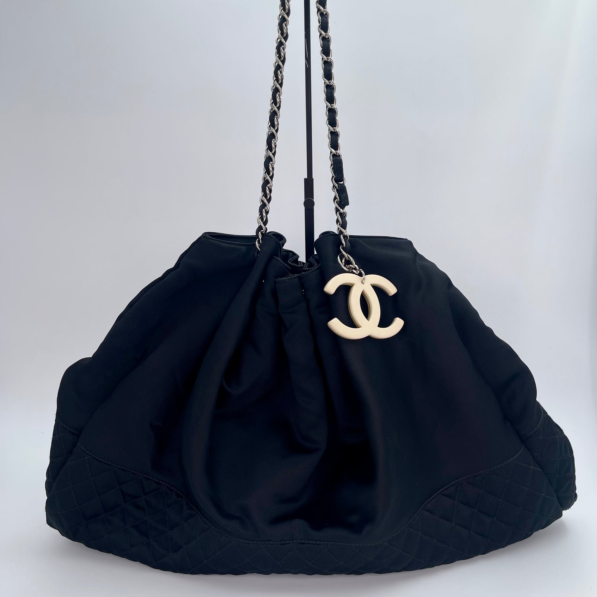 Chanel Melrose Cabas Tote Large Satin Drawstring Bag with Chain Detail [Used]