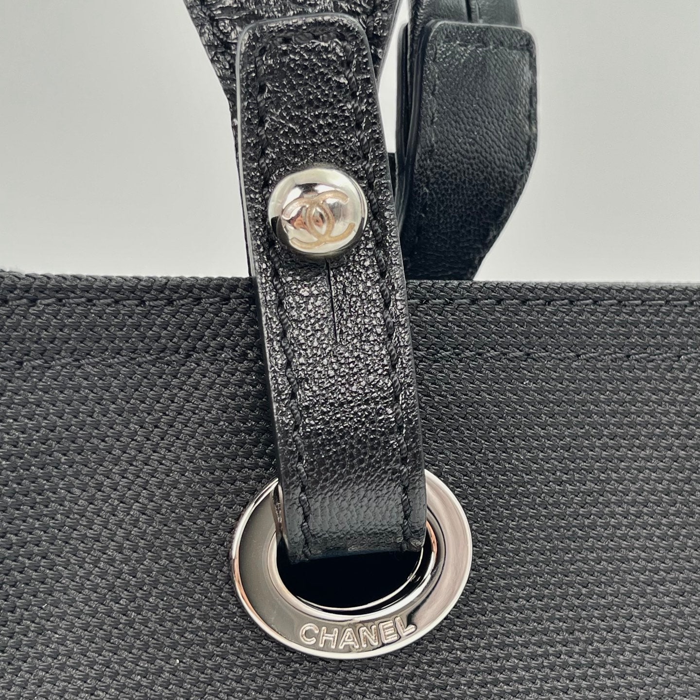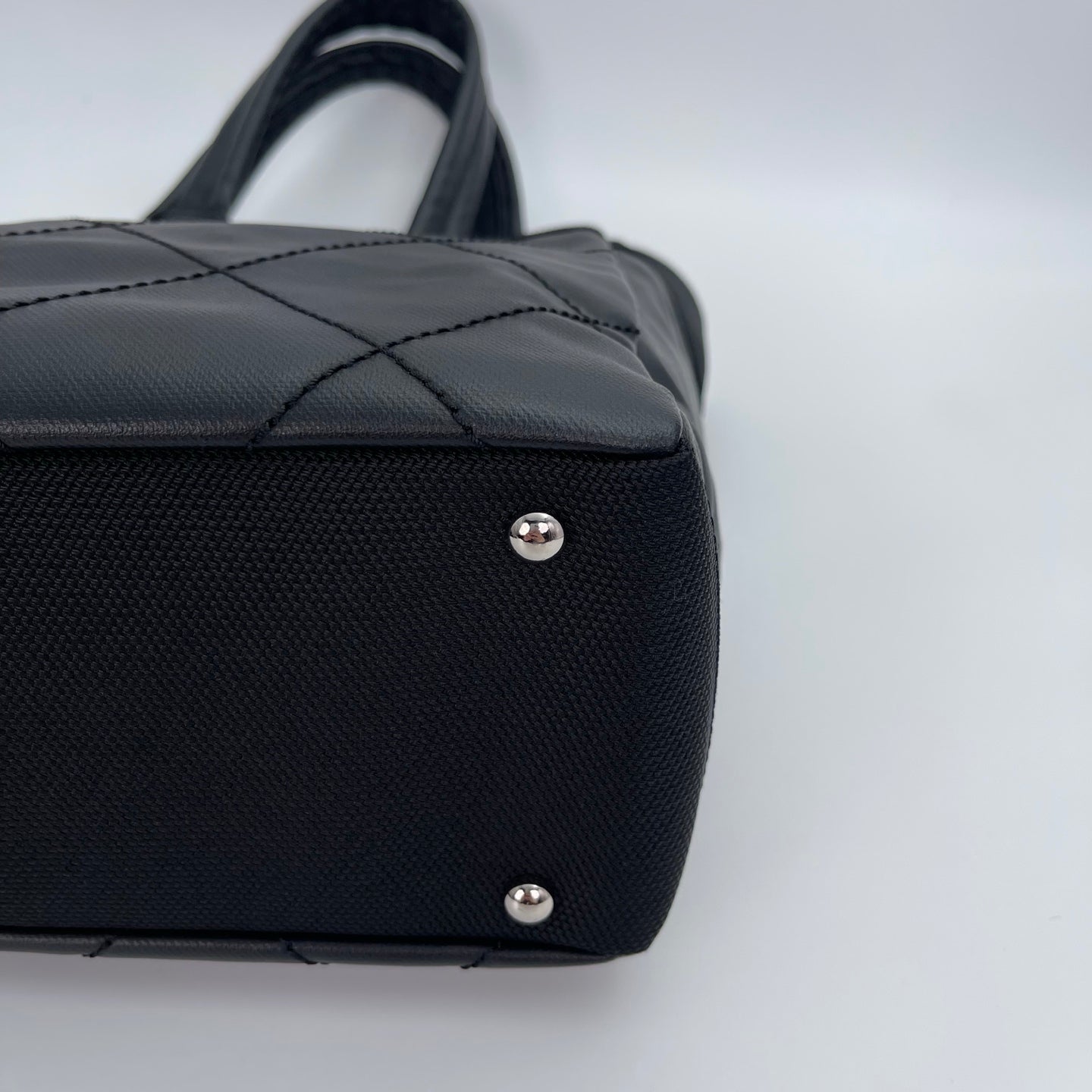 This CHANEL Small Top Handle Tote Bag in black, crafted from a combination of leather and canvas with distinctive external stitching, offers a stylish blend of texture and contemporary elegance. Designed for daily use, the structured silhouette provides practicality while maintaining CHANEL’s timeless aesthetic. The palladium hardware adds a refined modern touch, making this tote an excellent choice for both casual and sophisticated looks.